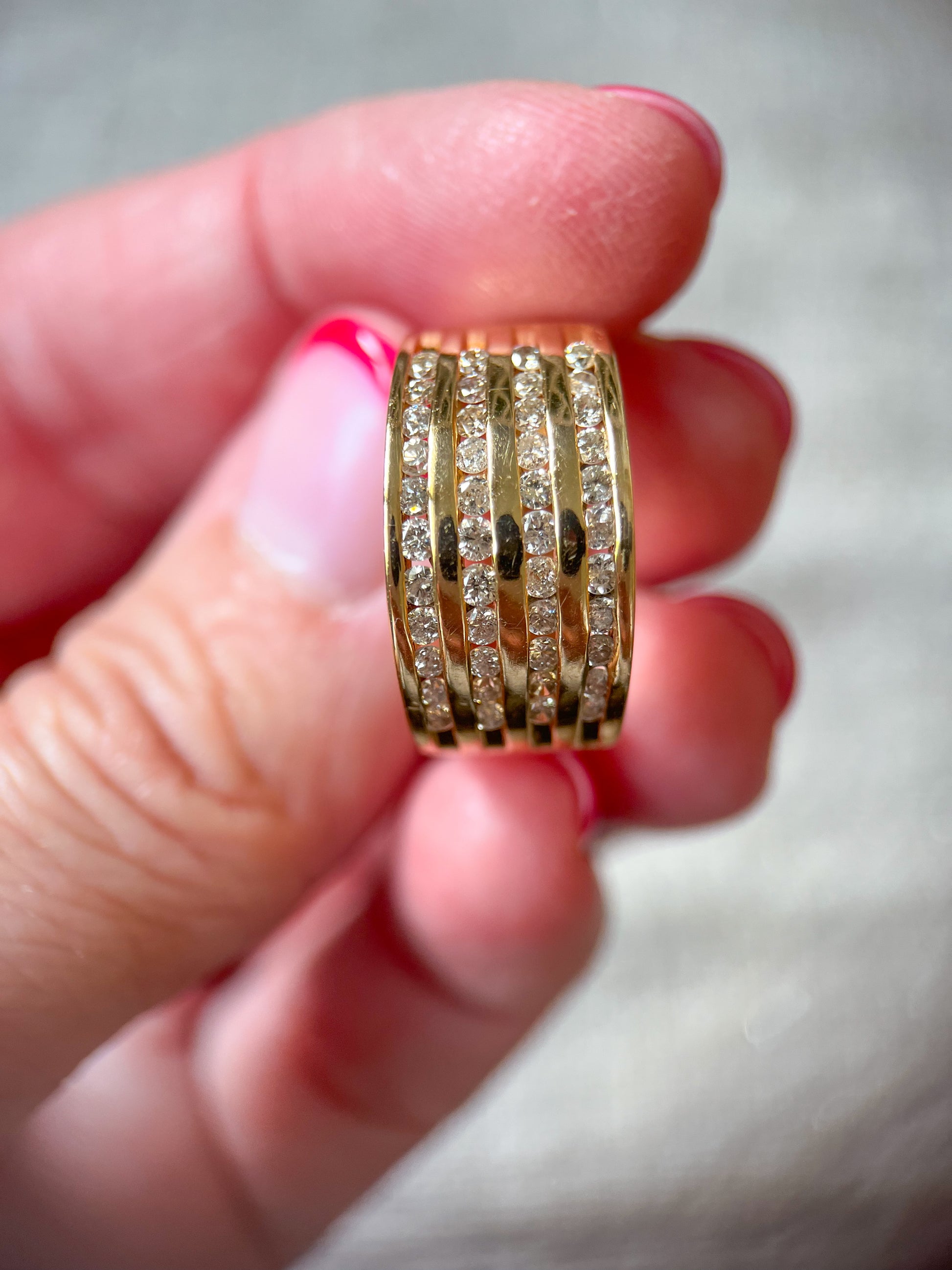 Just simply insane... this stunning, vintage, 14k yellow gold and natural diamond, chunky ring is simply the best! This ring can be resized at your local jeweler.