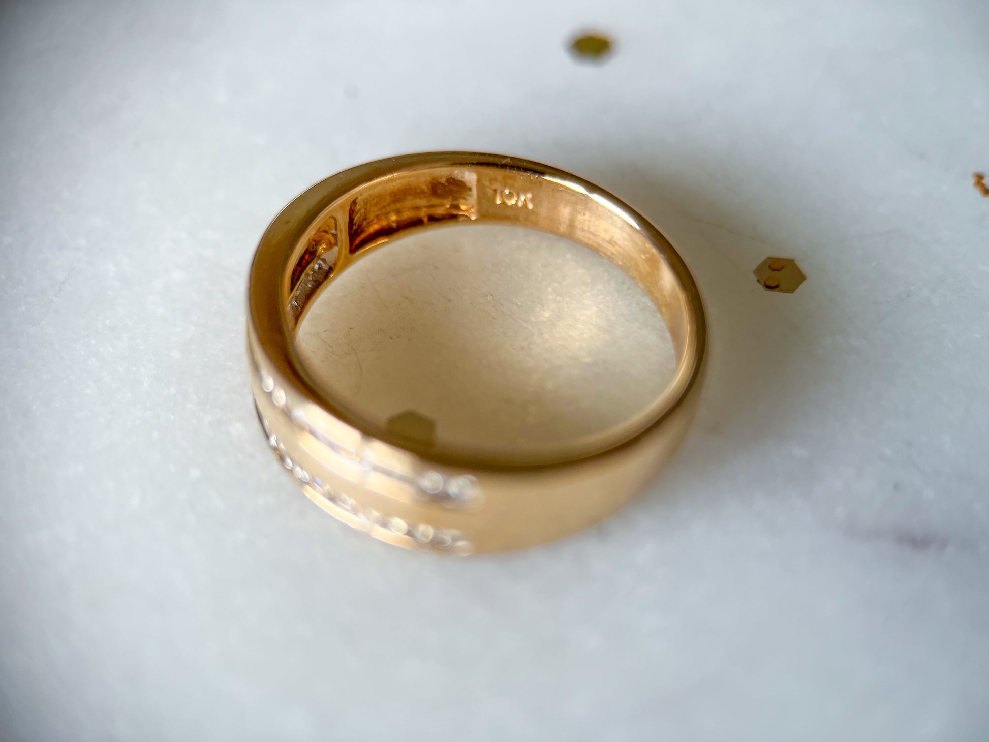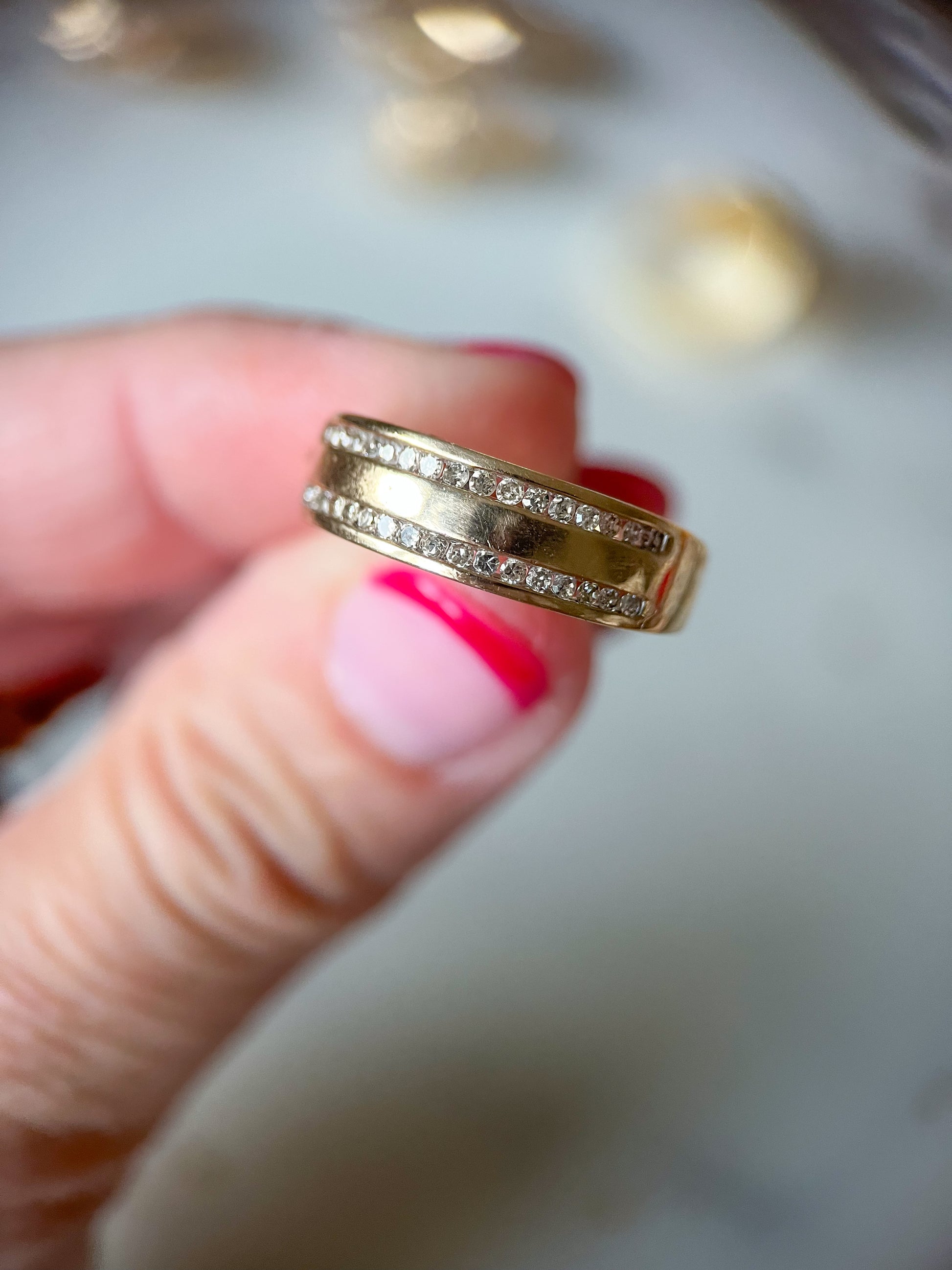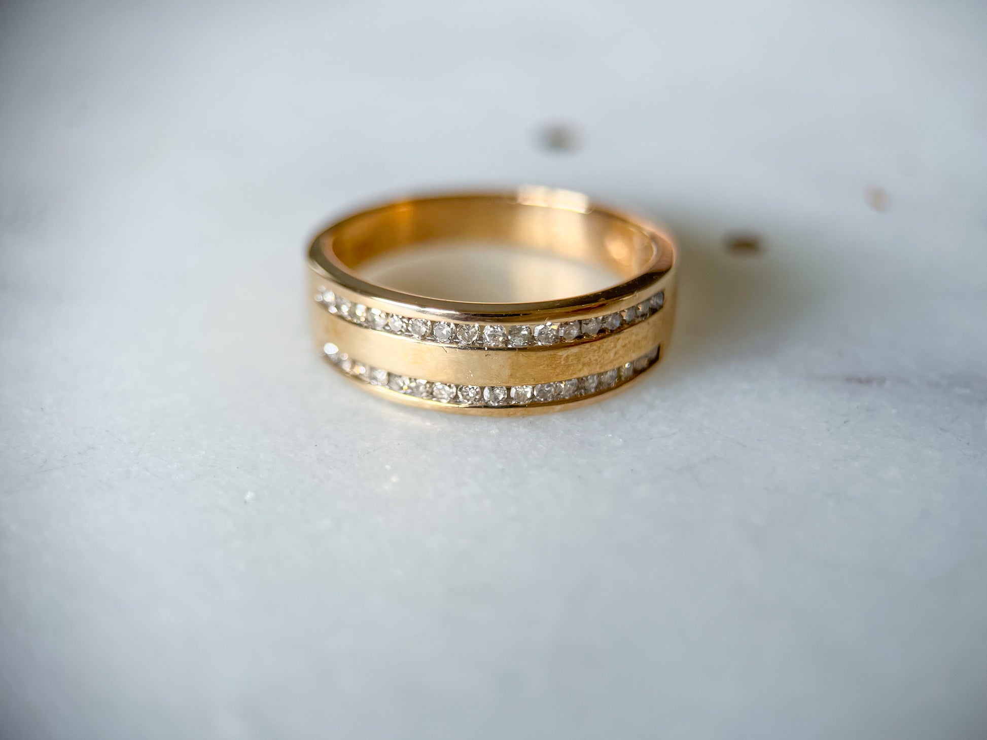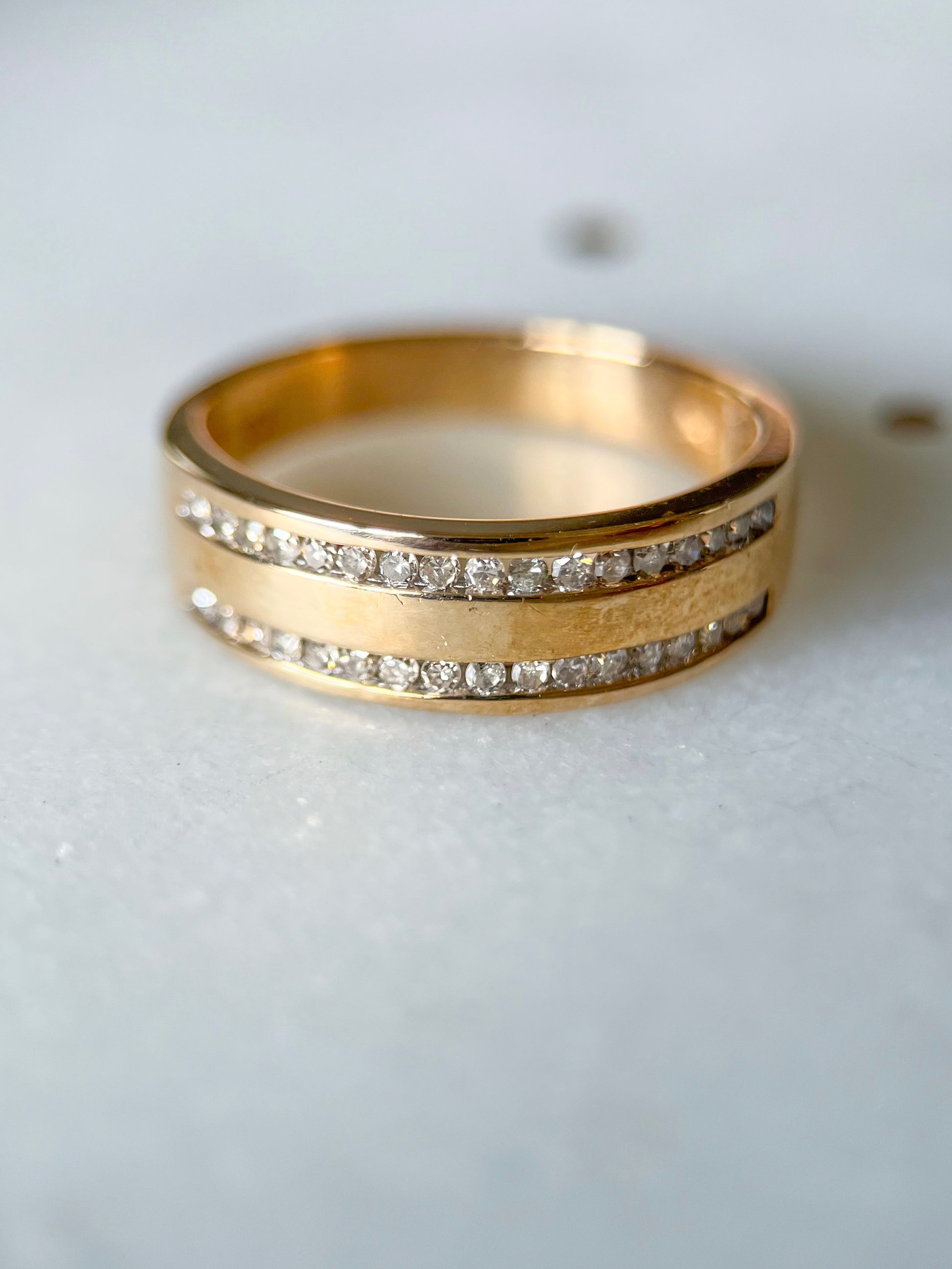 In love with this vintage, 10k yellow gold and natural diamond band!