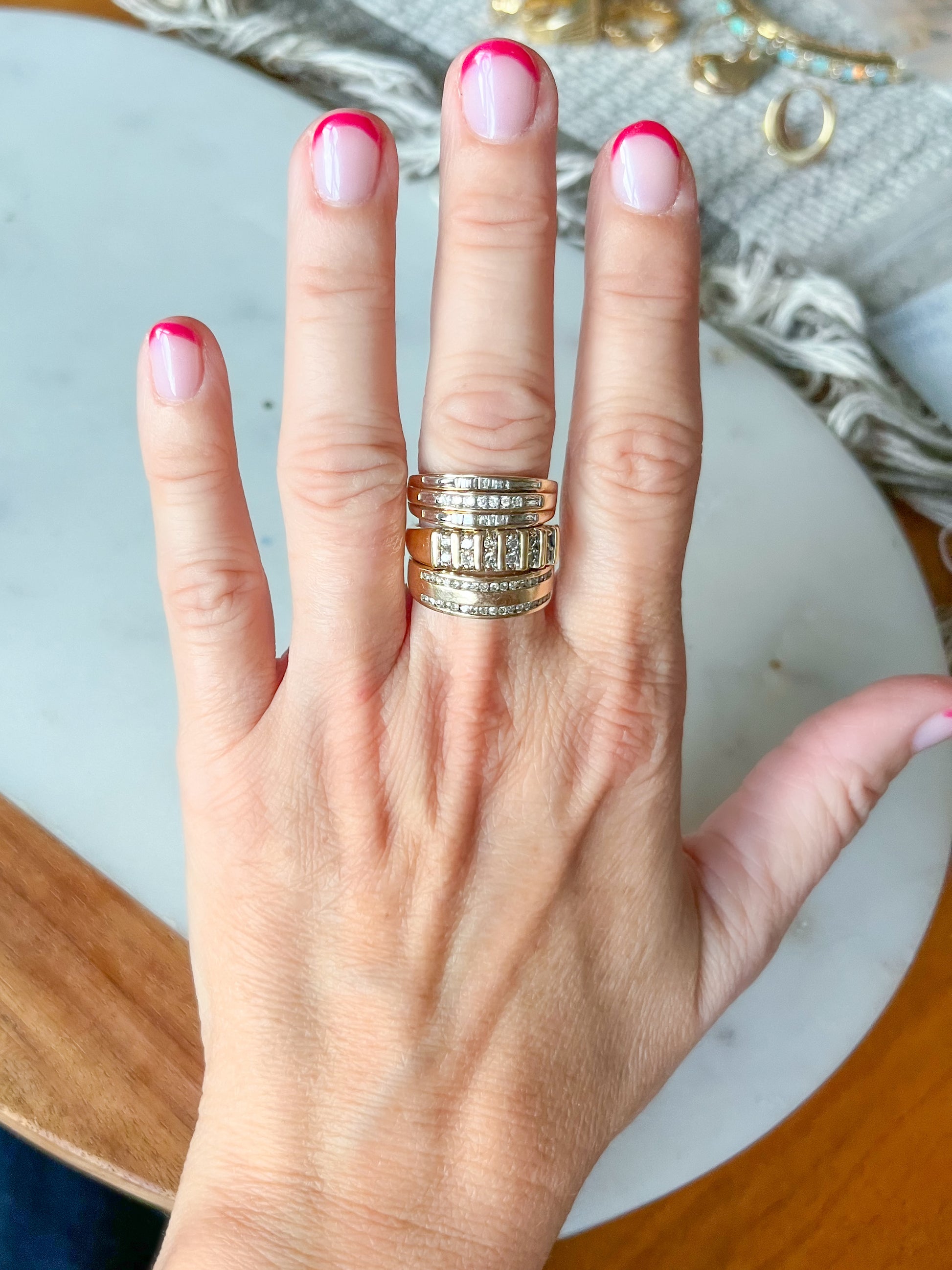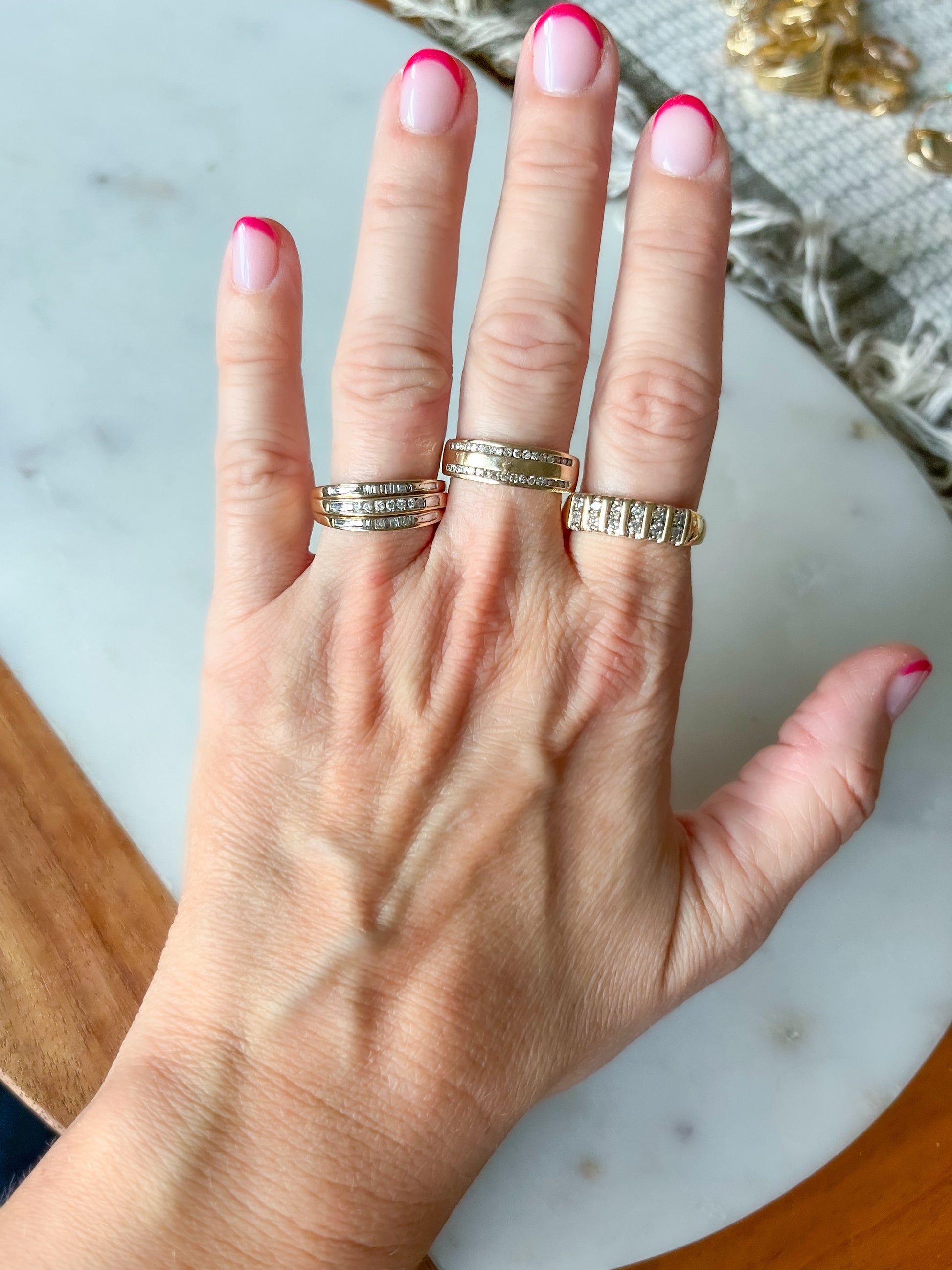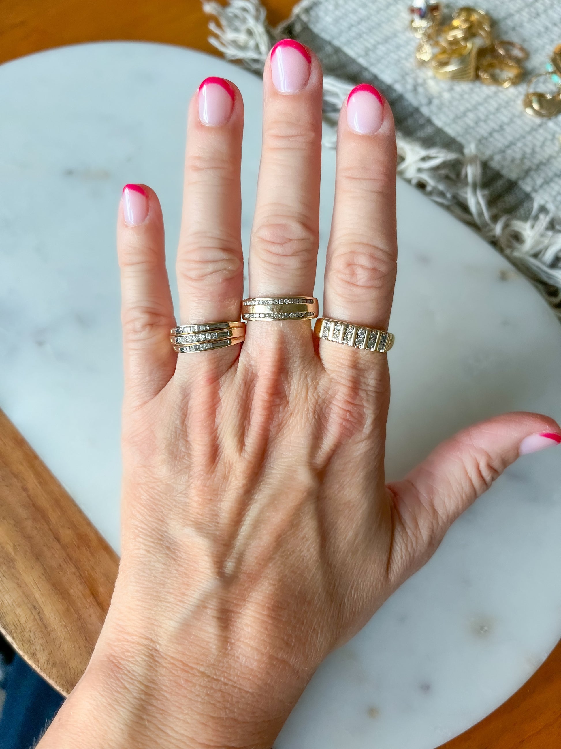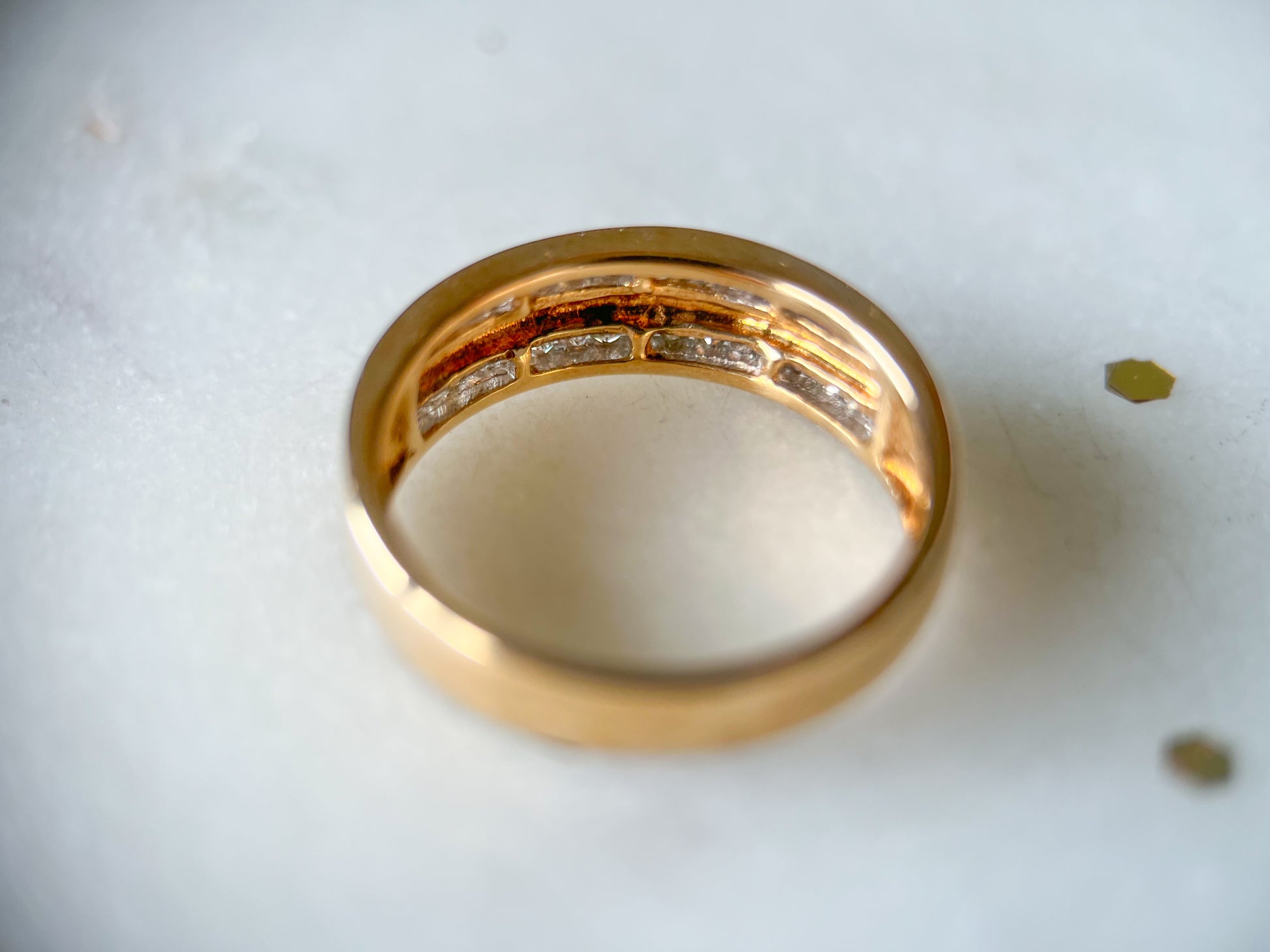 In love with this vintage, 10k yellow gold and natural diamond band!