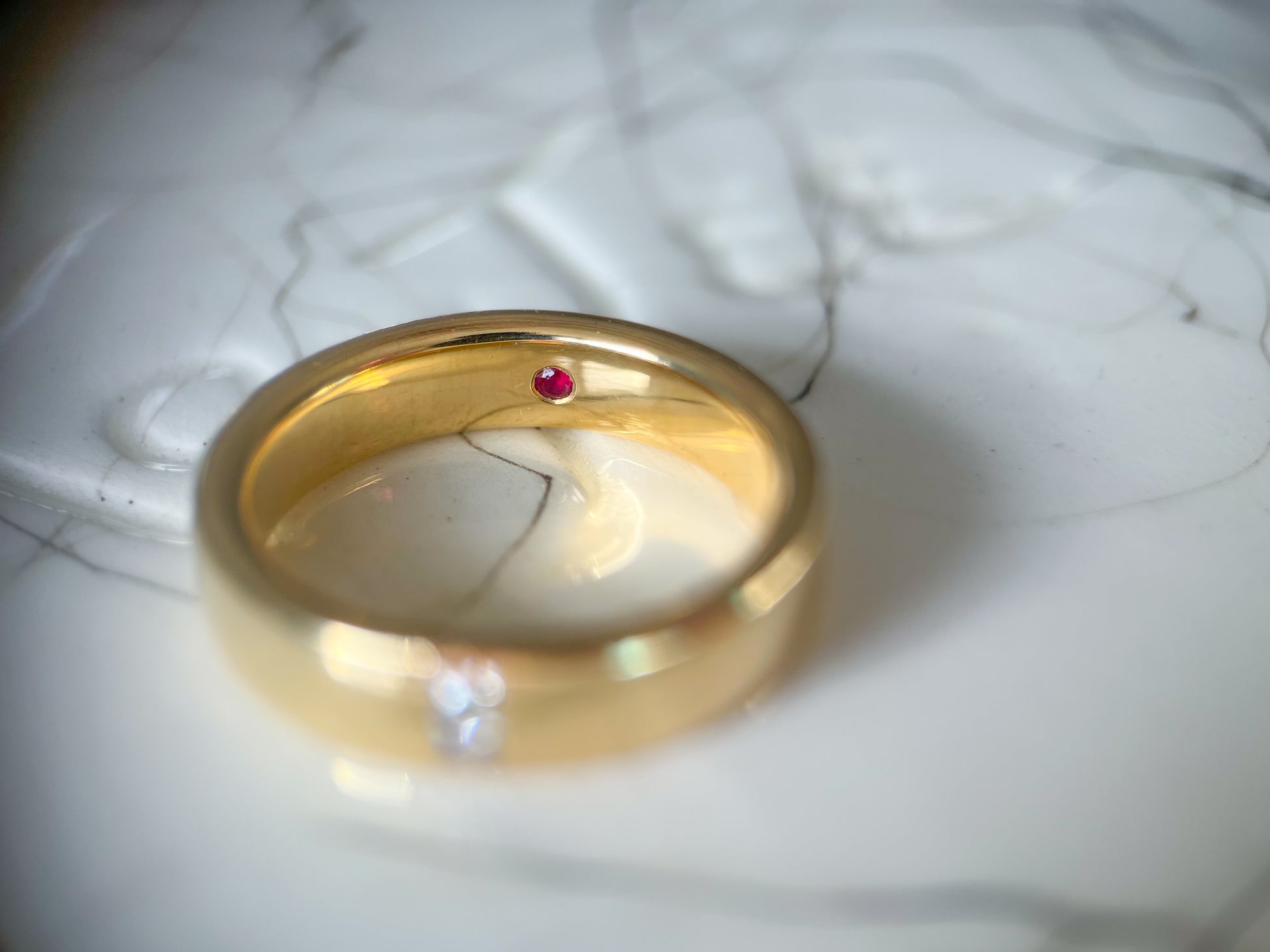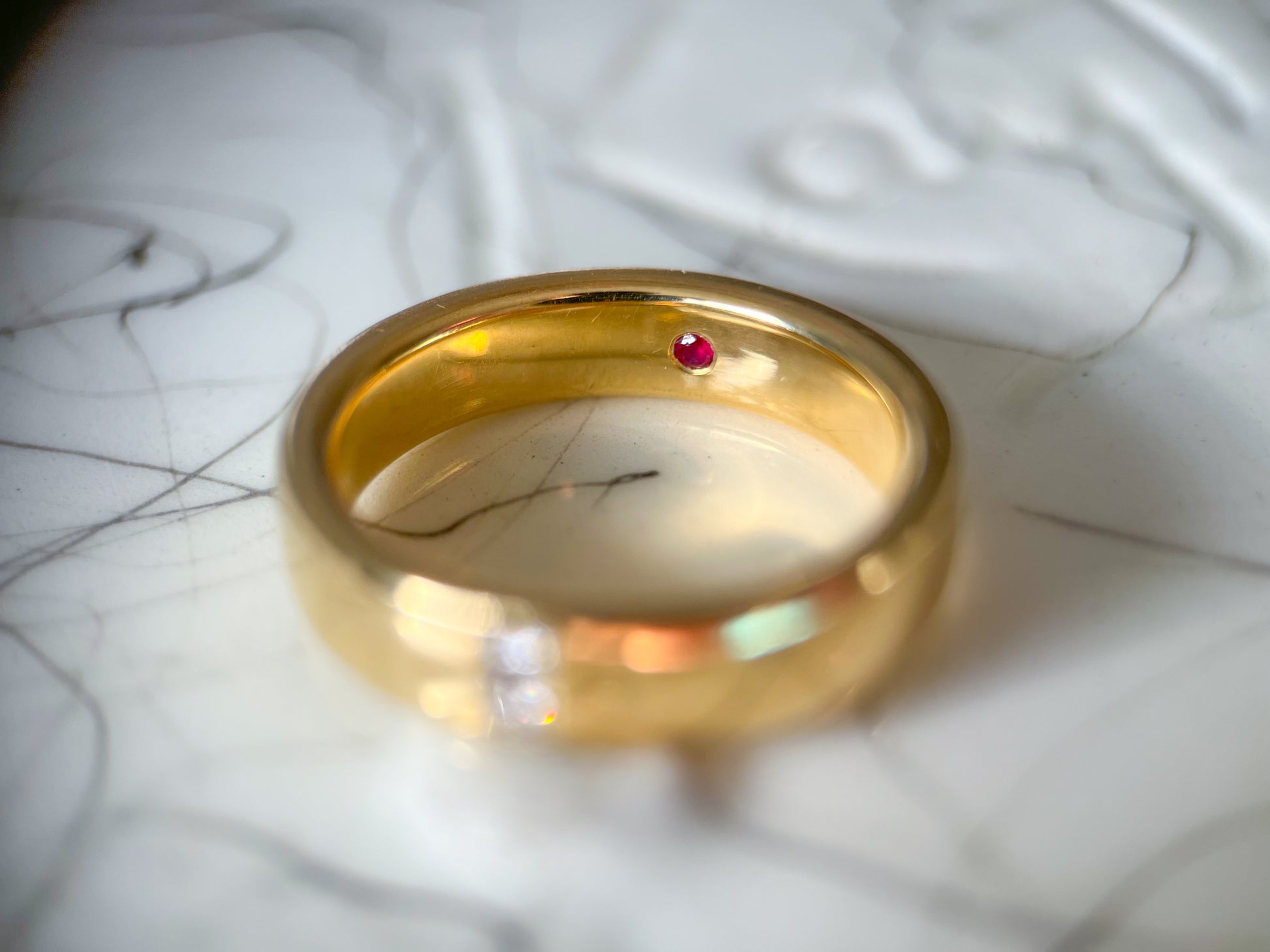 Vintage Natural Diamond and Hidden Natural Ruby 18k Yellow Gold Band Ring