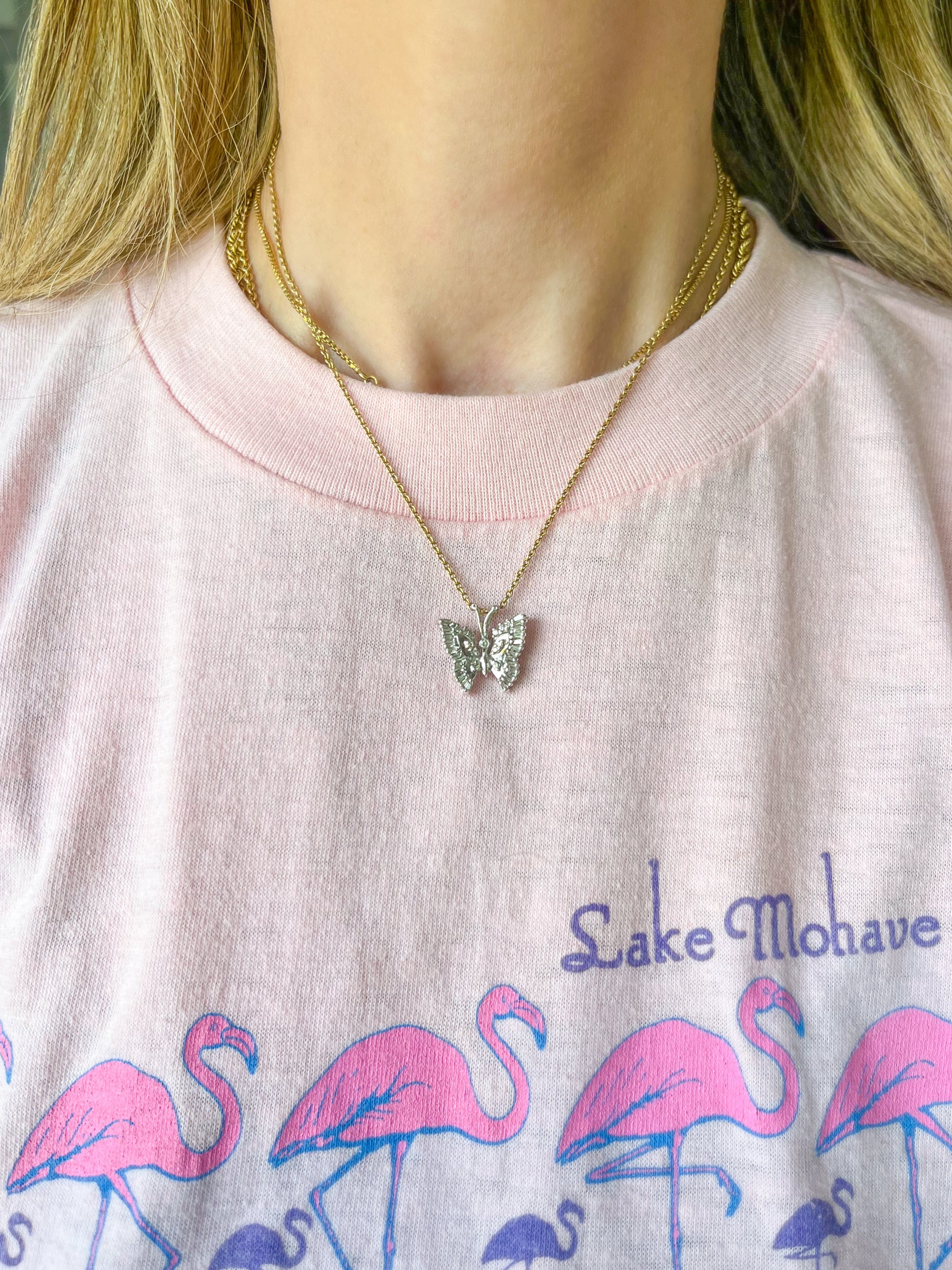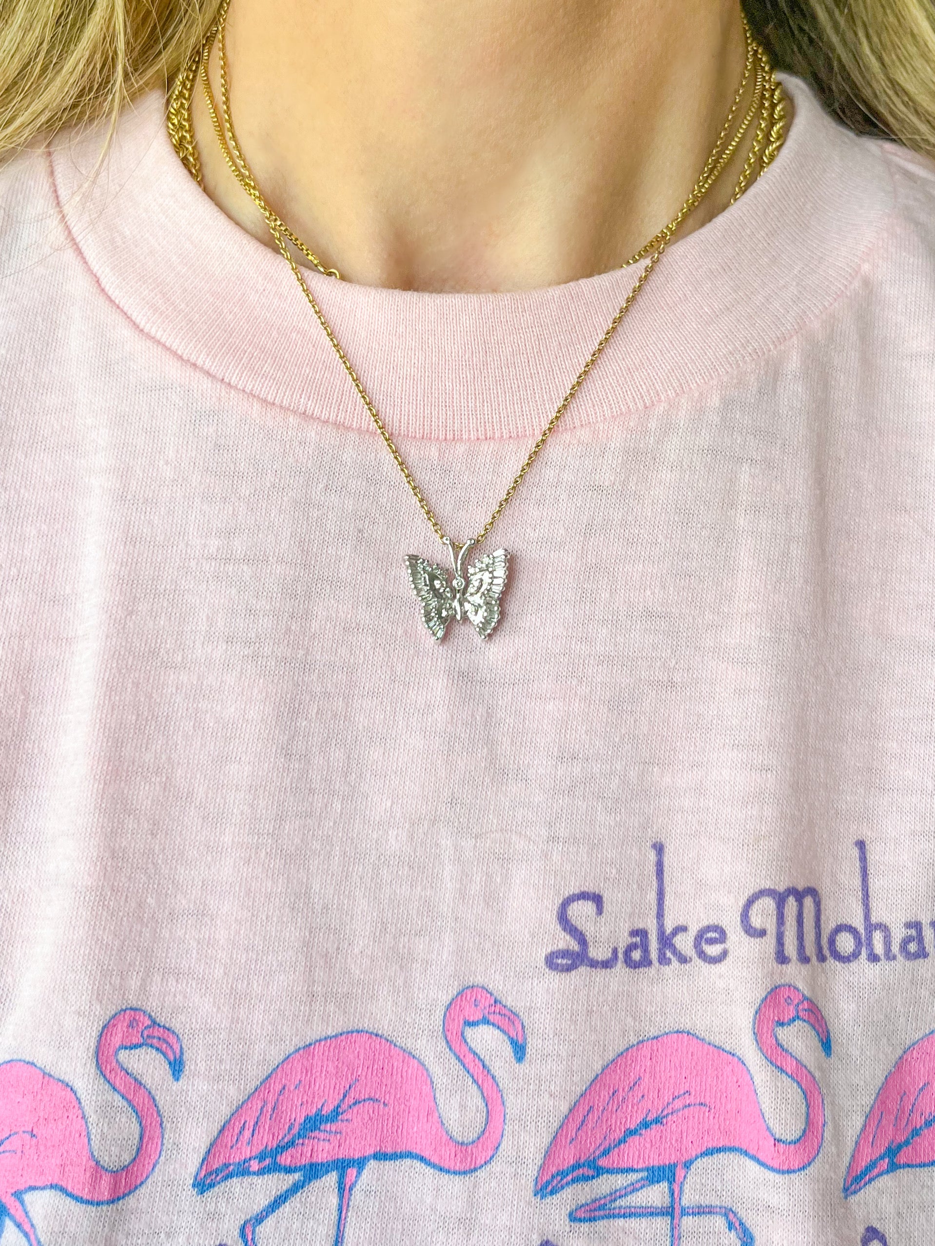Vintage Natural Diamond Butterfly 14k White Gold Charm