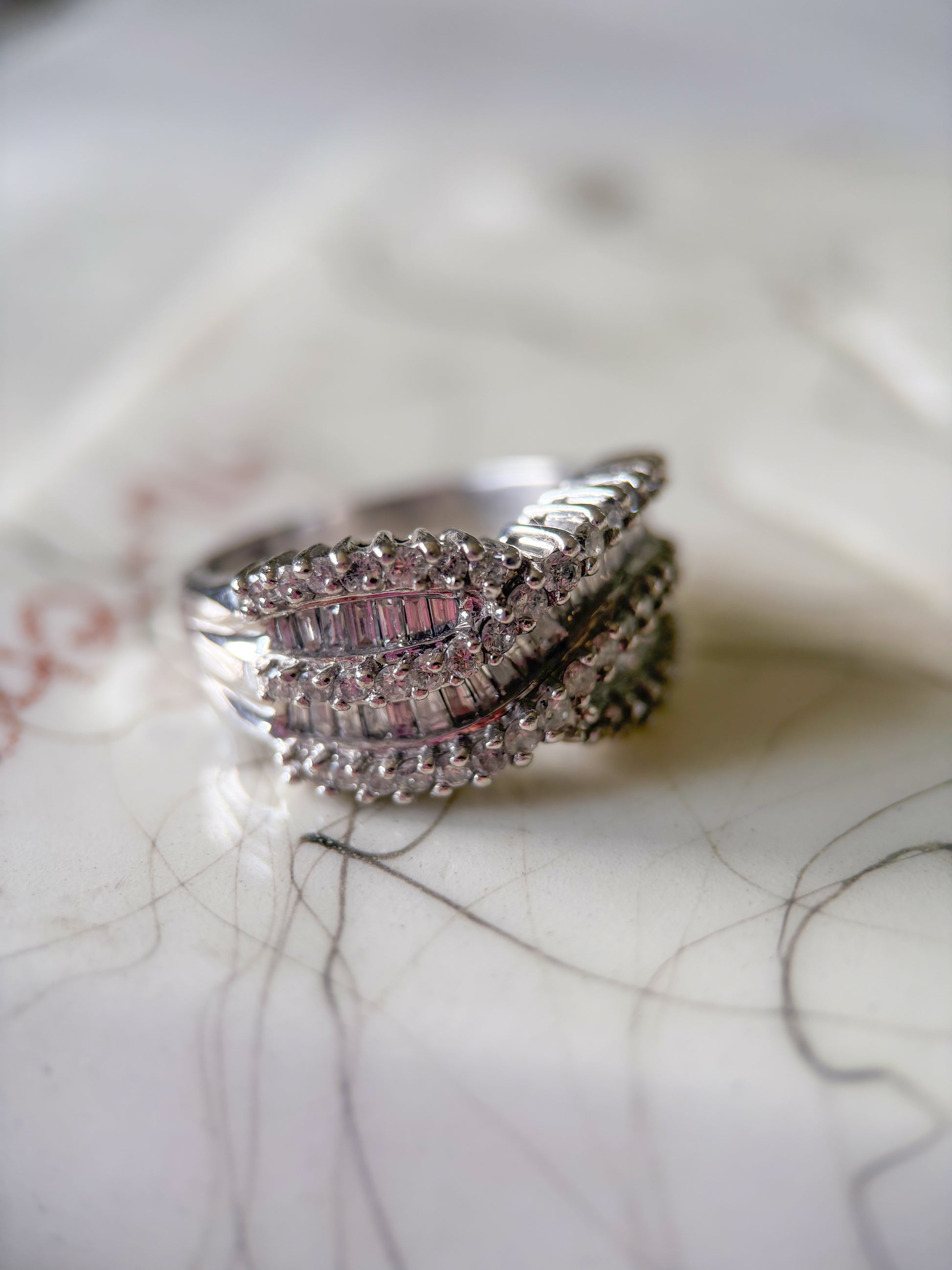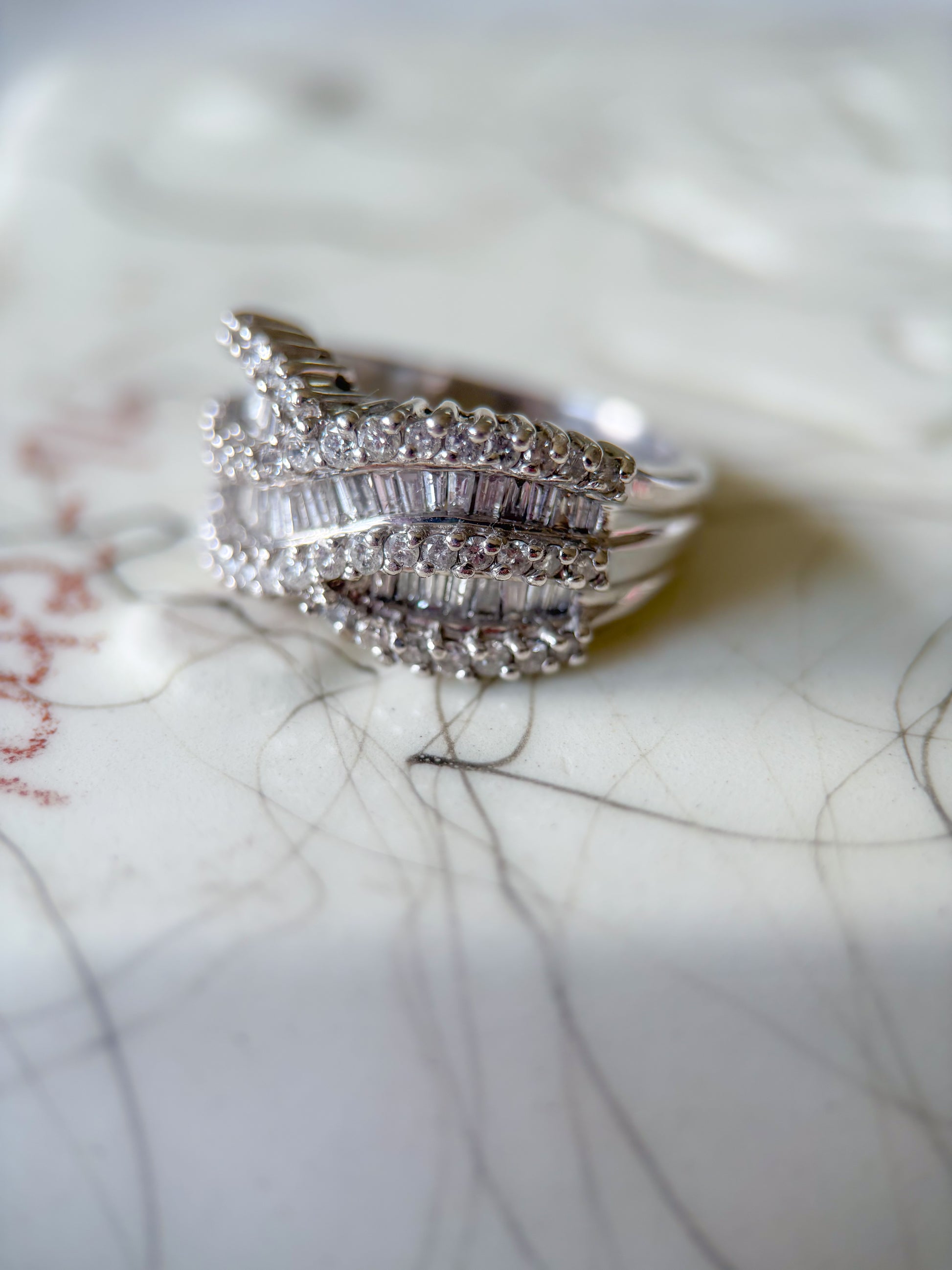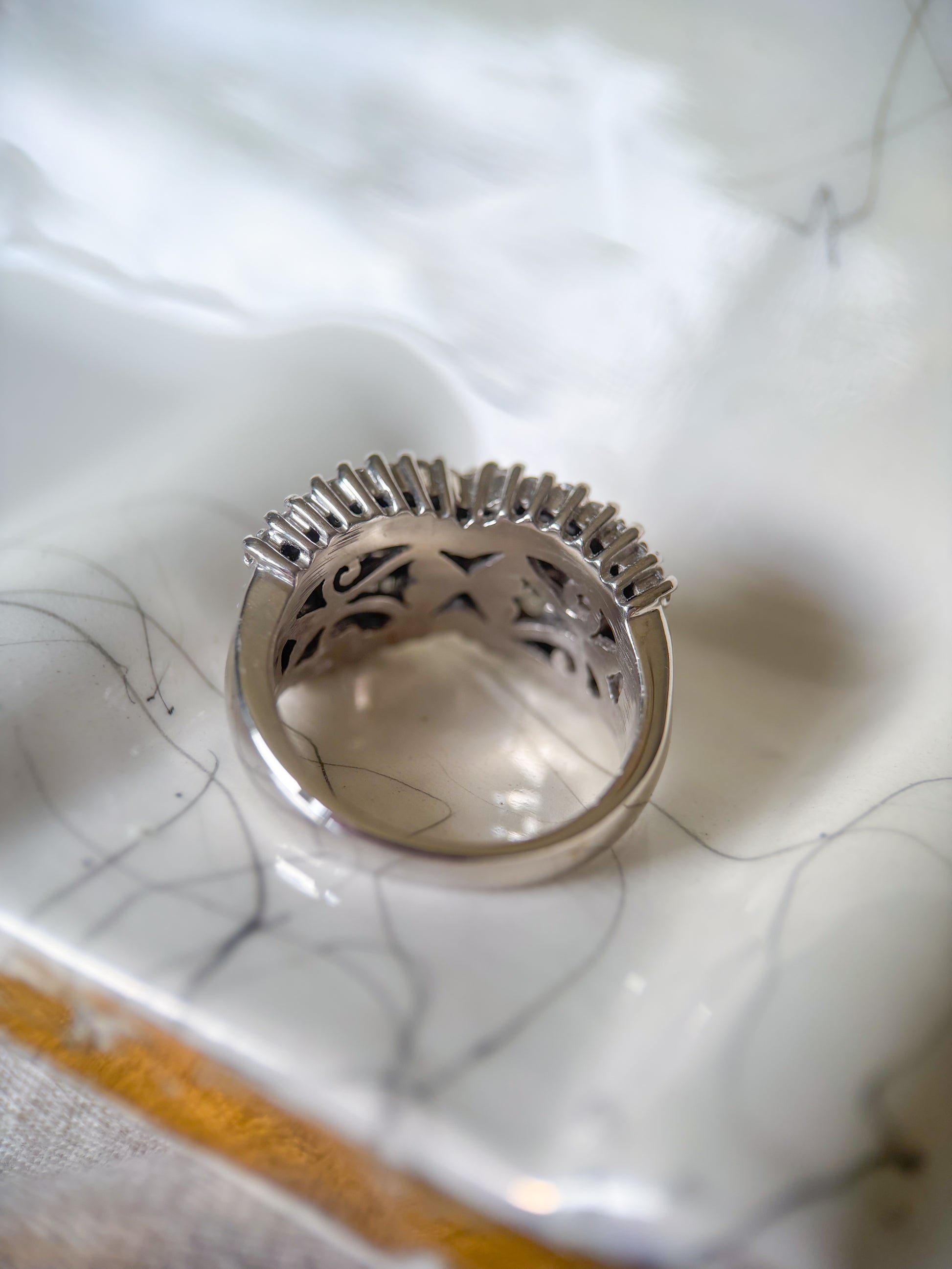 Vintage Natural Diamond Cross 14k White Gold Ring