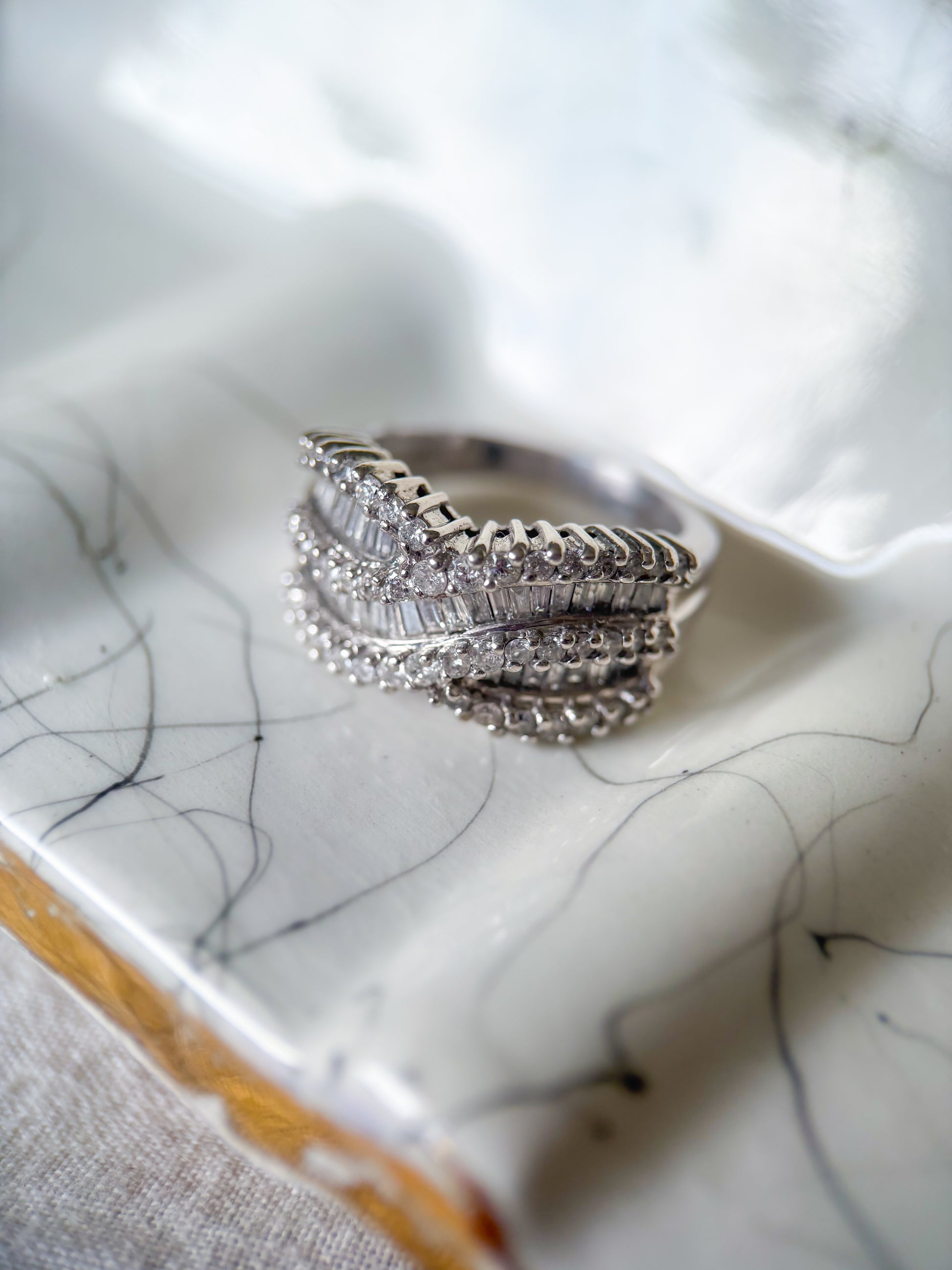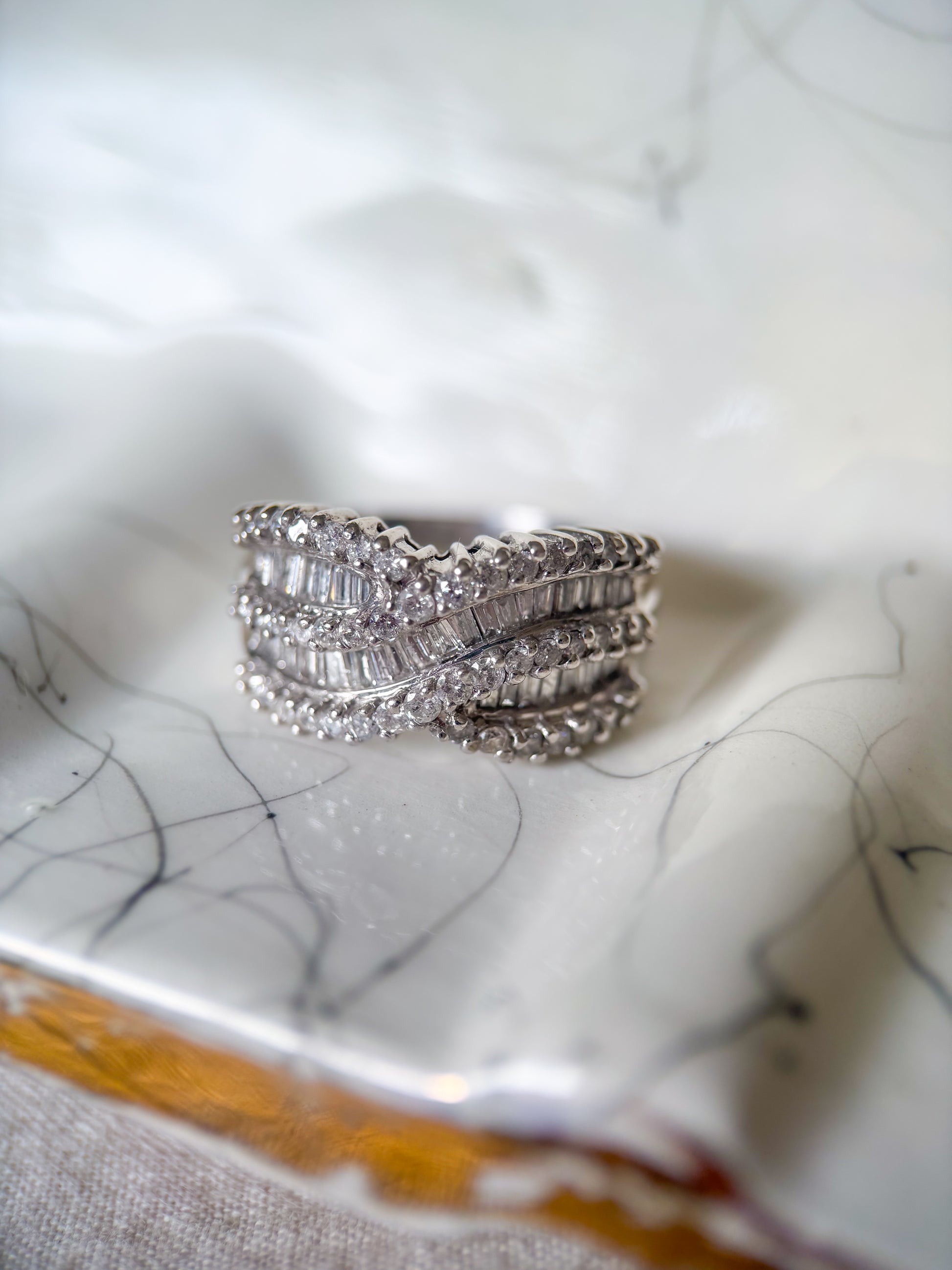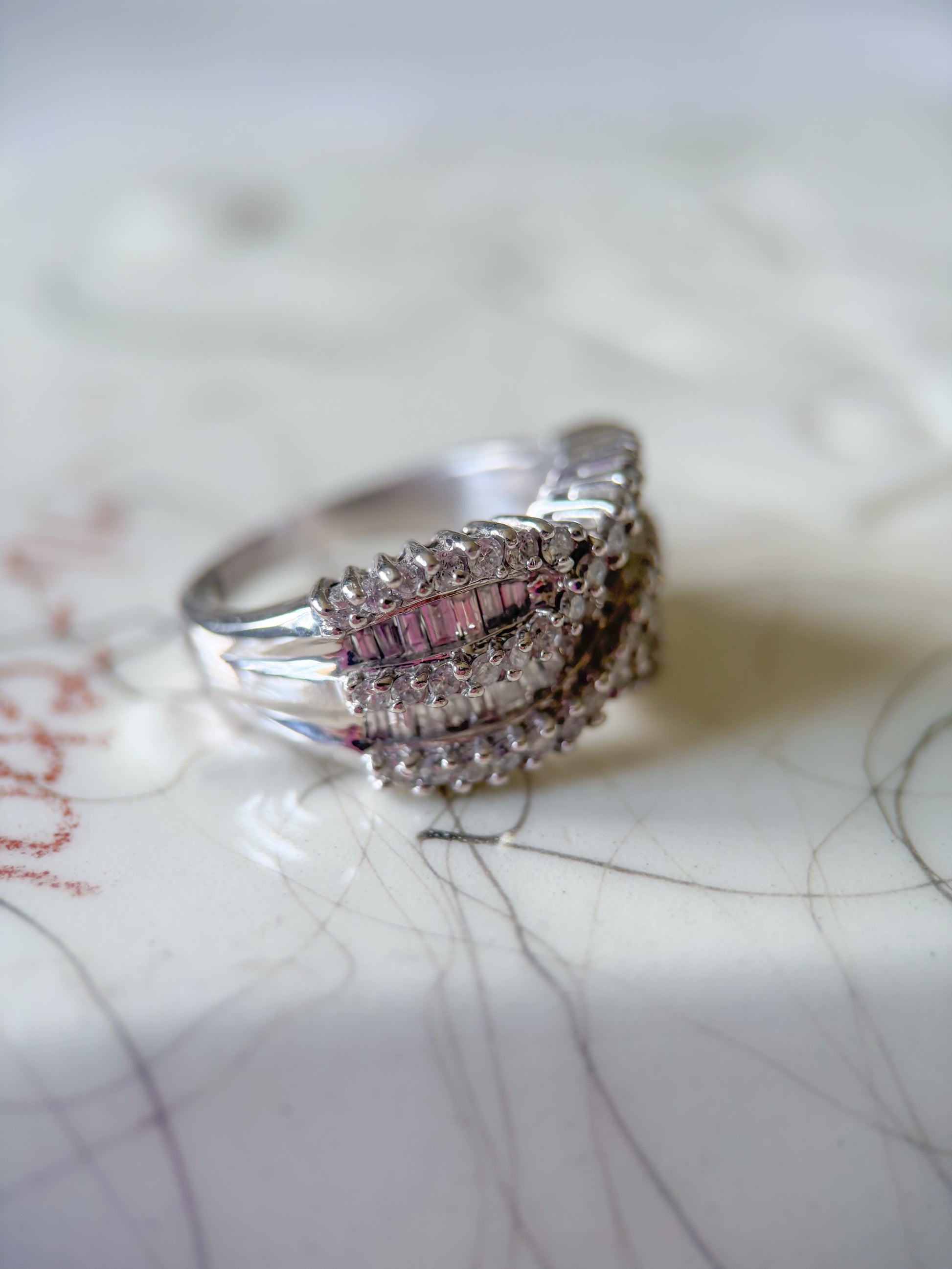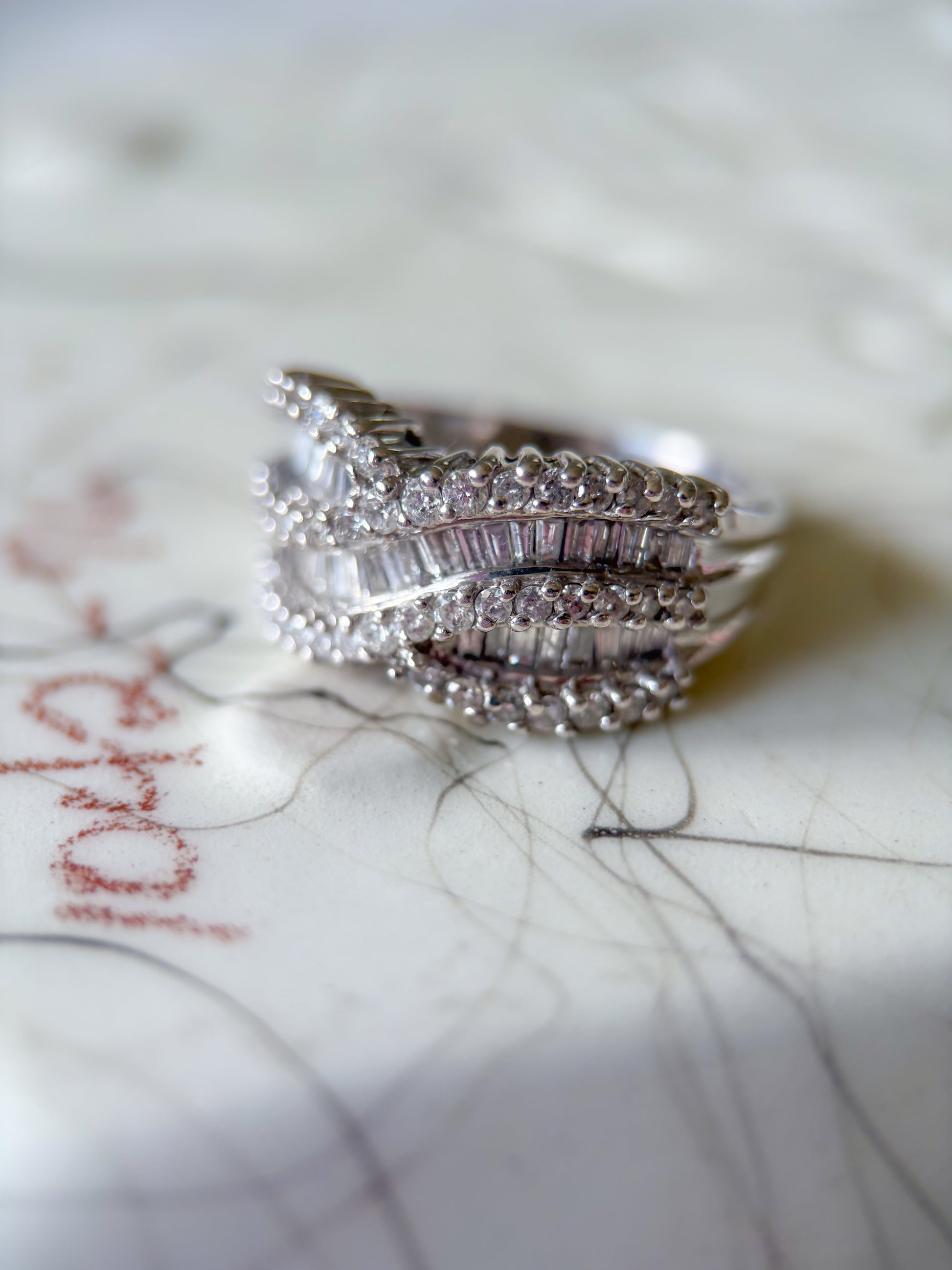 Vintage Natural Diamond Cross 14k White Gold Ring