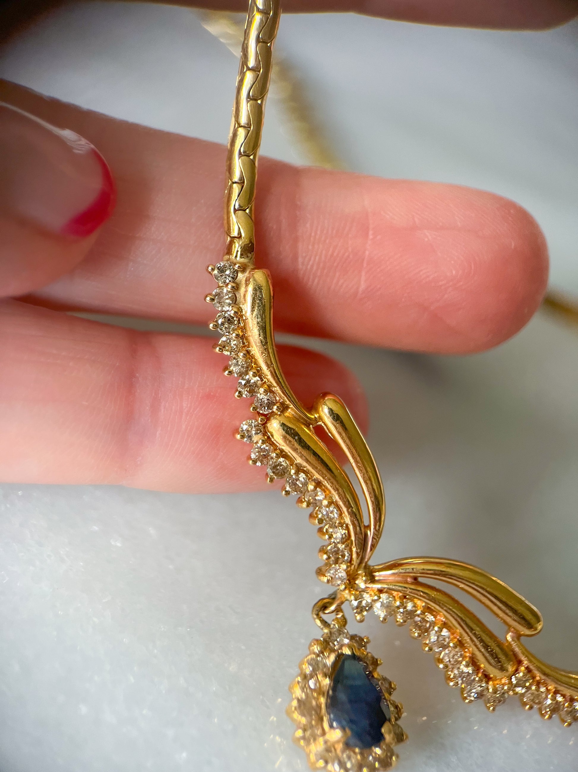 Vintage Natural Diamond, Emerald and Sapphire Pendant 14k Yellow Gold Necklaces