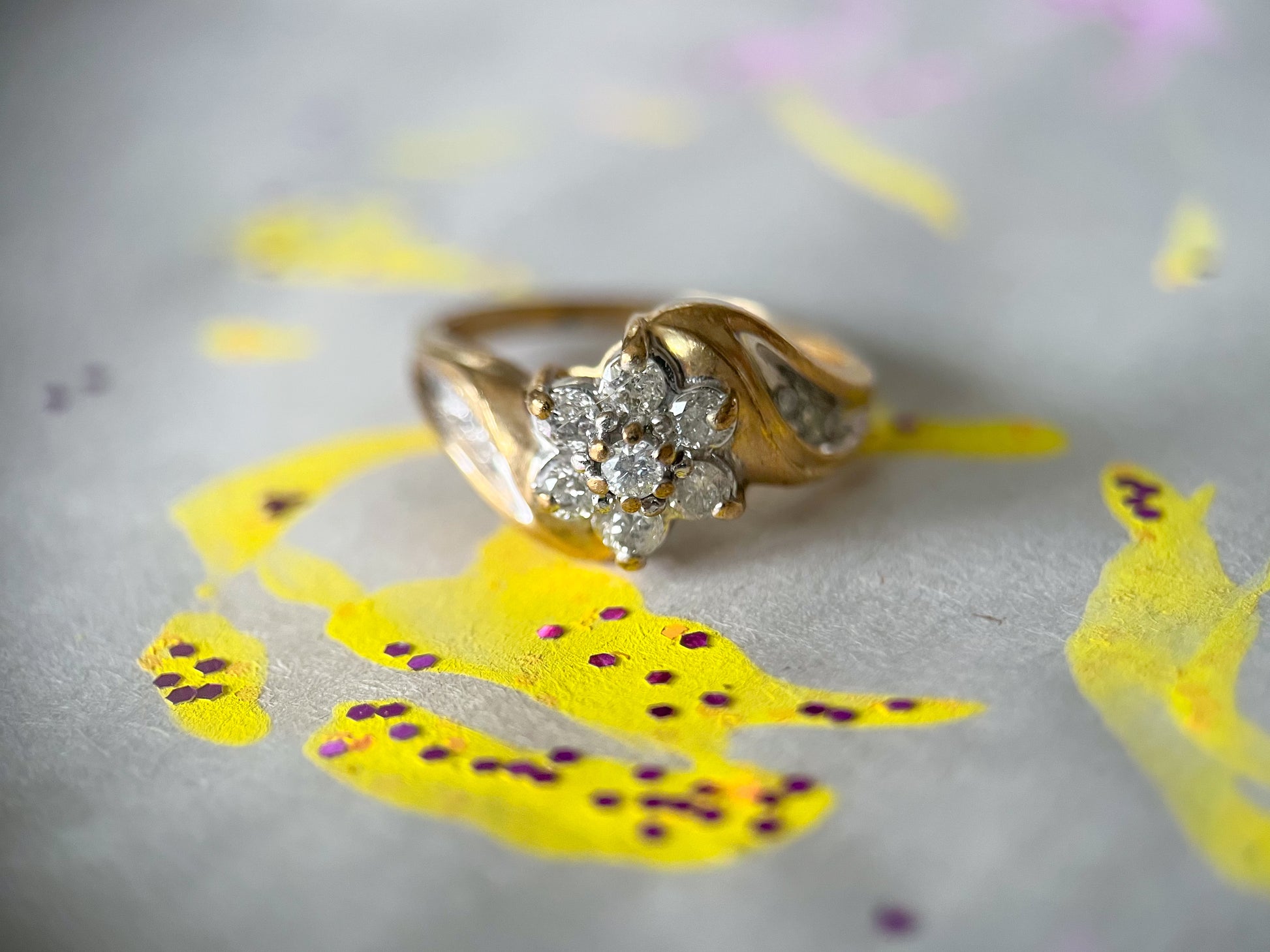 Vintage Natural Diamond Flower 10k Yellow Gold Ring
