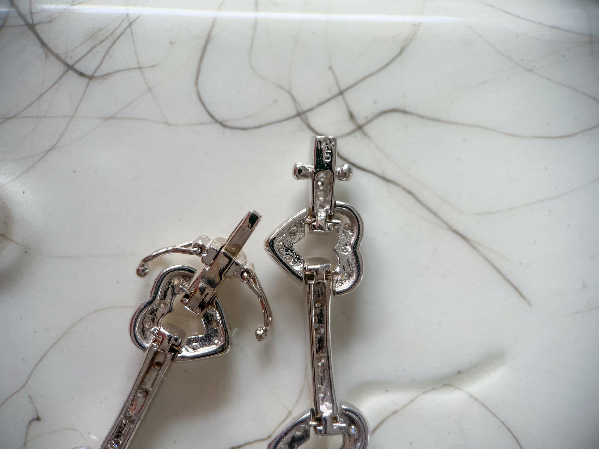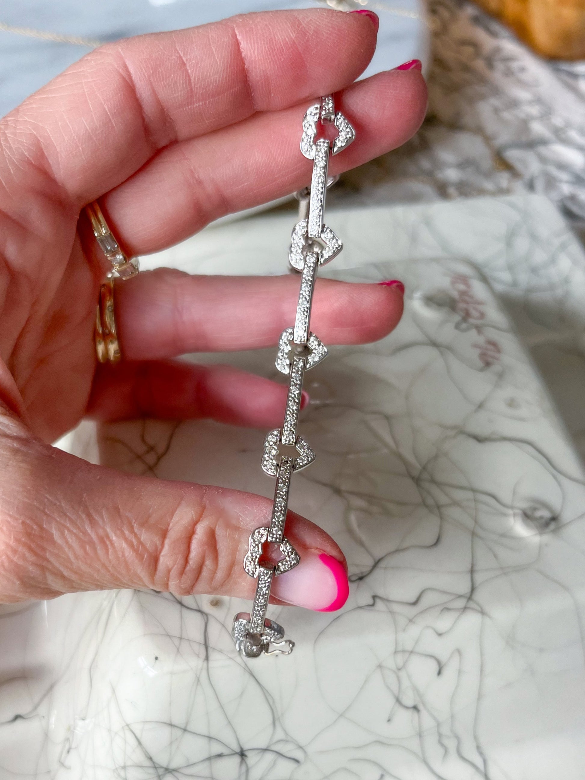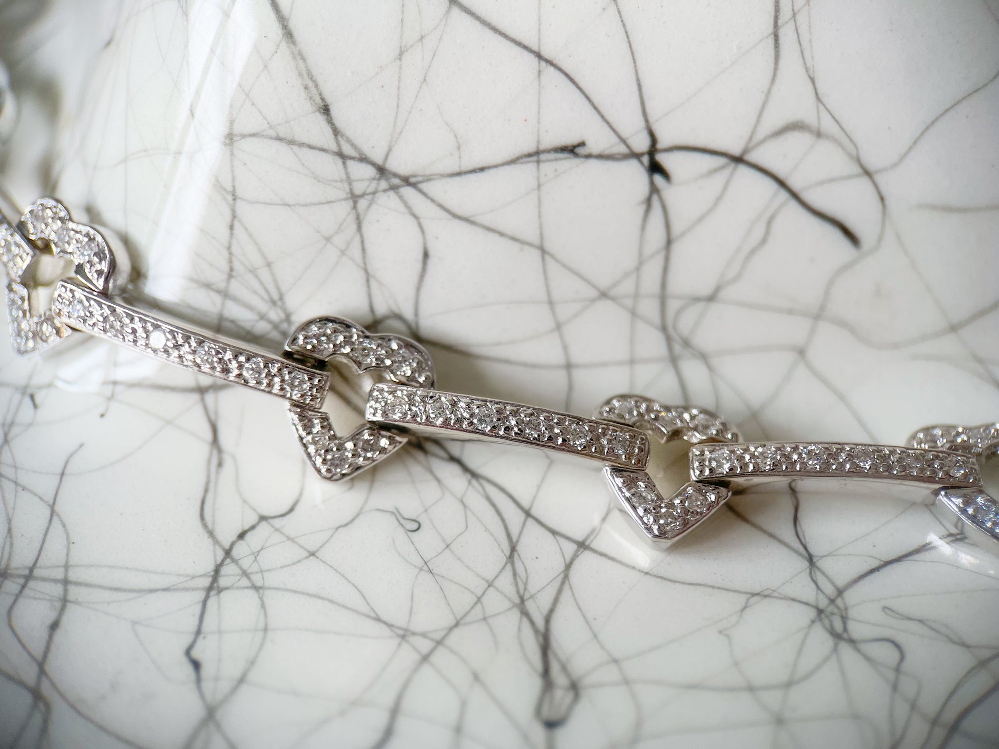 Vintage Natural Diamond Heart 14k White Gold 7 Inch Bracelet