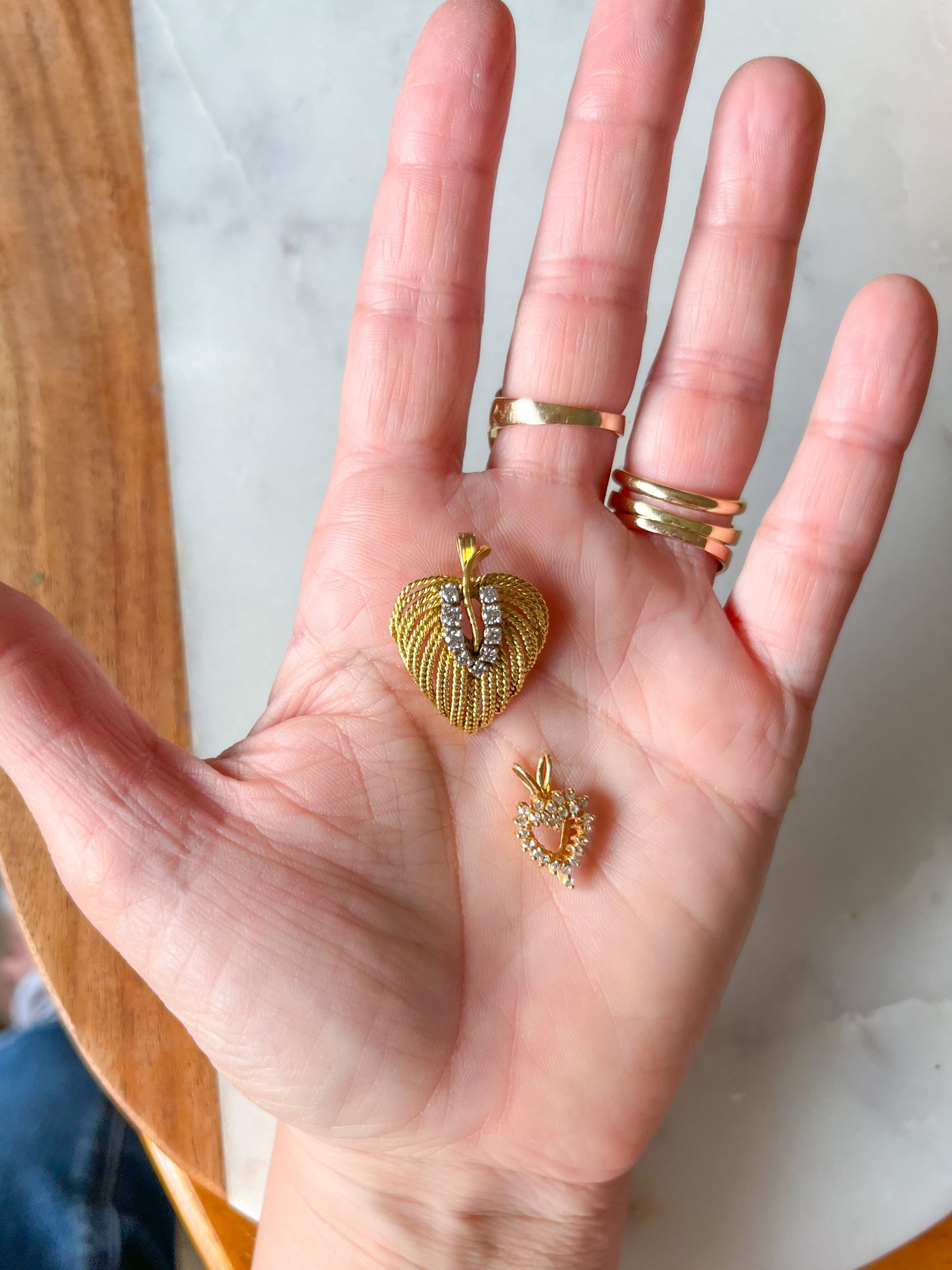 Vintage Natural Diamond Heart 14k Yellow Gold Charm