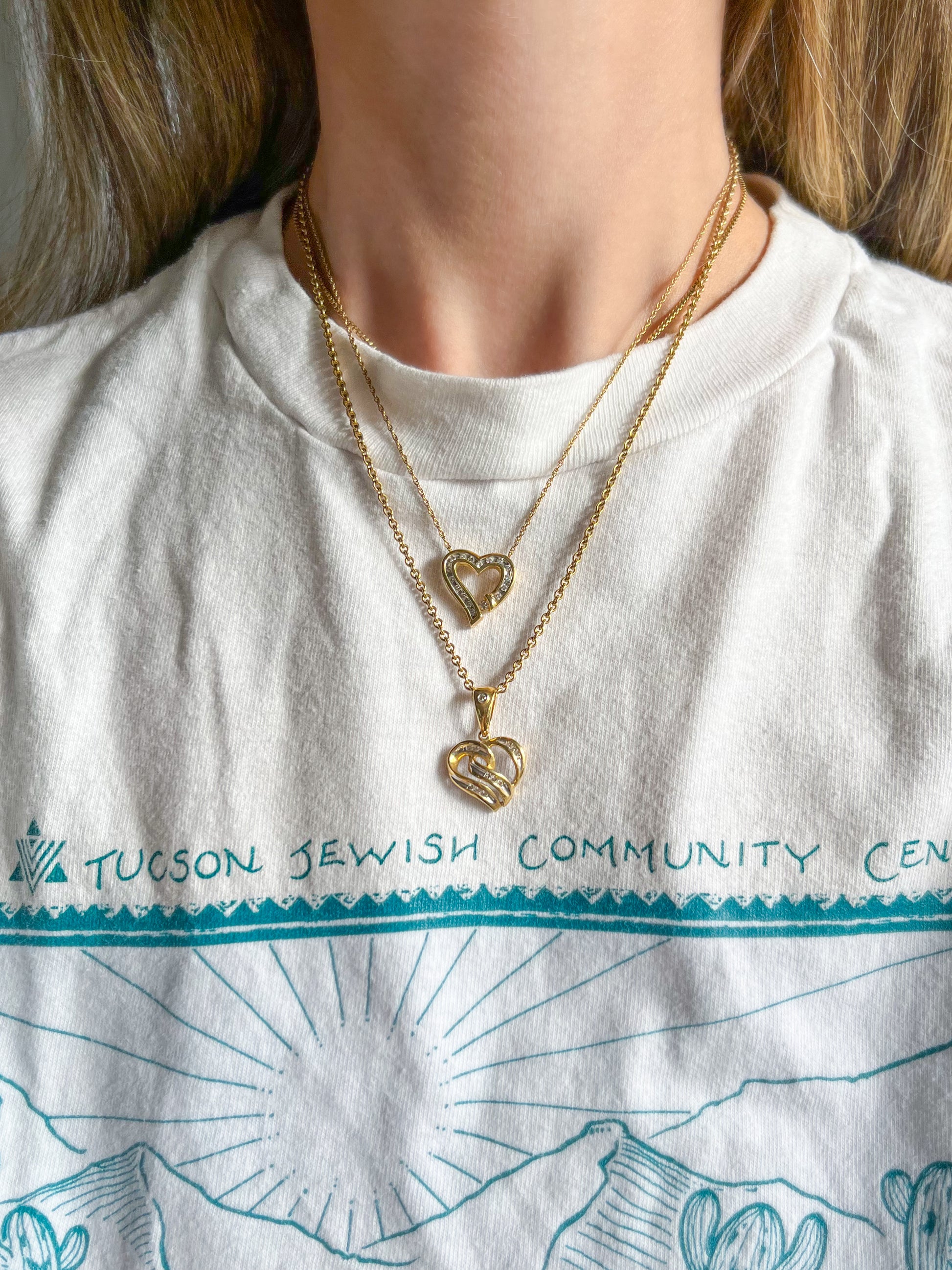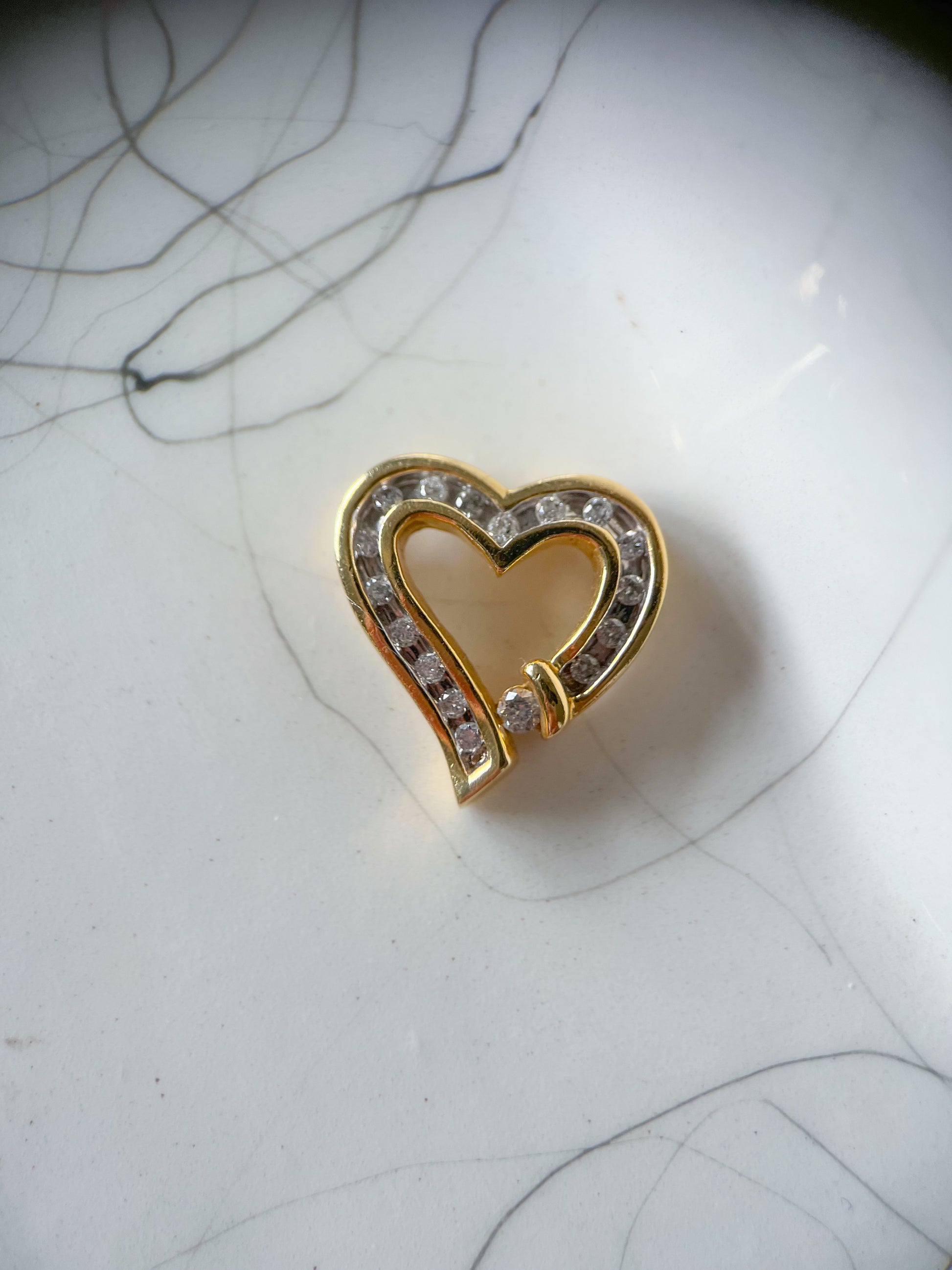 Vintage Natural Diamond Hearts 14k Yellow Gold Charms
