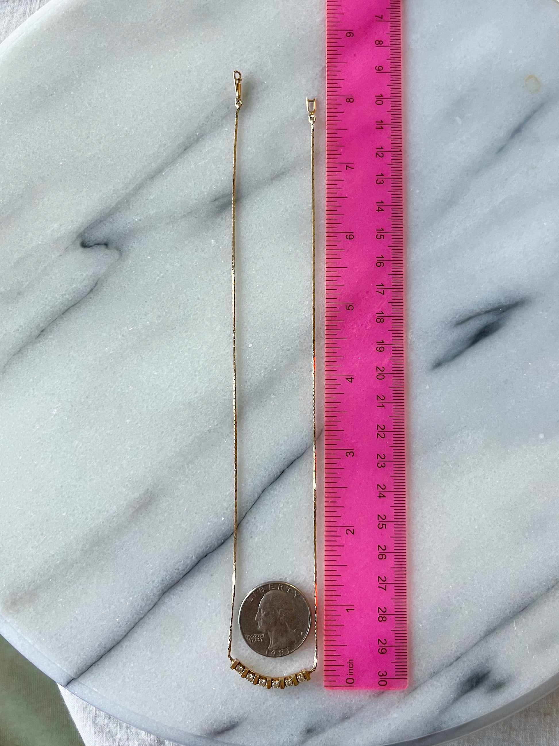 Vintage Natural Diamond Pendant 14k Yellow Gold 17 Inch Chain Necklace