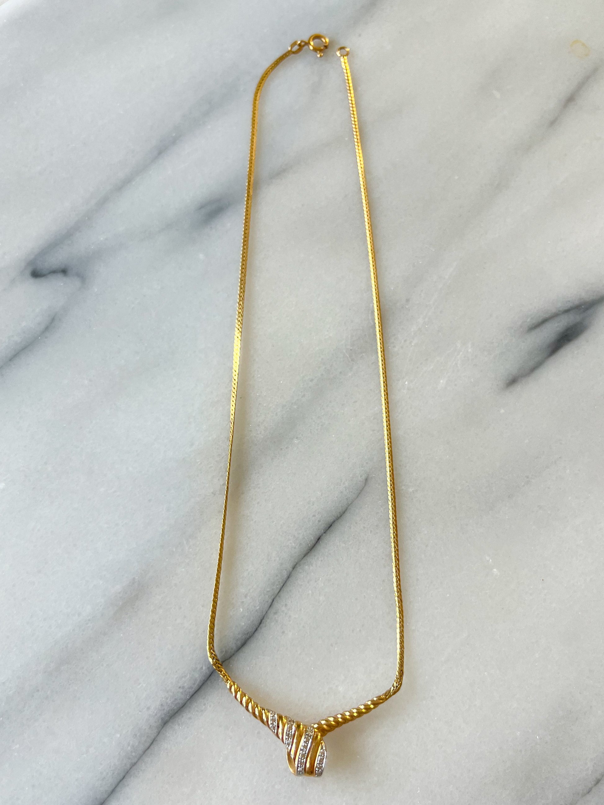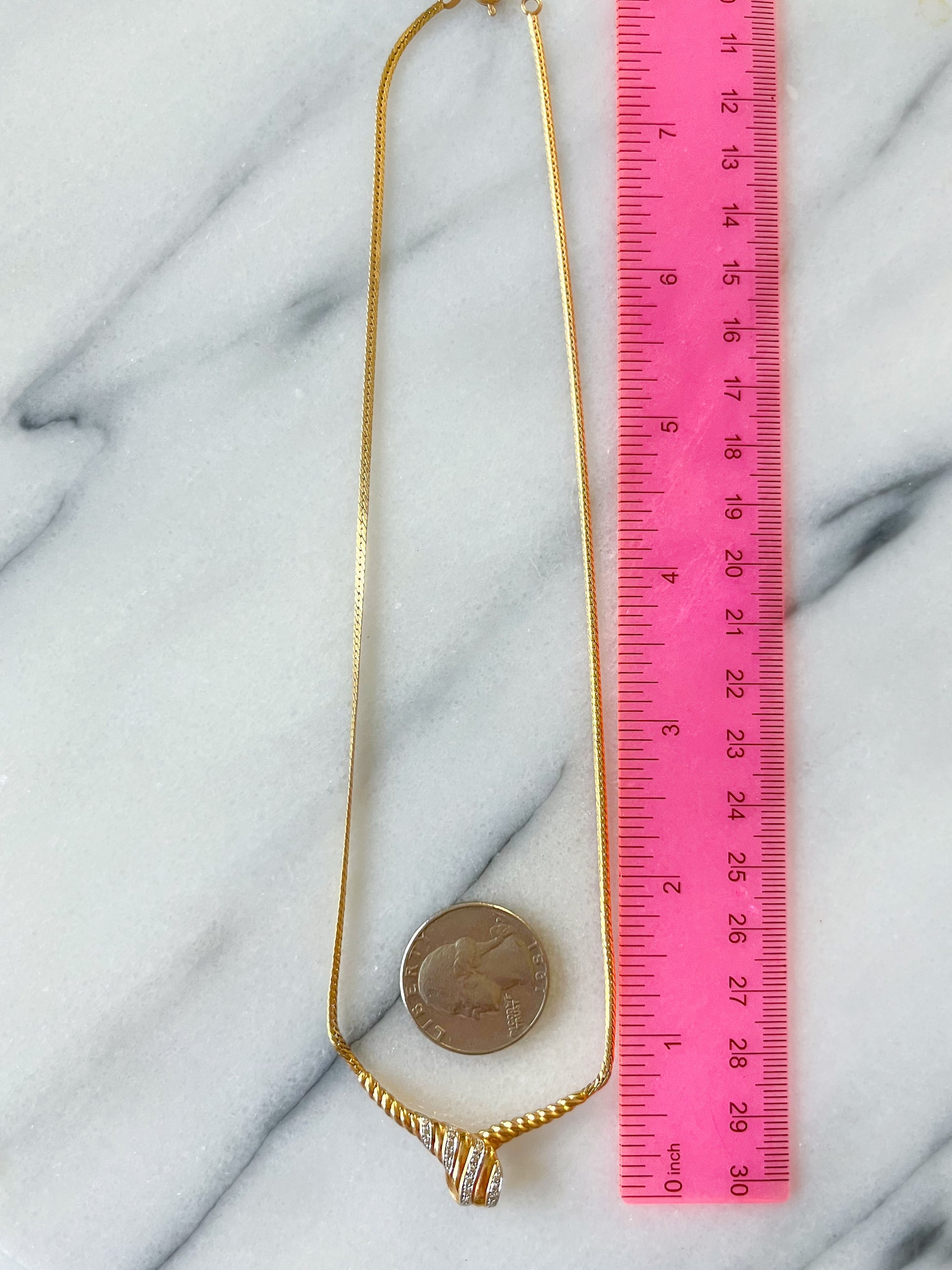 Vintage Natural Diamond Pendant 18k Yellow gold 16.5 Inch Chain Necklace