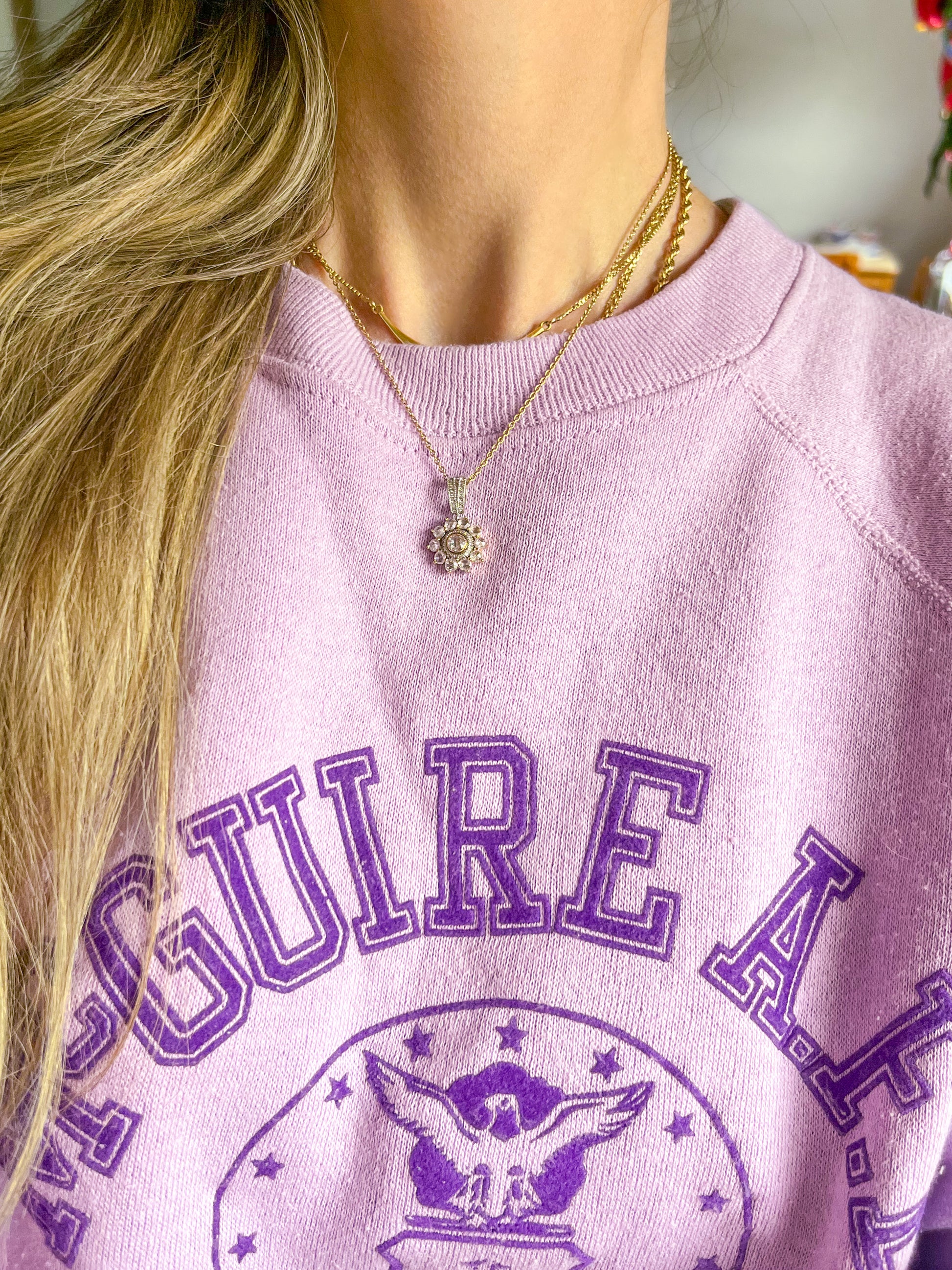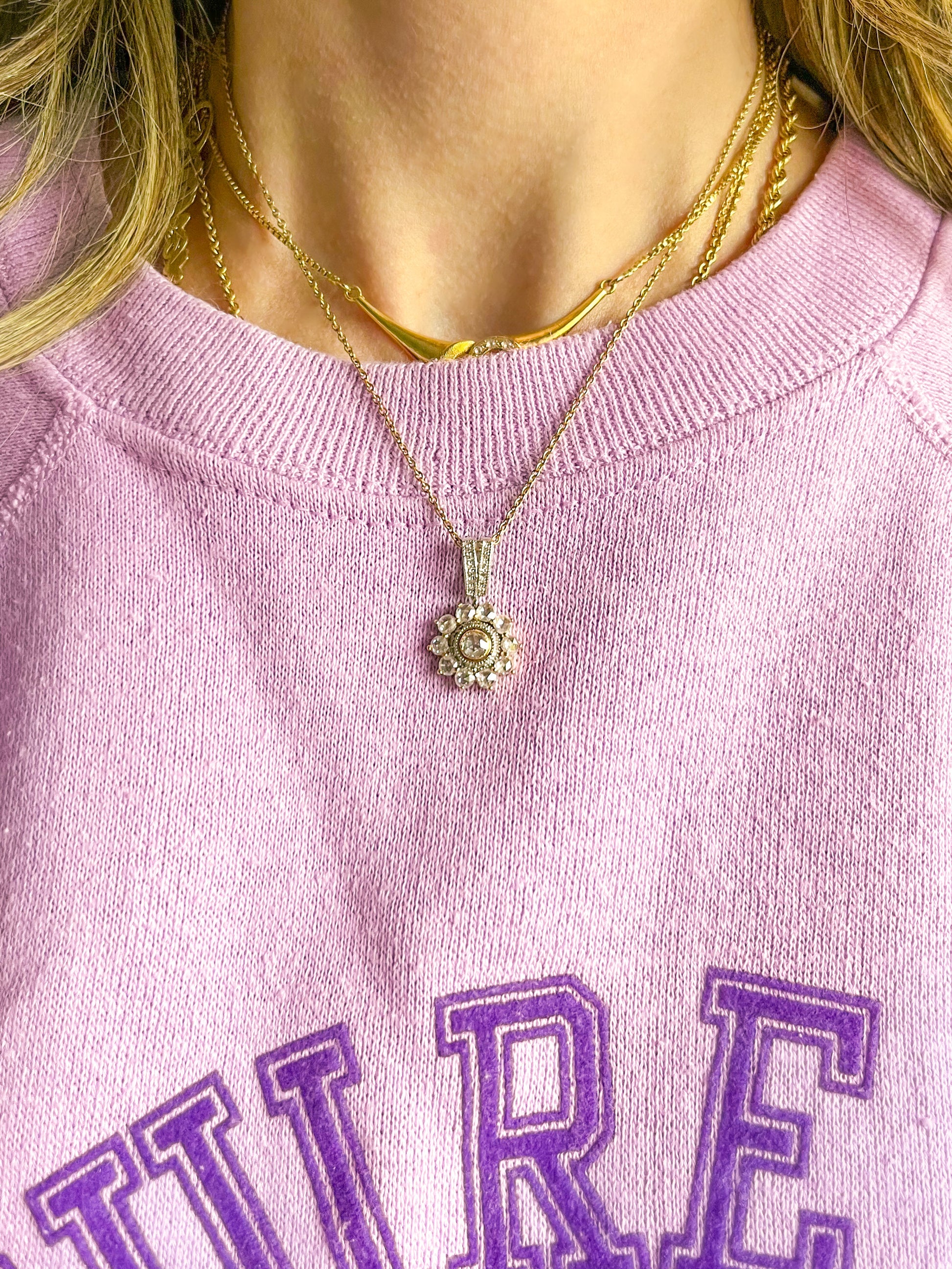 Vintage Natural Diamond Rose Cut Light Pink 14k Rose and White Gold Pendant Charm