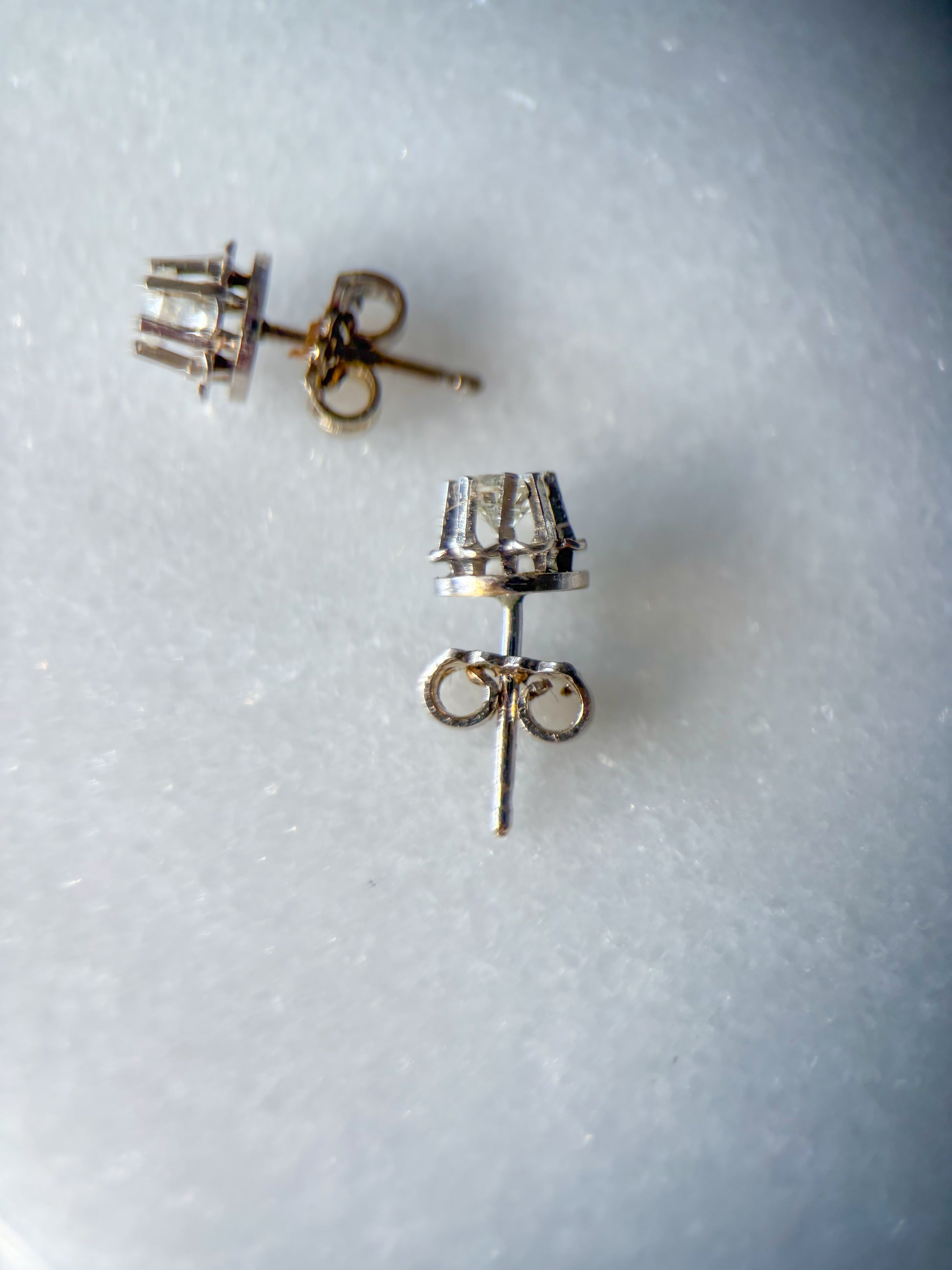 Very sweet, vintage, 14k white gold diamond studs. Diamonds are not eye clean and set in a beautiful flower design.