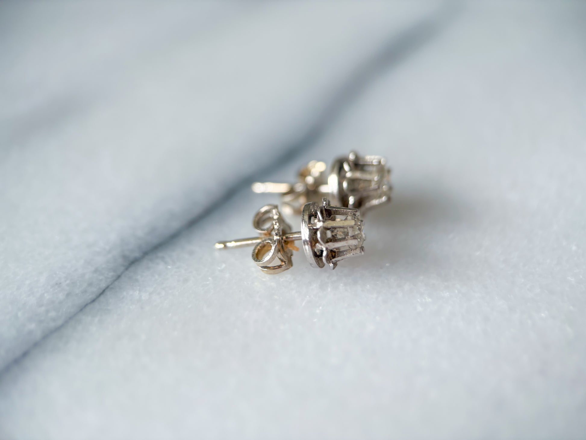 Vintage Natural Diamond Flower 14k White Gold Stud Earrings