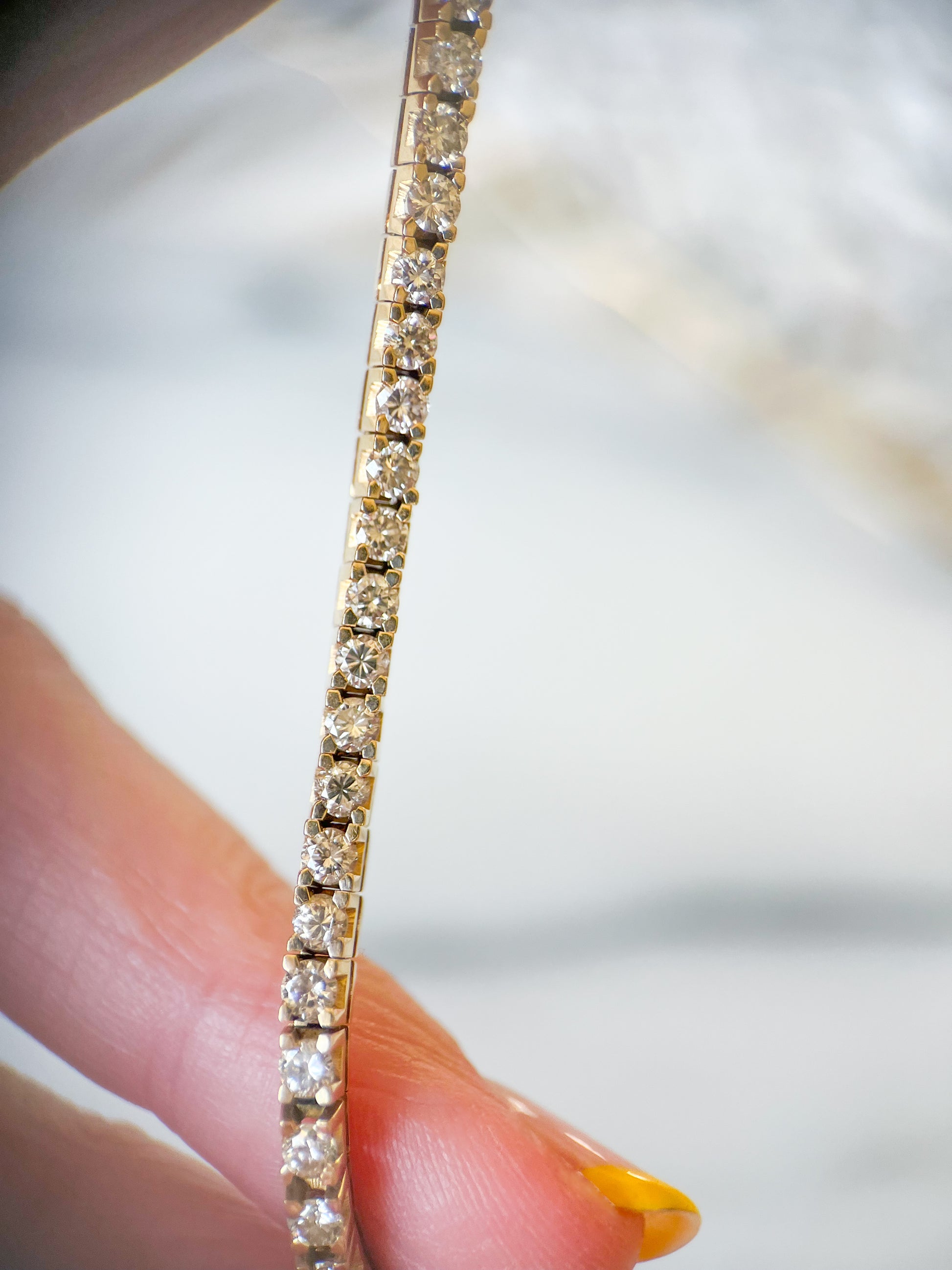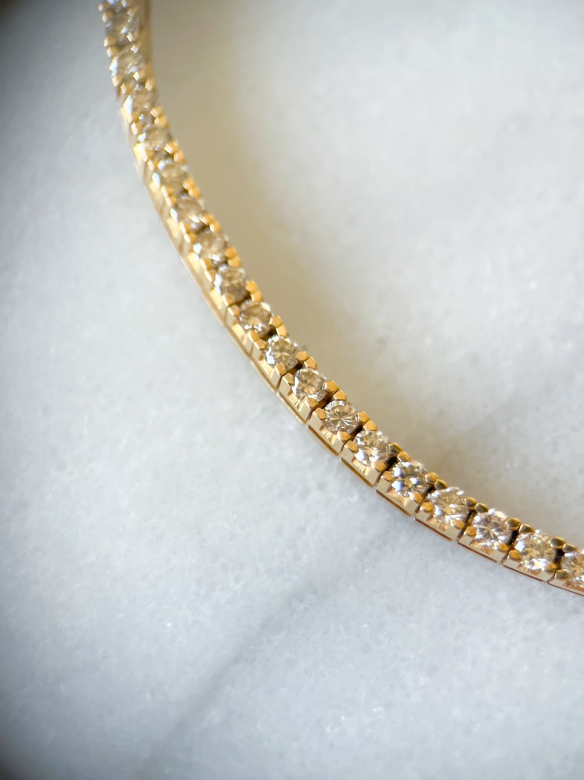 Vintage Natural Diamond Tennis Bracelet set in 14k Yellow Gold, 7 Inches