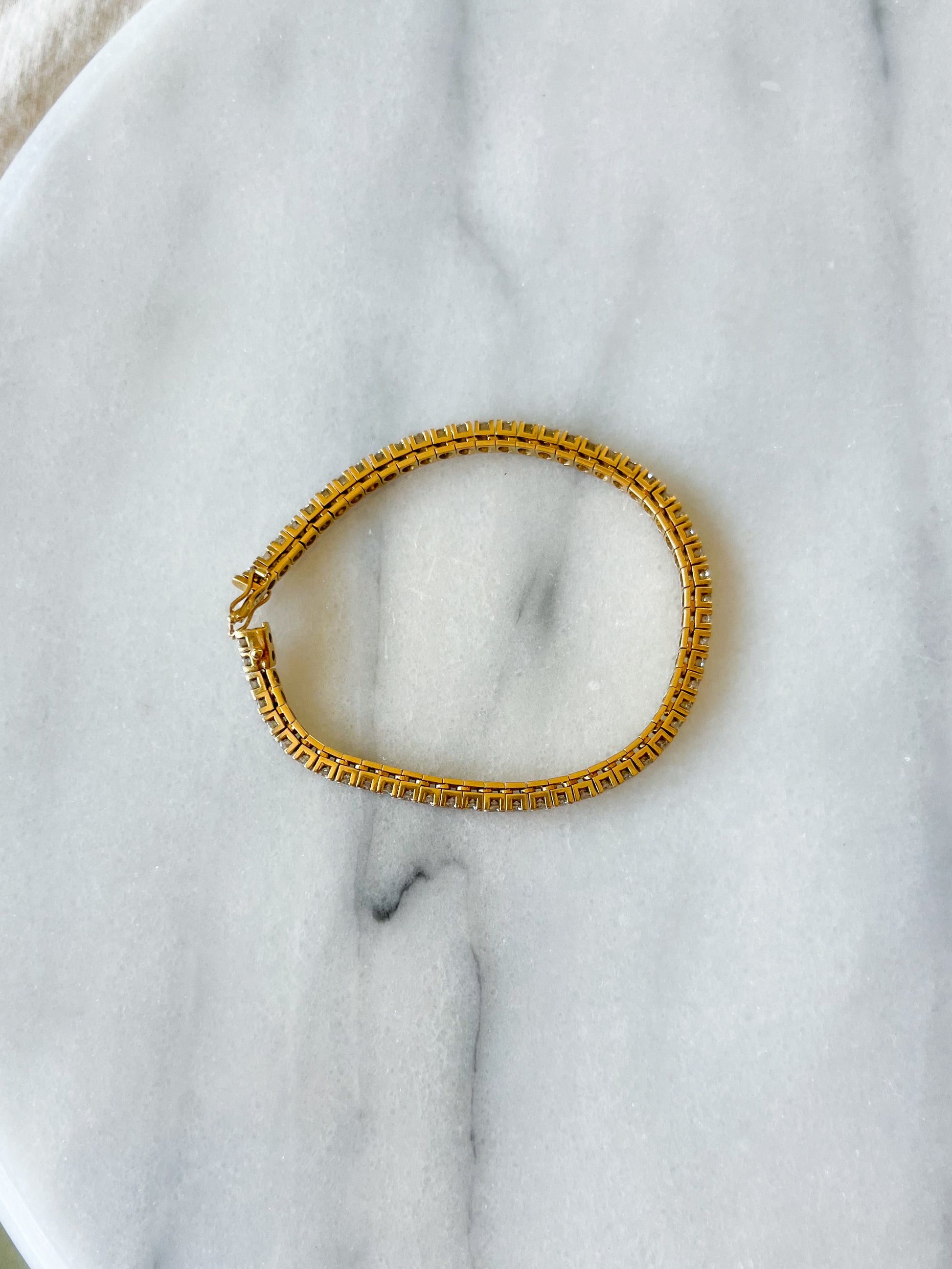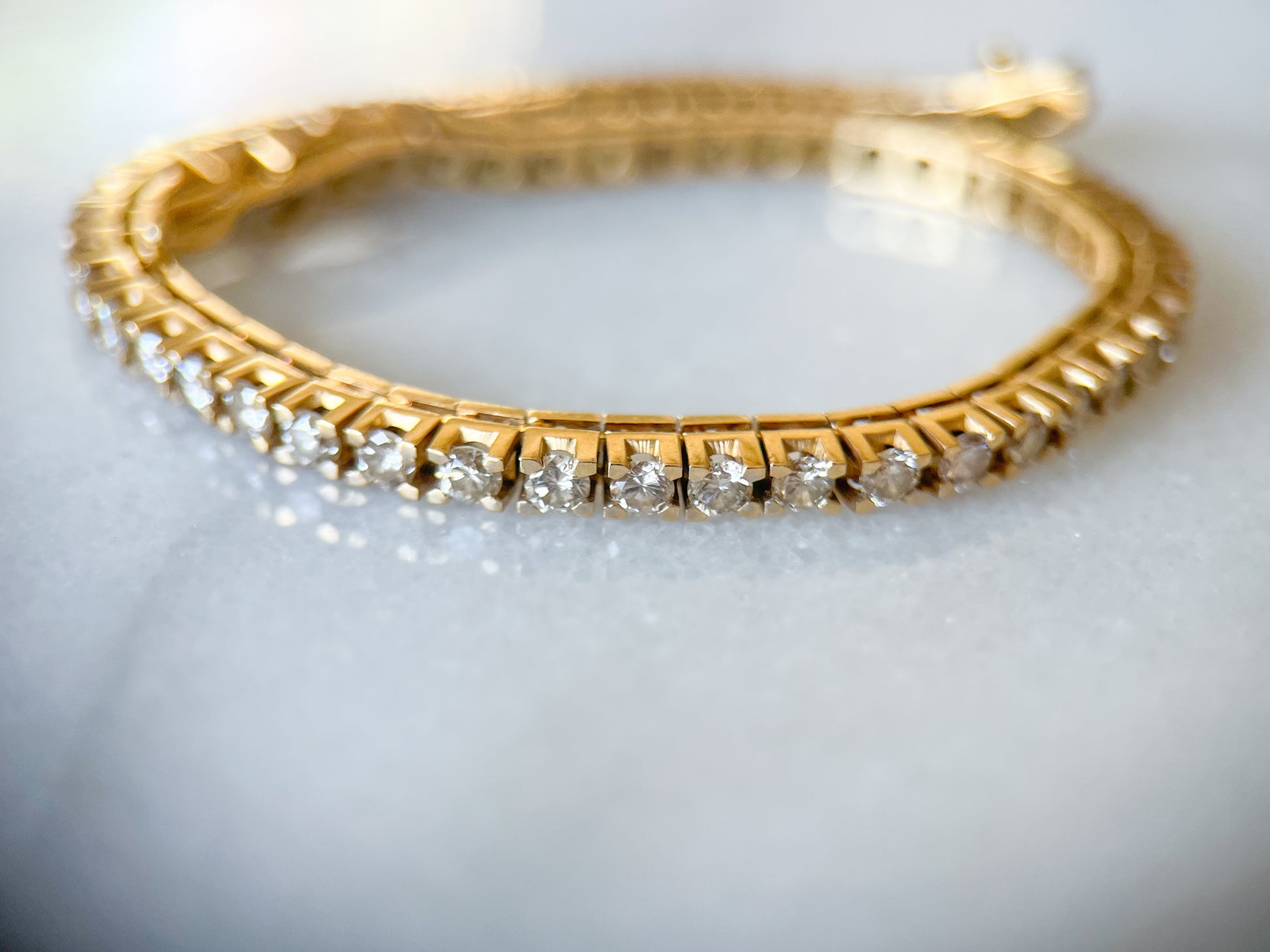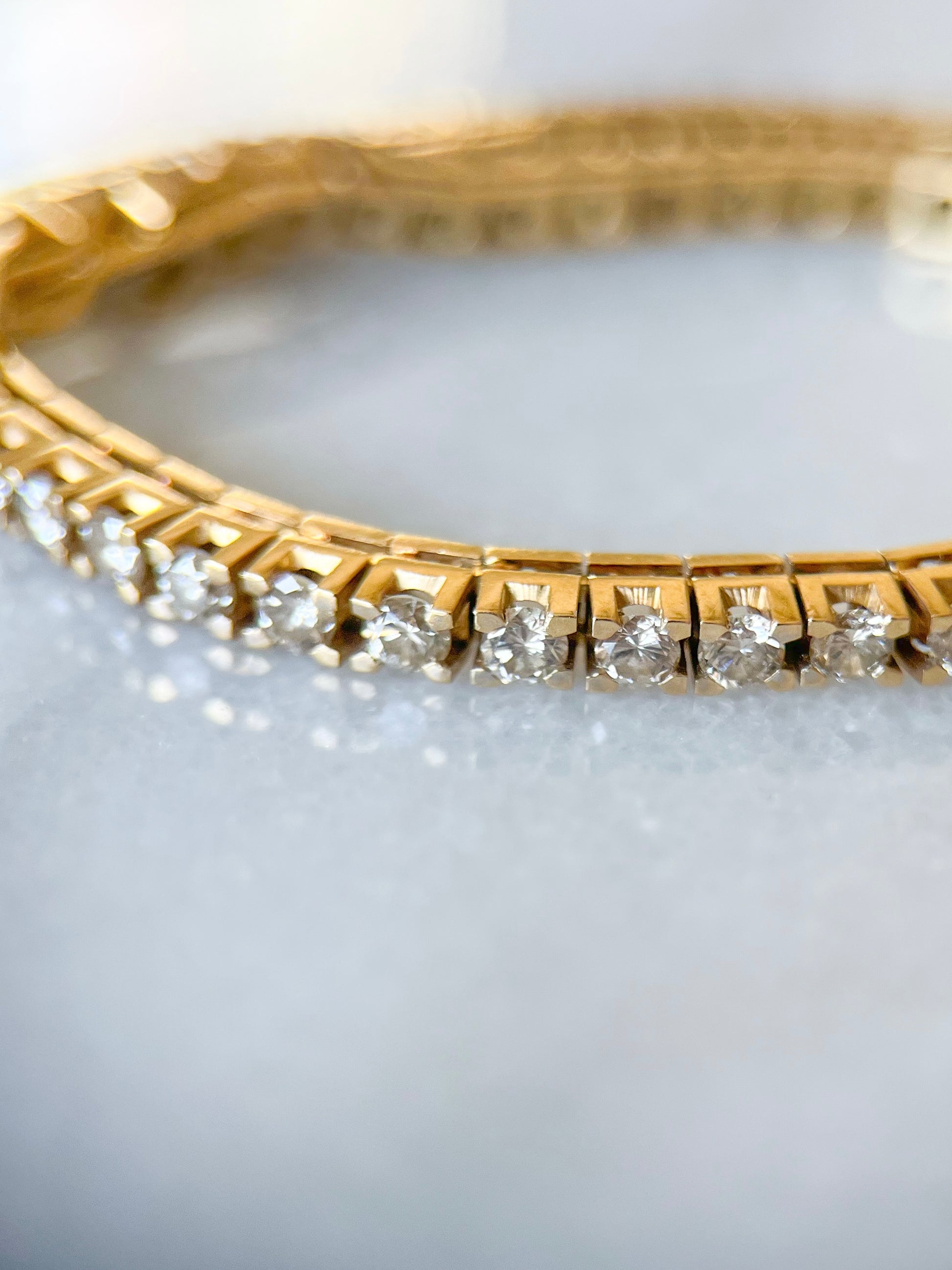Vintage, 14k yellow gold, natural diamond tennis bracelet! Totally in love with the way the stones are set! This bracelet is 7 inches long, over 12 grams and is 3.00 cttw.