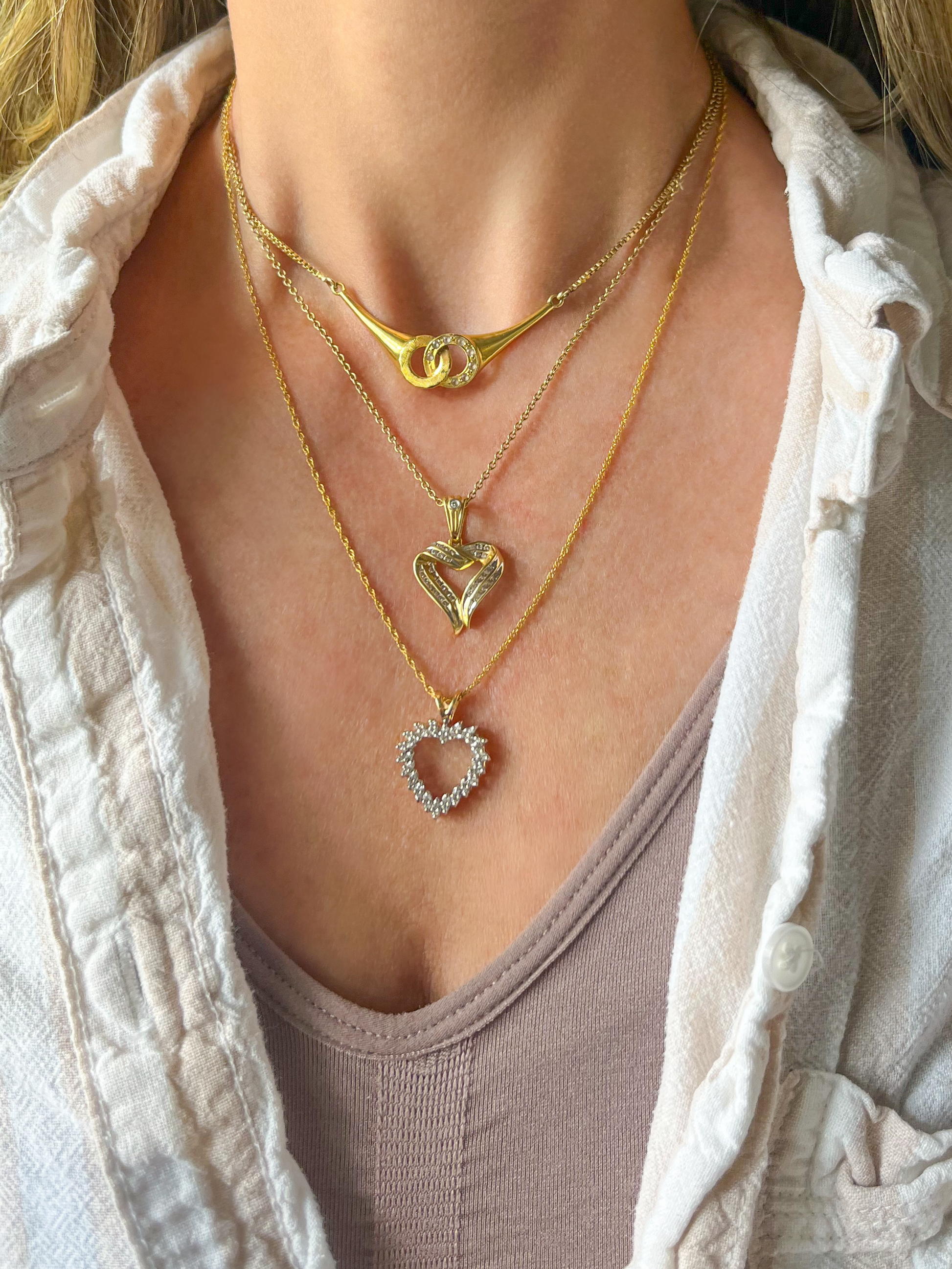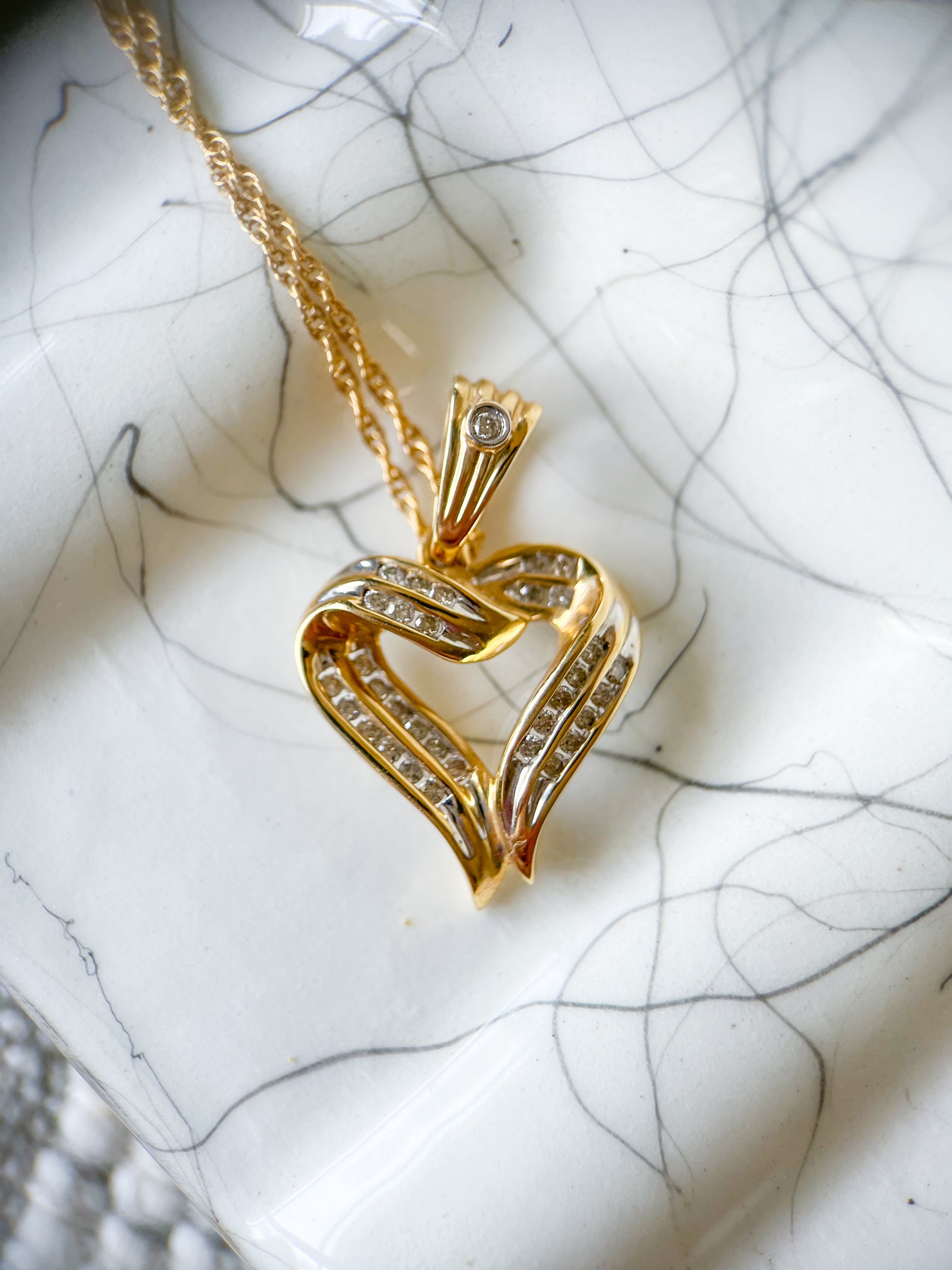 Vintage Natural Diamond Twist 14k Yellow Gold Heart Charm