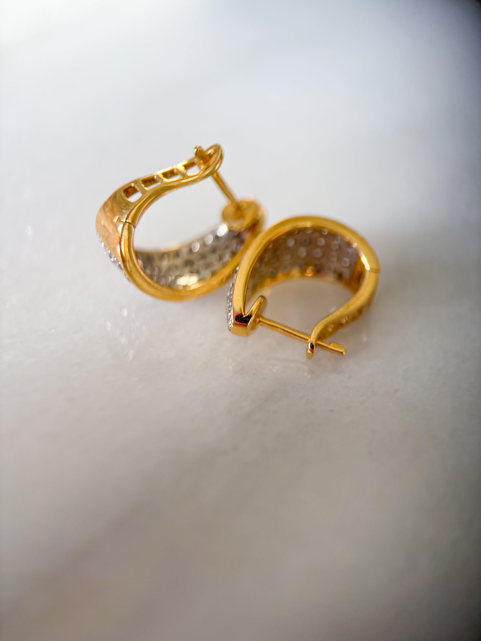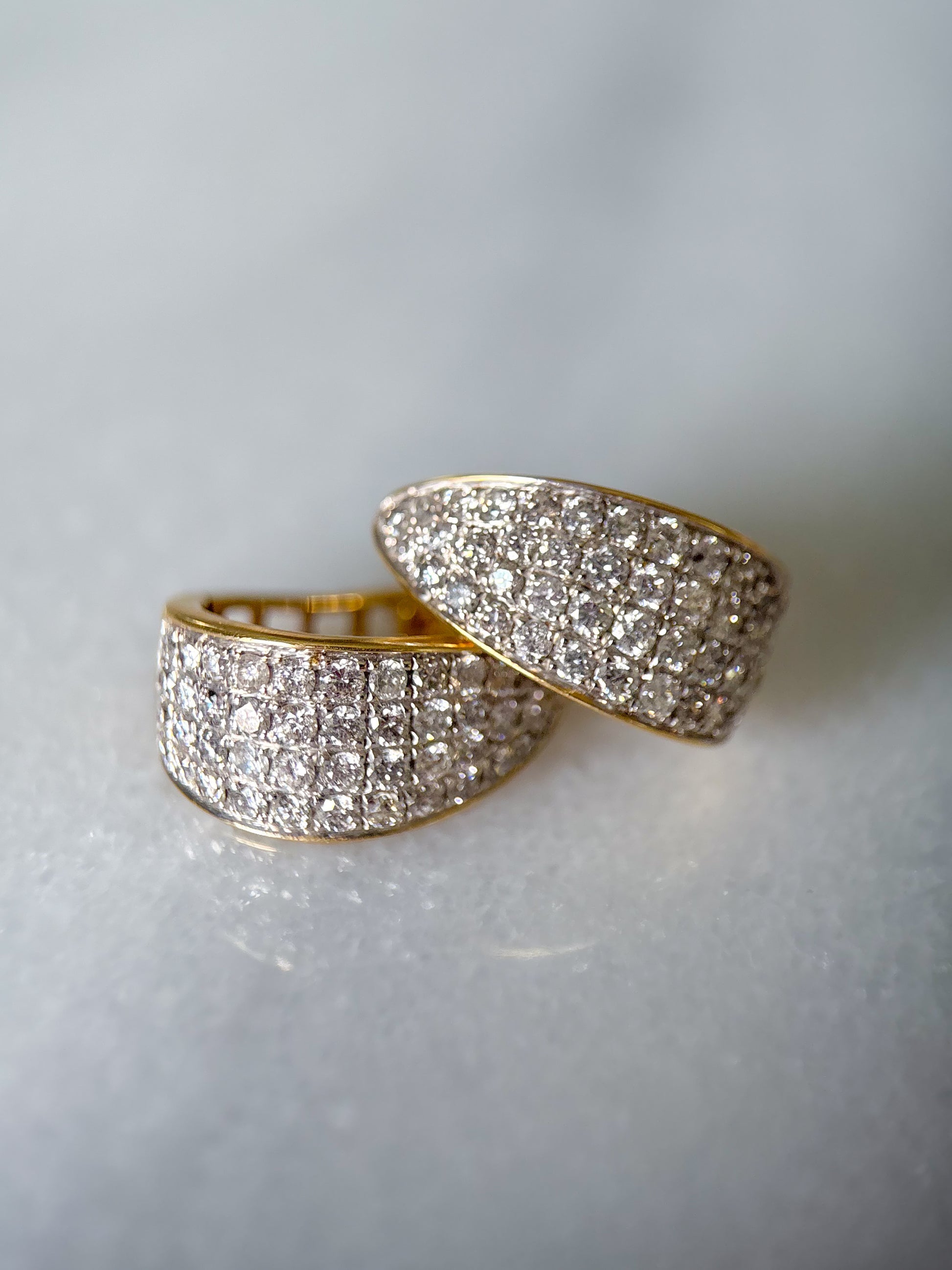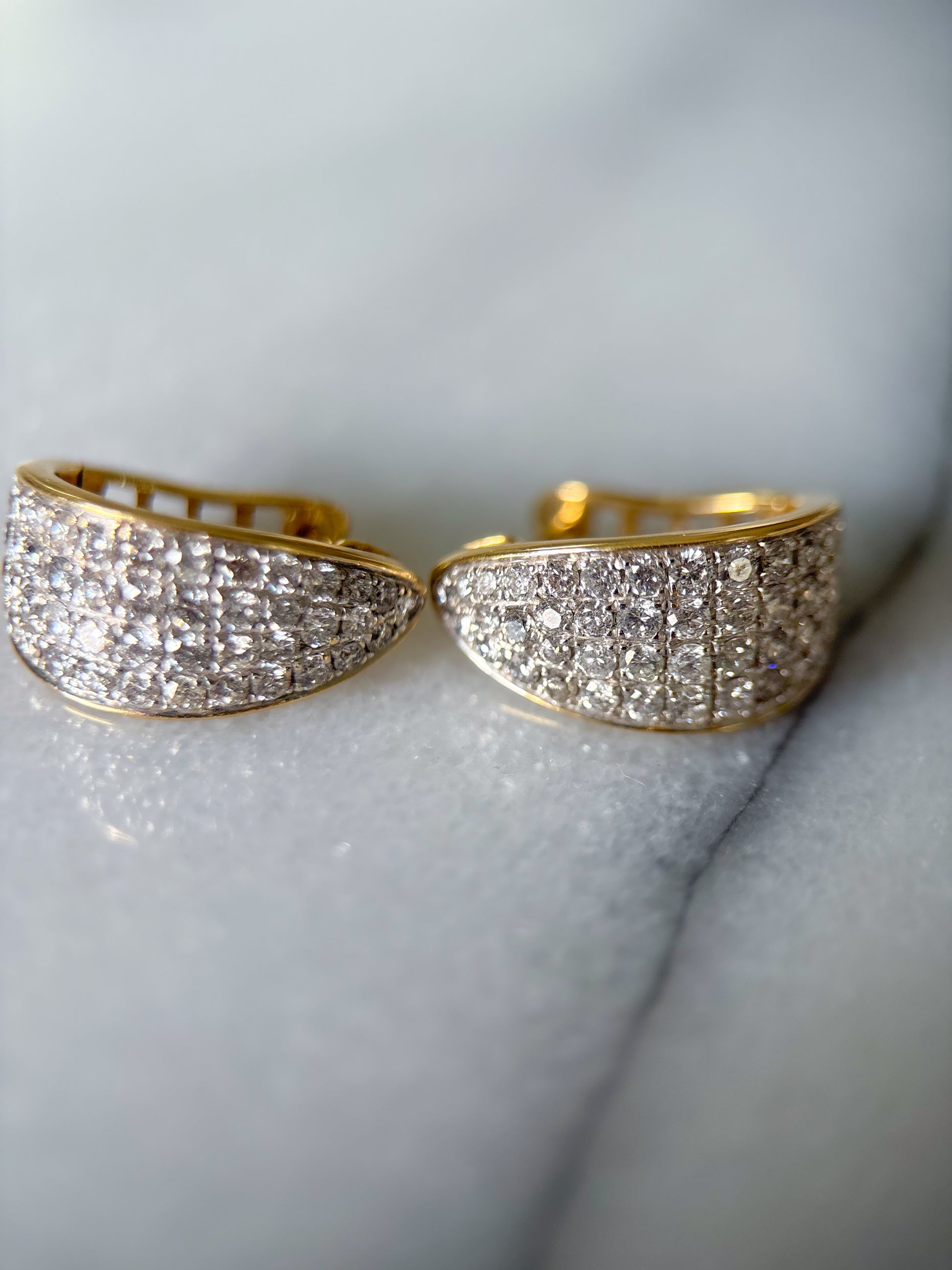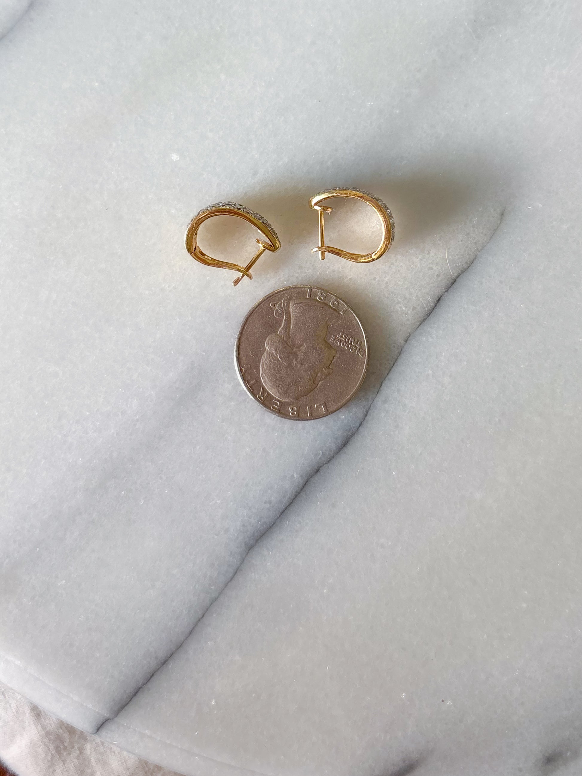 I love these hoops! These beauties are not vintage, and are made of 14k yellow gold and natural diamonds.