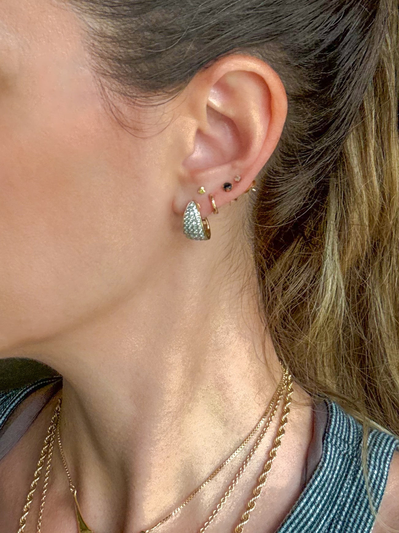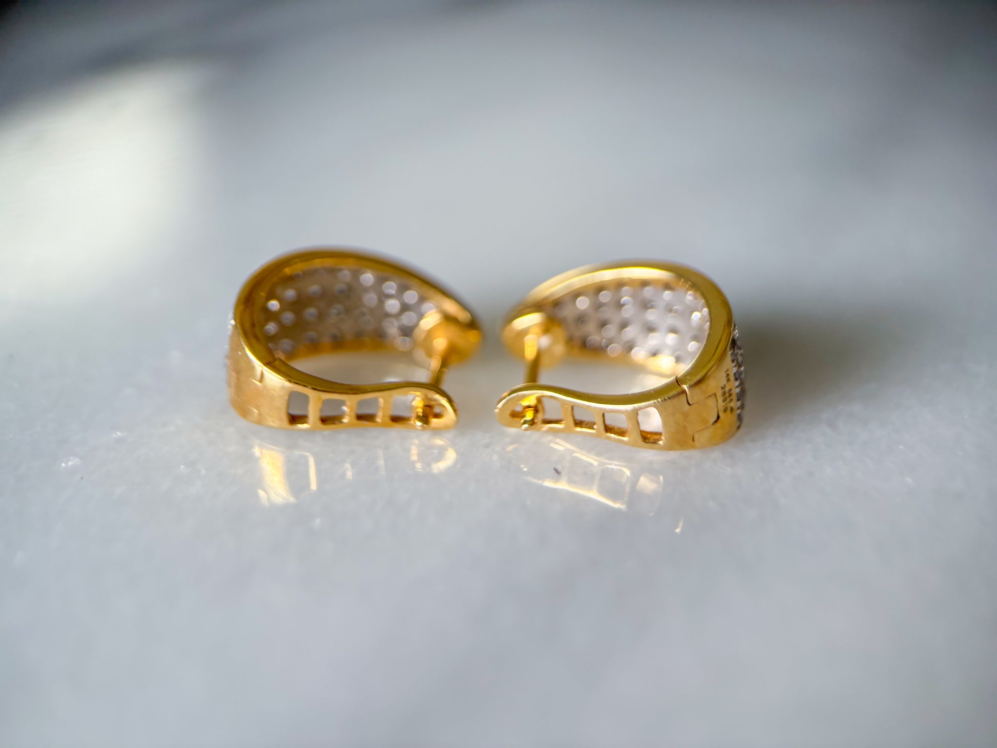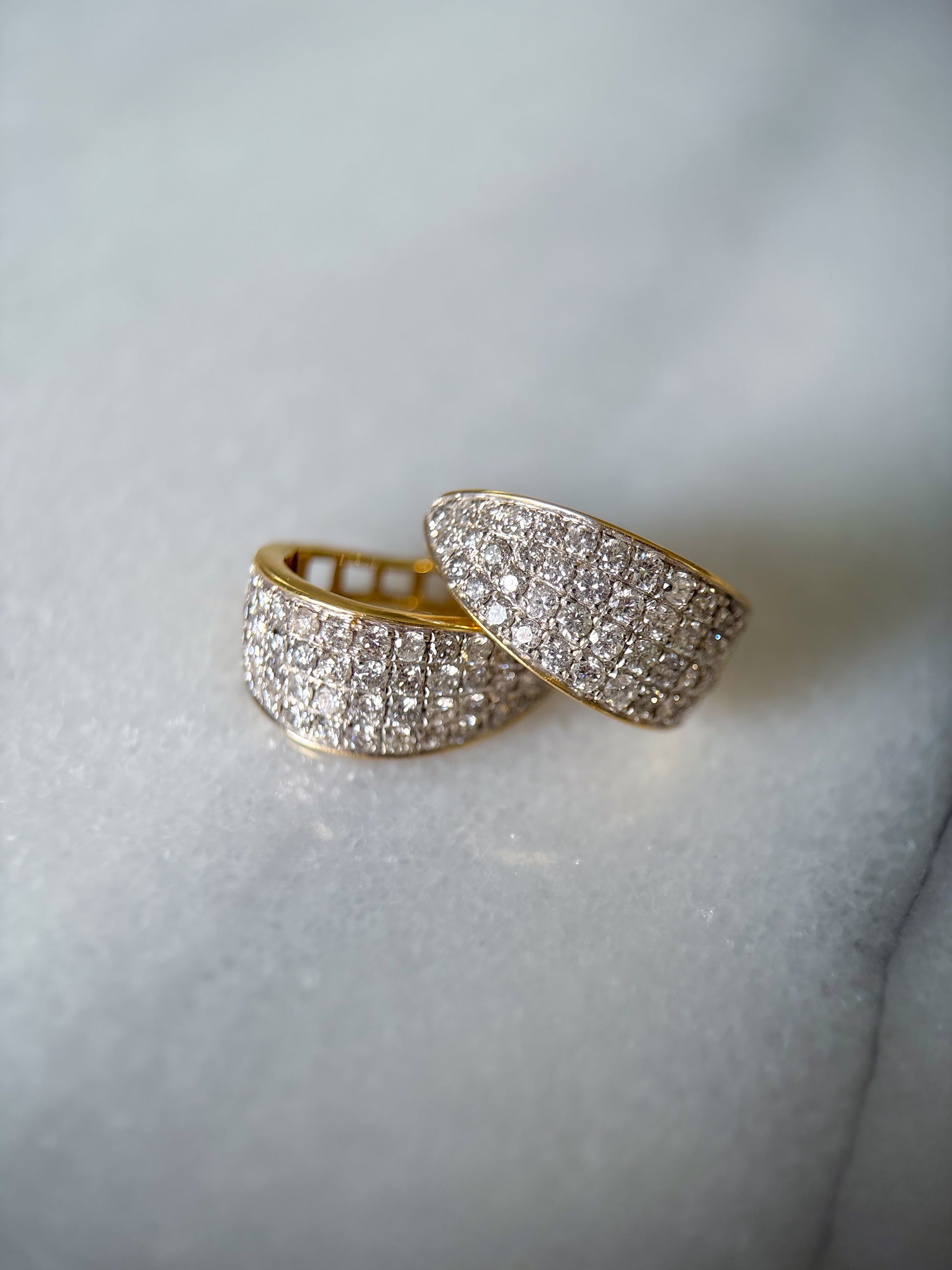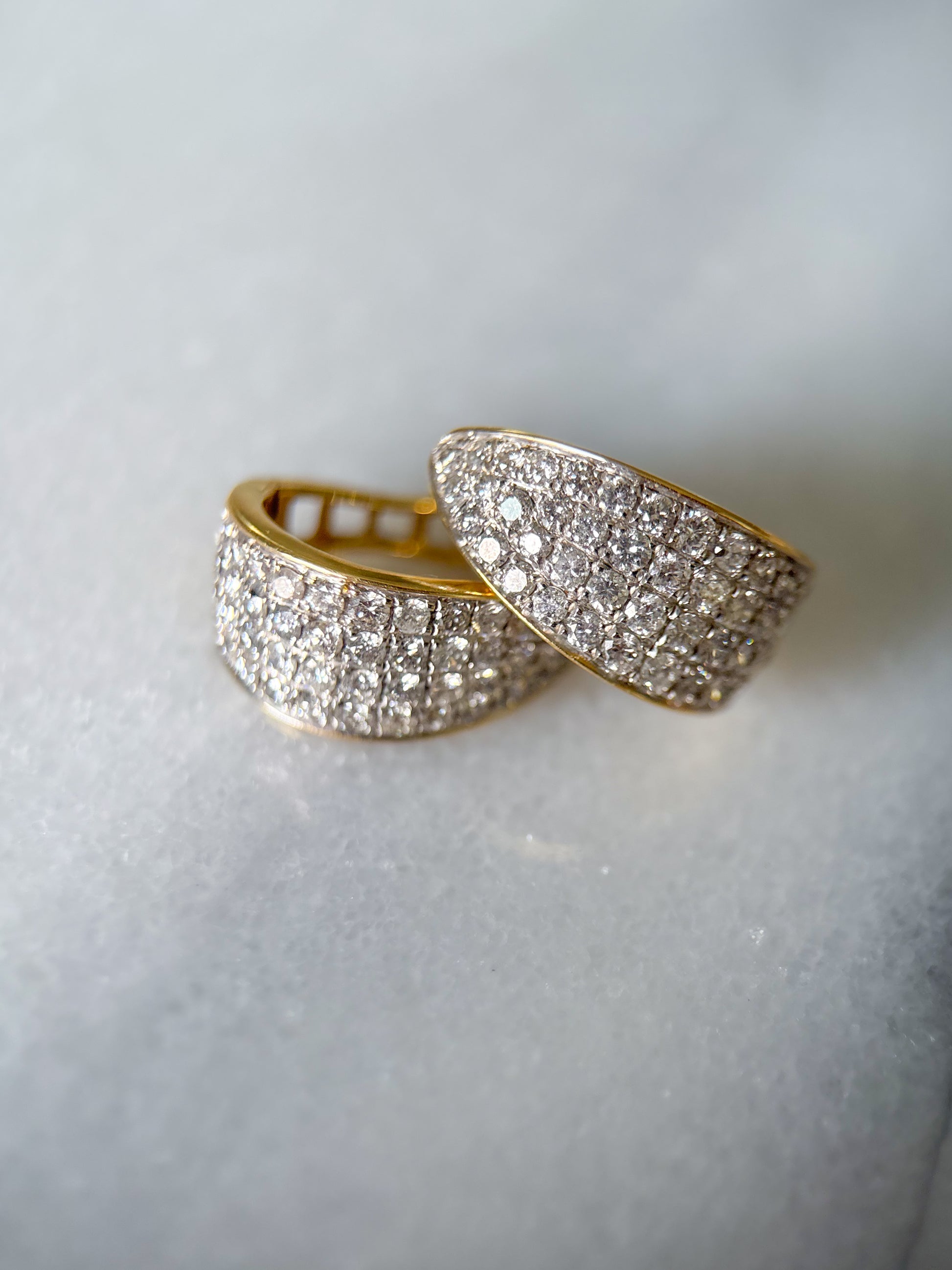I love these hoops! These beauties are not vintage, and are made of 14k yellow gold and natural diamonds.