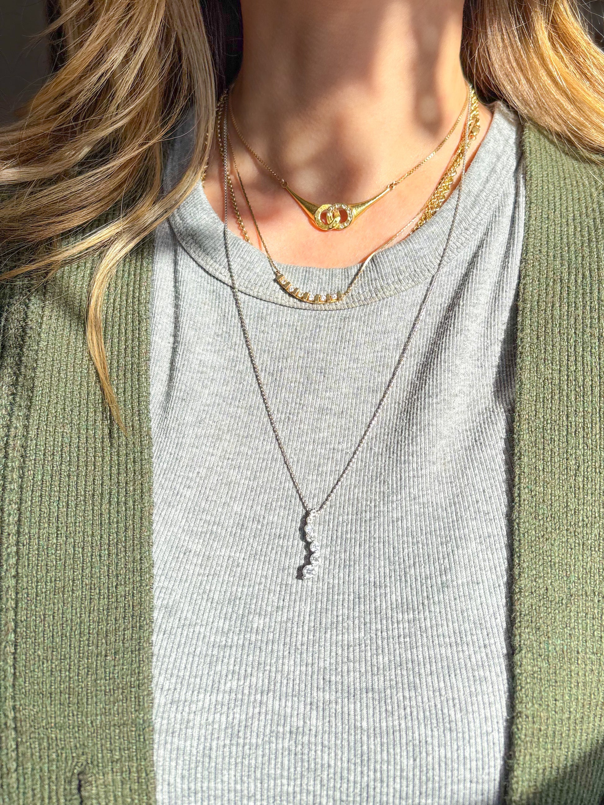 Vintage Natural Diamond 7 Stone Drop Pendant with 14k White Gold Attached 22 Inch Chain
