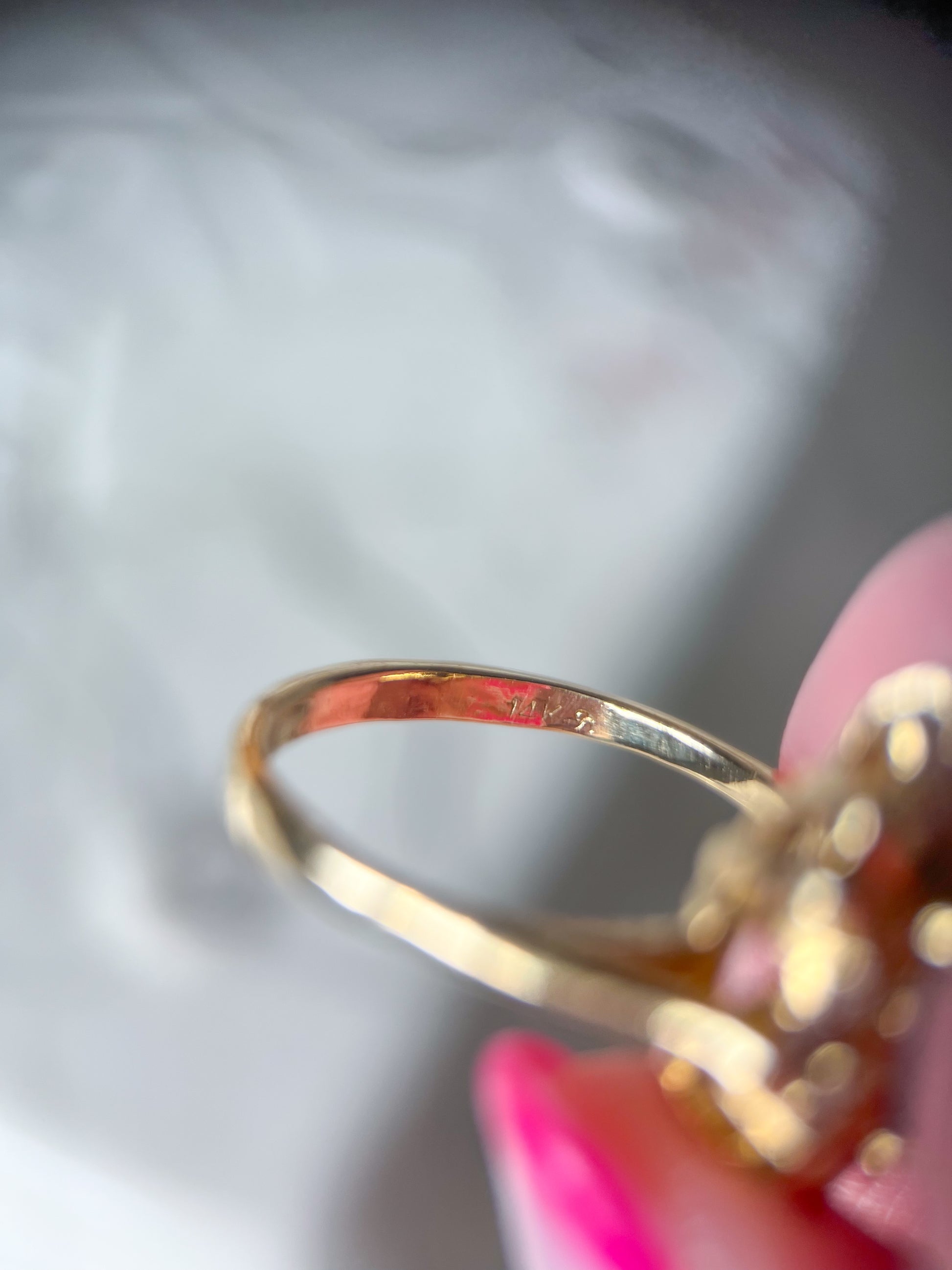Condition: All of our pieces are antique and/or vintage, which means they had previous owners and were worn and loved in their past life. Vintage and antique jewelry is often not perfect and will shows signs of wear. This can be imperfections like small nicks or scratches, or scuffs on the gold or the stones. This is part of what makes each piece special and unique. We do our best to photograph and describe each piece accurately and will point out any flaws we think are noteworthy. Please review all photos carefully and feel free to contact us to ask questions or request more photos prior to purchase.