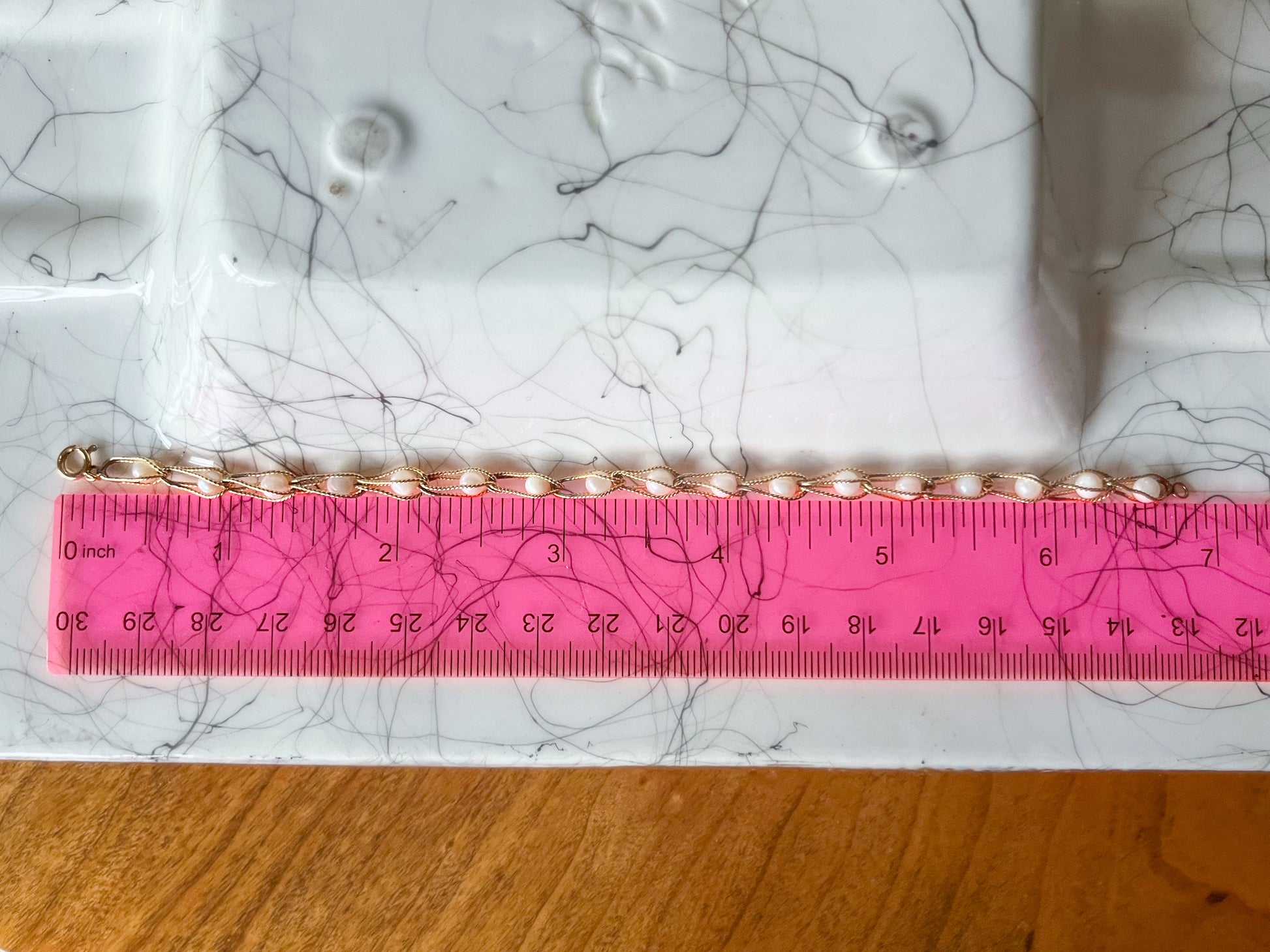 An awesome 14k yellow gold and pearl bracelet! This piece is open and airy but still substantials. LOVE IT.