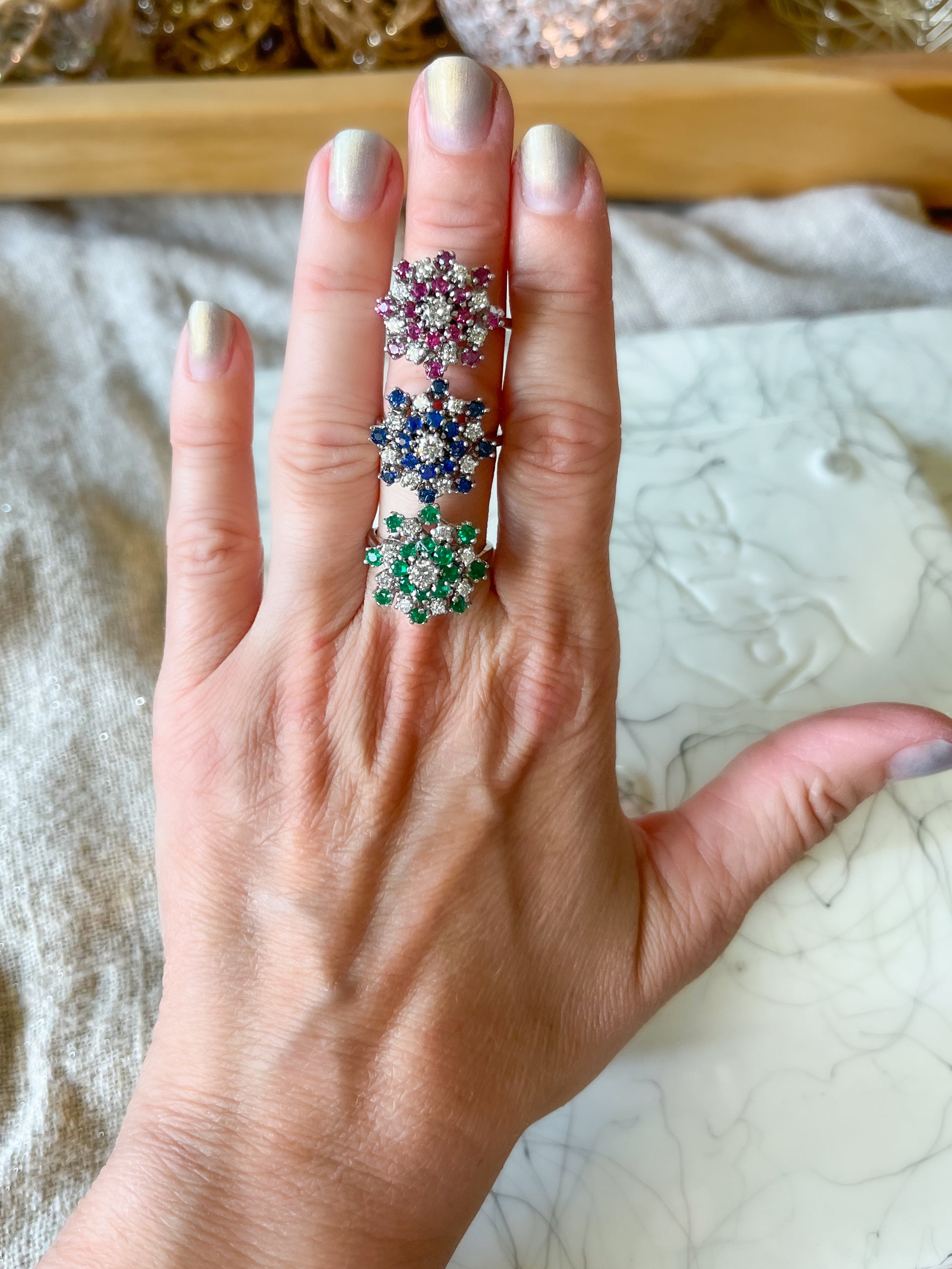 Insane, vintage, 14k white gold and diamonds, with natural rubies statement ring. All stones are natural. Ring is a size 6 1/2 and can be resized at your local jeweler.