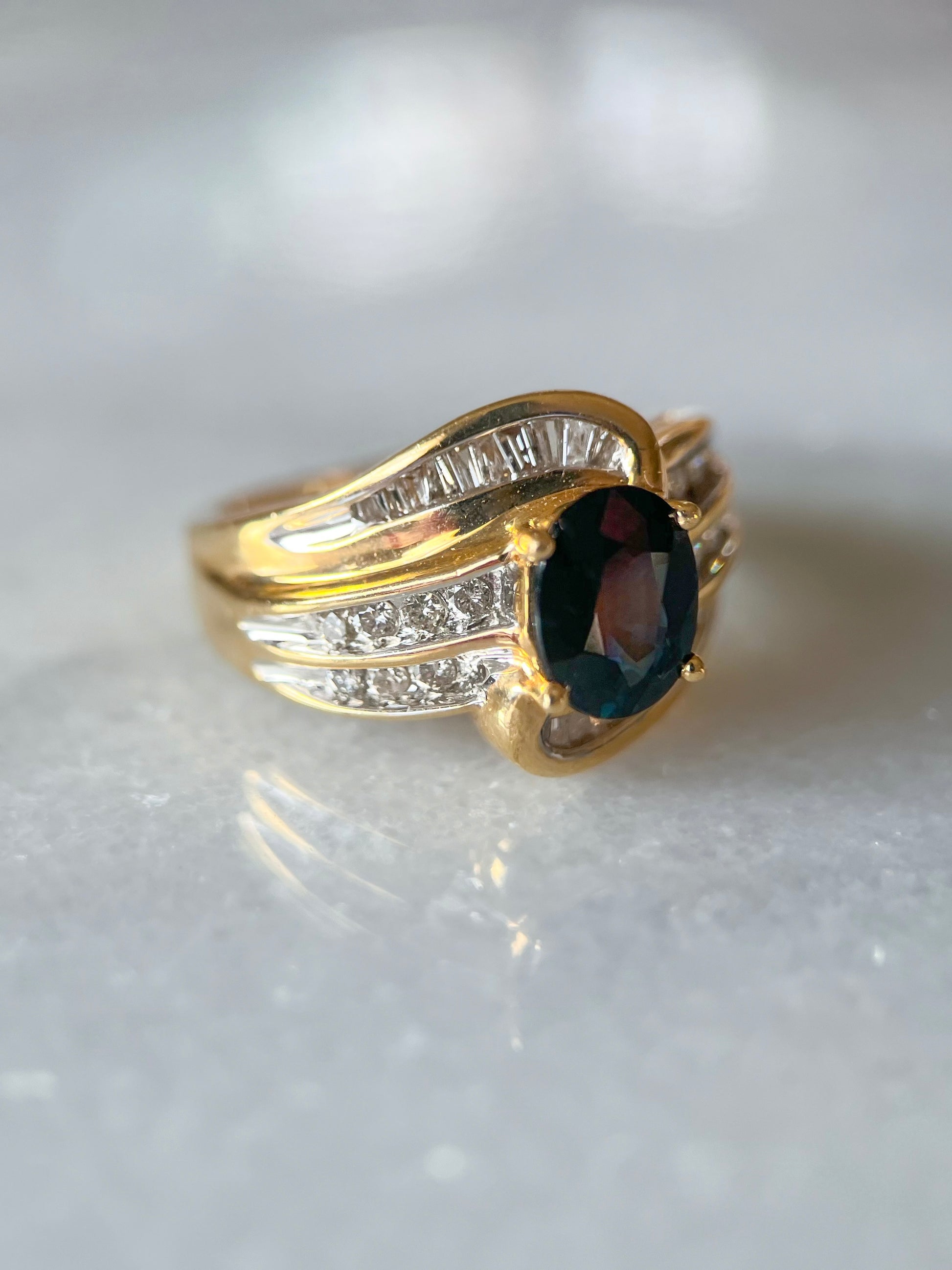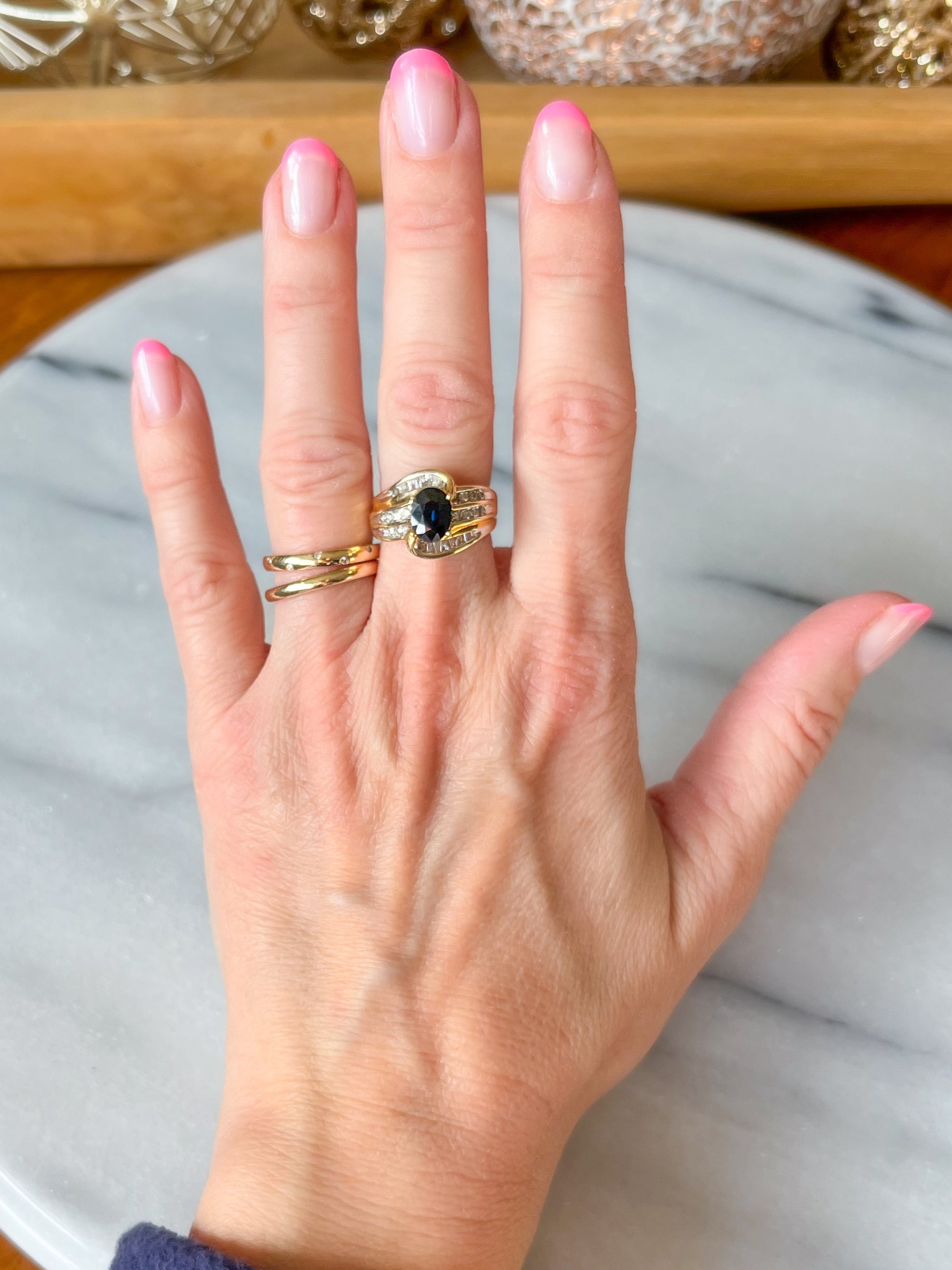 Vintage Natural Sapphire and Natural Diamond 14k Yellow Gold Rings