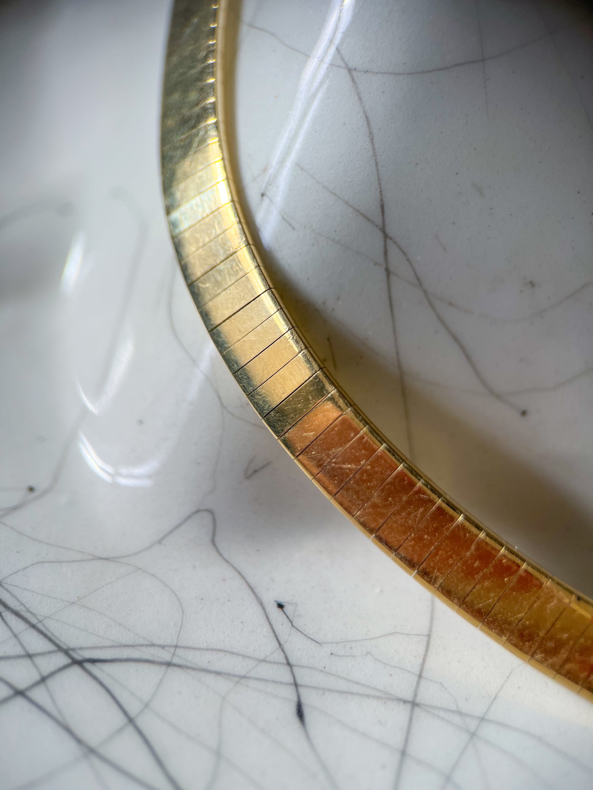 Stunning, vintage, omega slider chain made of 14k yellow gold. This beauty weighs over 37 grams and is silky smooth - perfect alone or as a slider chain.