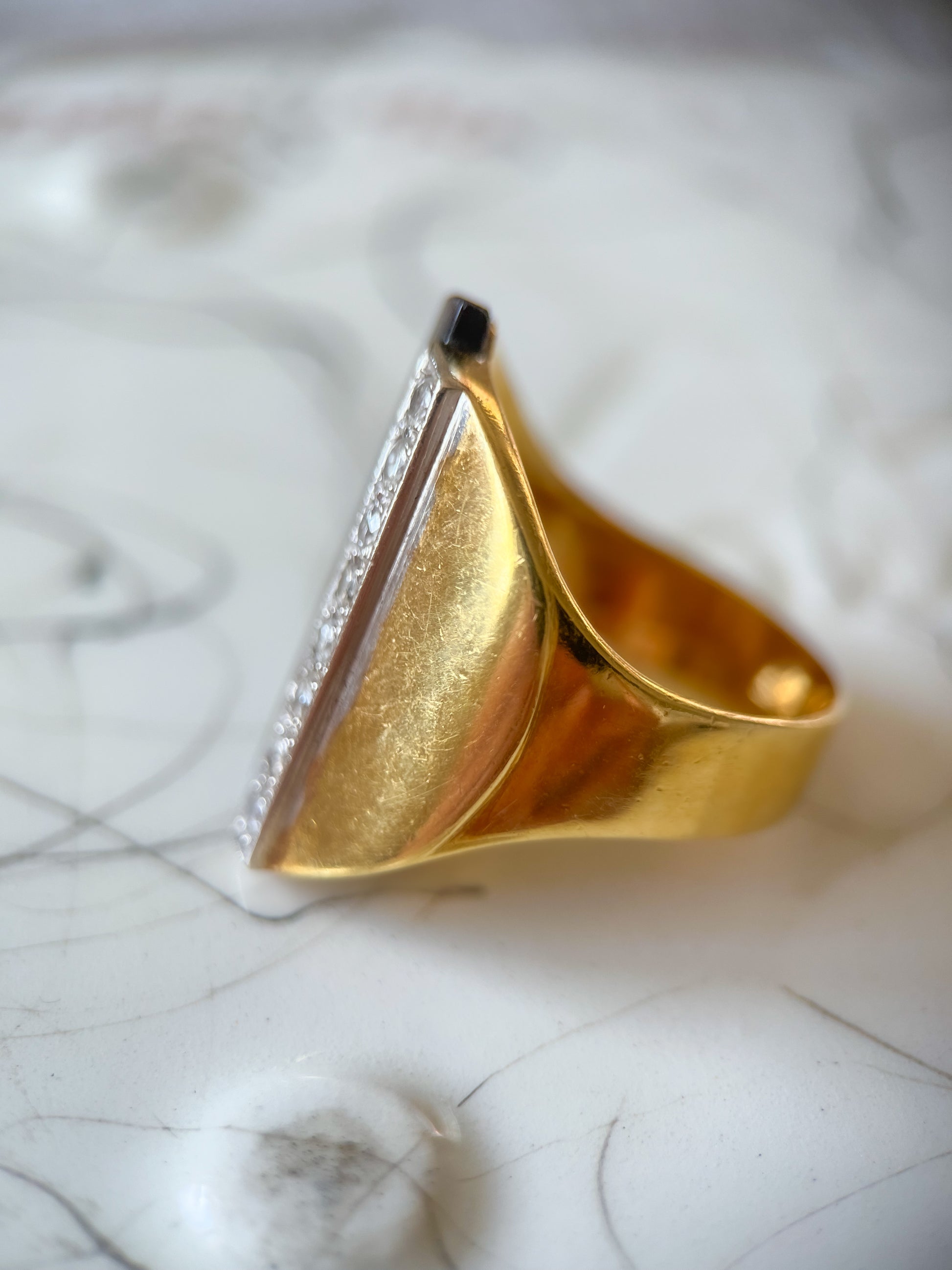 Vintage Onyx and Natural Diamond 18k White and Yellow Gold Ring, circa 1960s