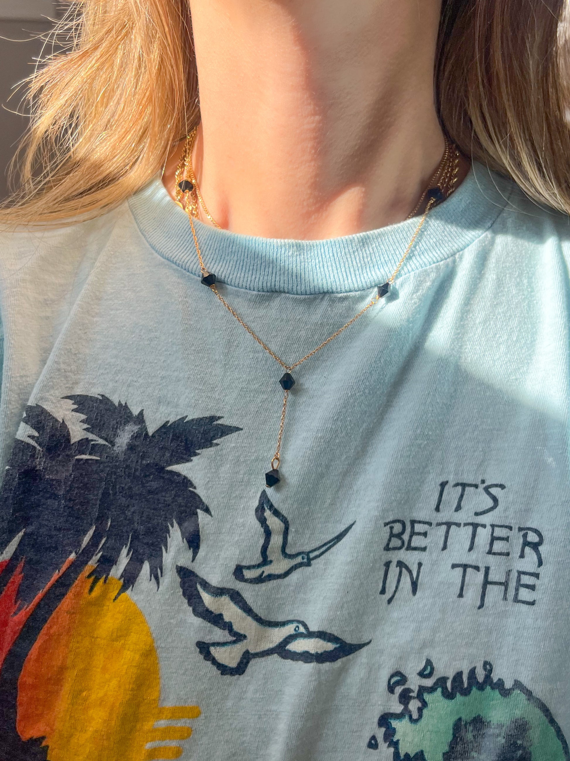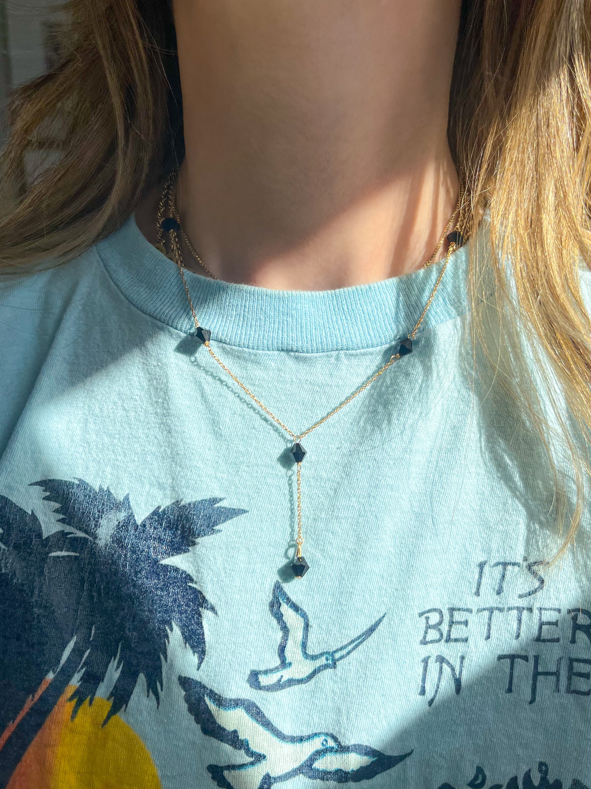 Love this 14k yellow gold and onyx chain! This is vintage and weighs over 2 grams.