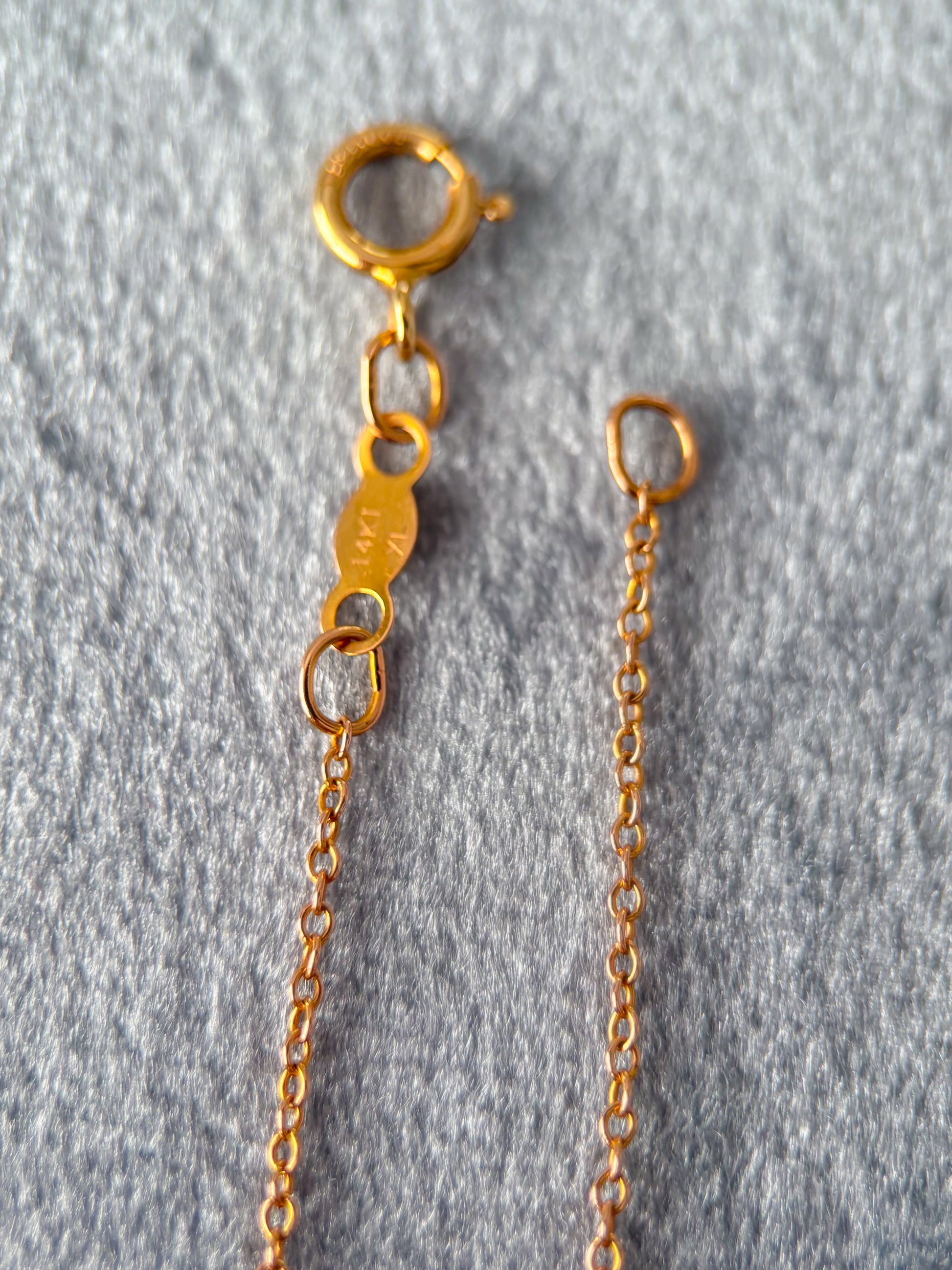 Very sweet, vintage, 14k yellow gold opal charm with an attached chain. Piece is 16 inches total. LOVE THIS!
