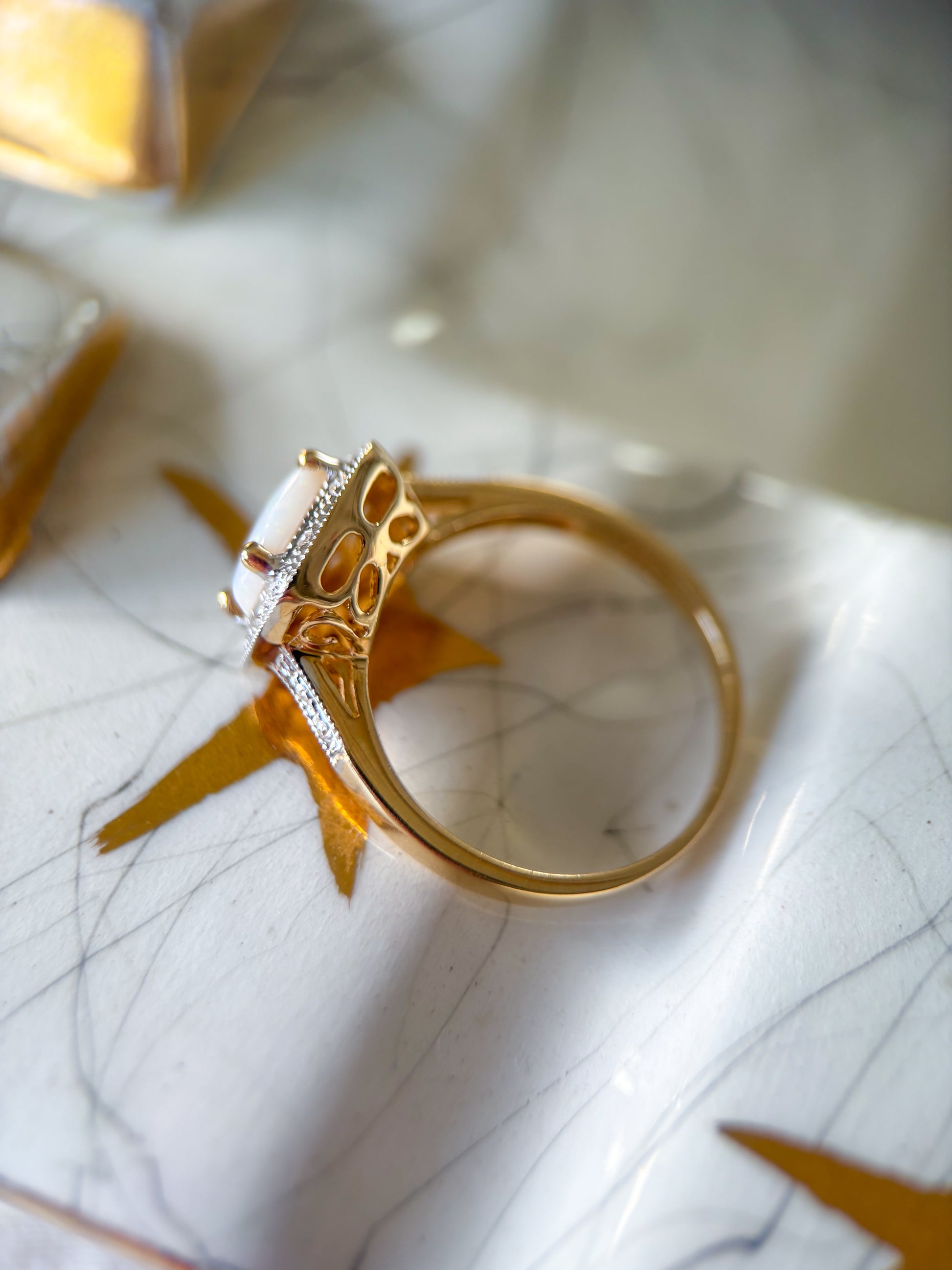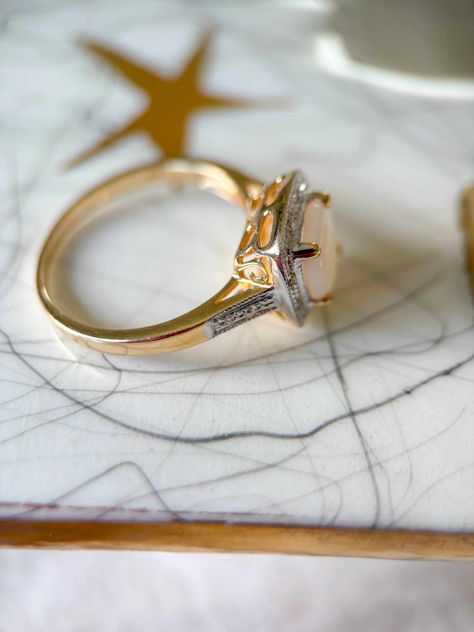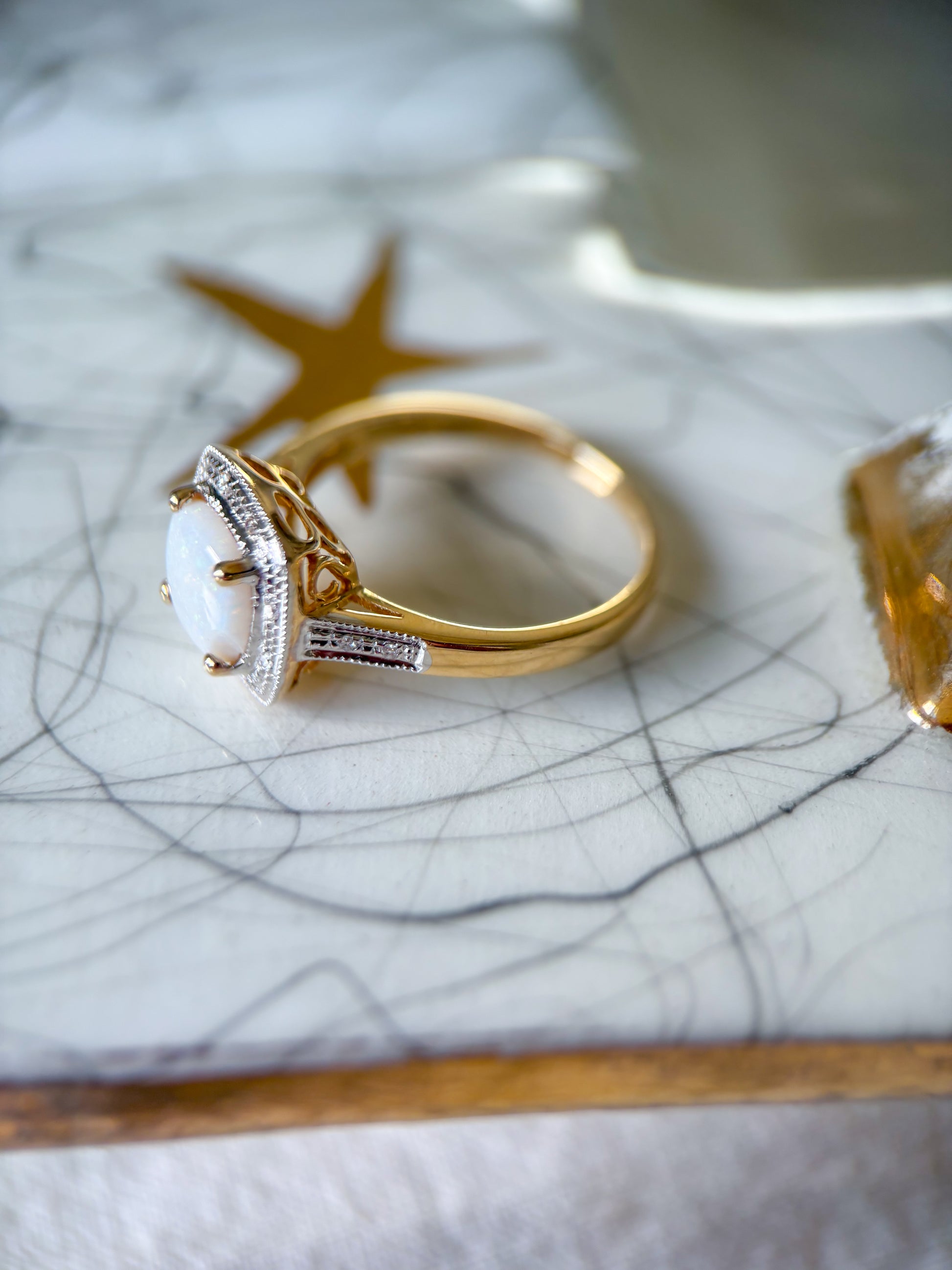 Vintage Opal and Natural Diamonds 14k Yellow Gold Ring