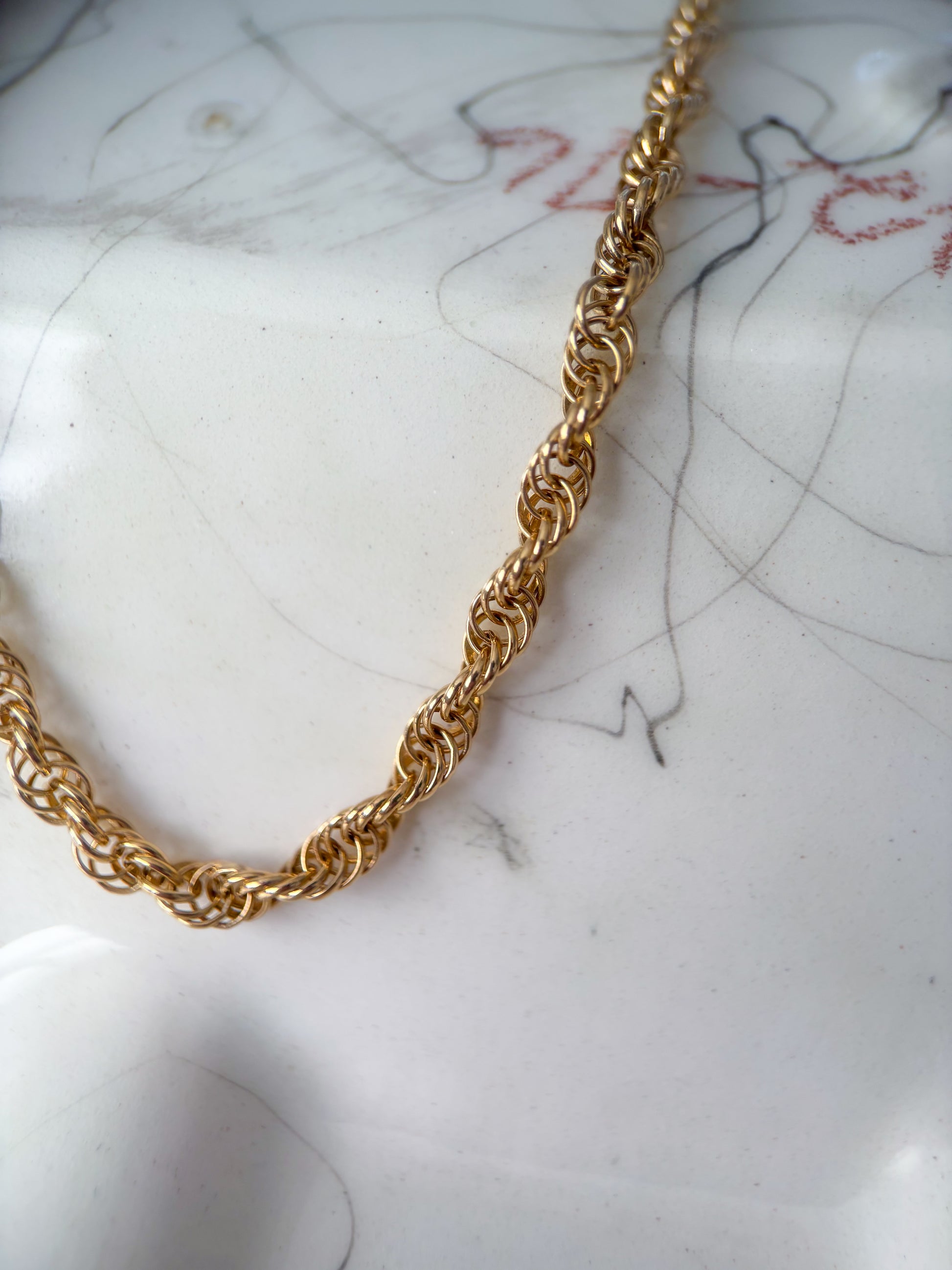 Very cool, vintage, 14k yellow gold open rope chain. This chain is 25 inches long and over 12 grams.