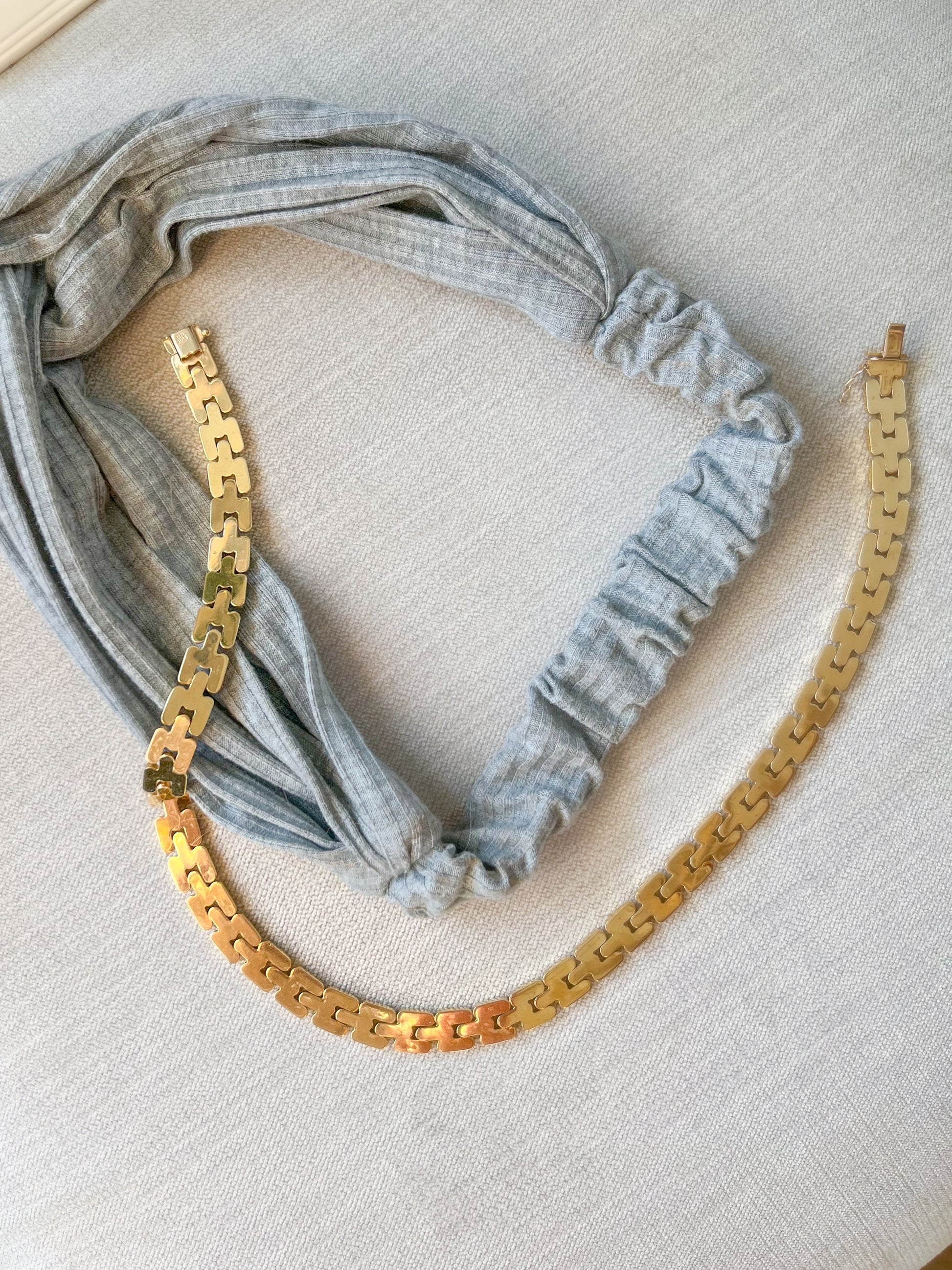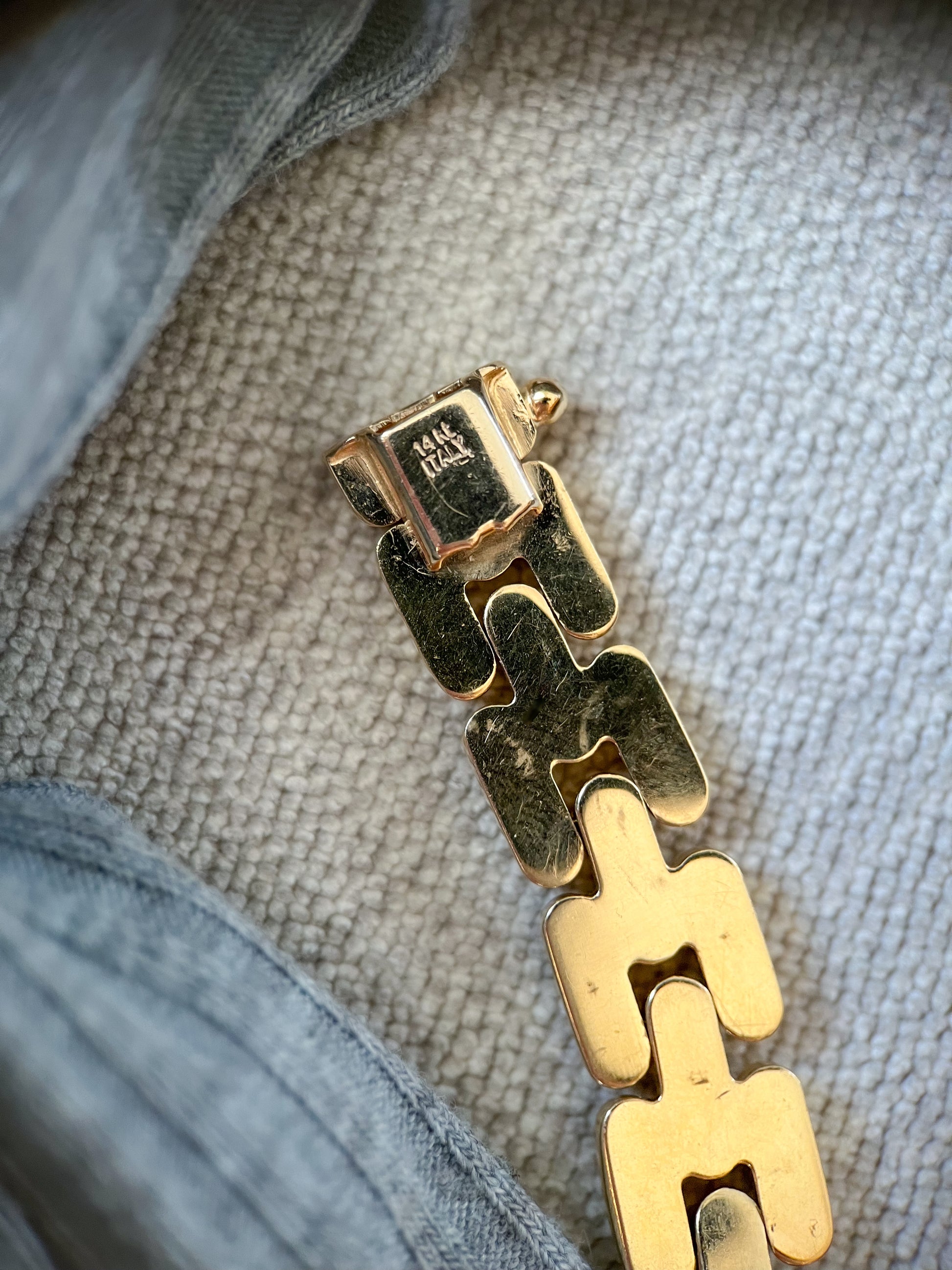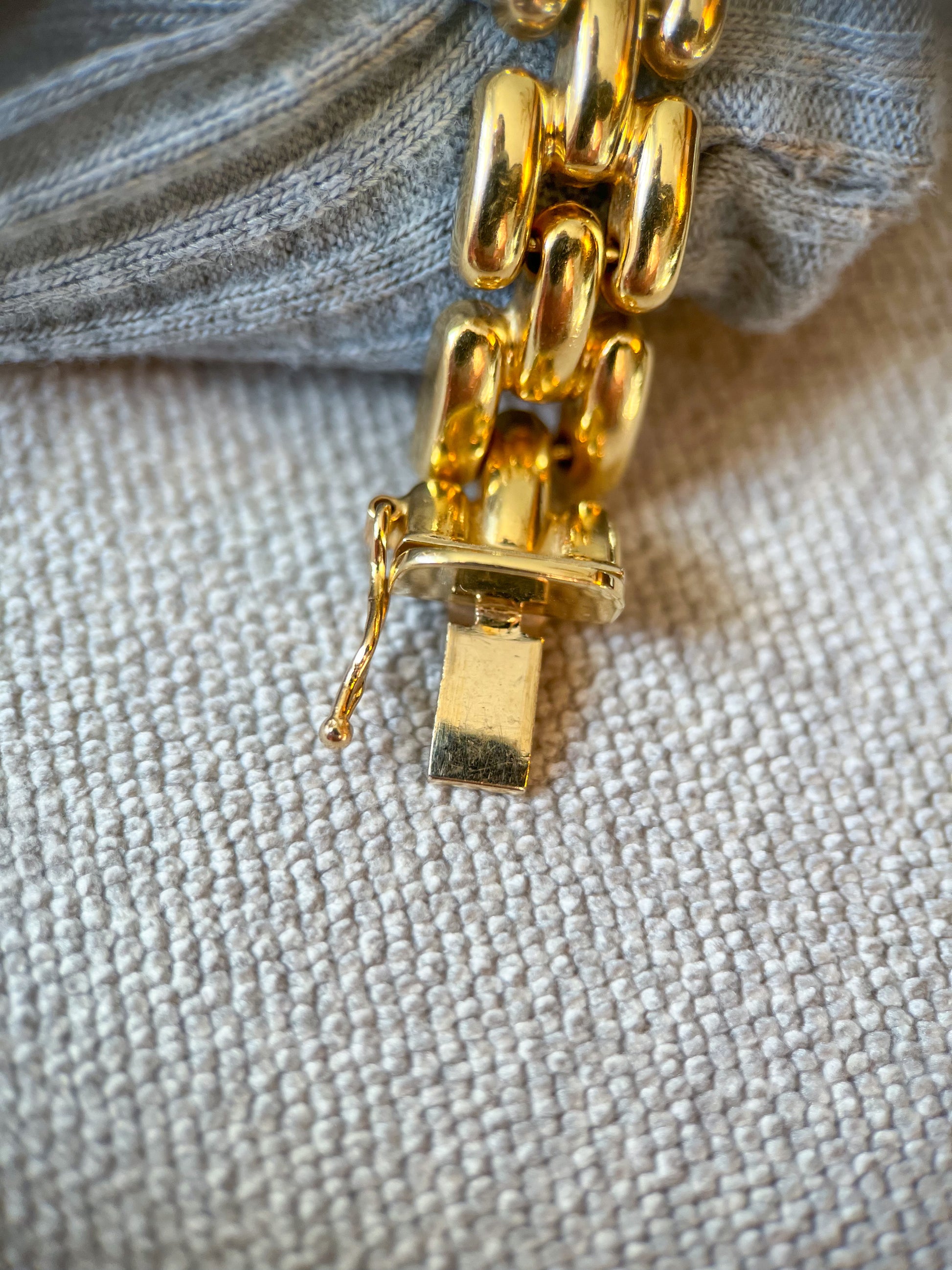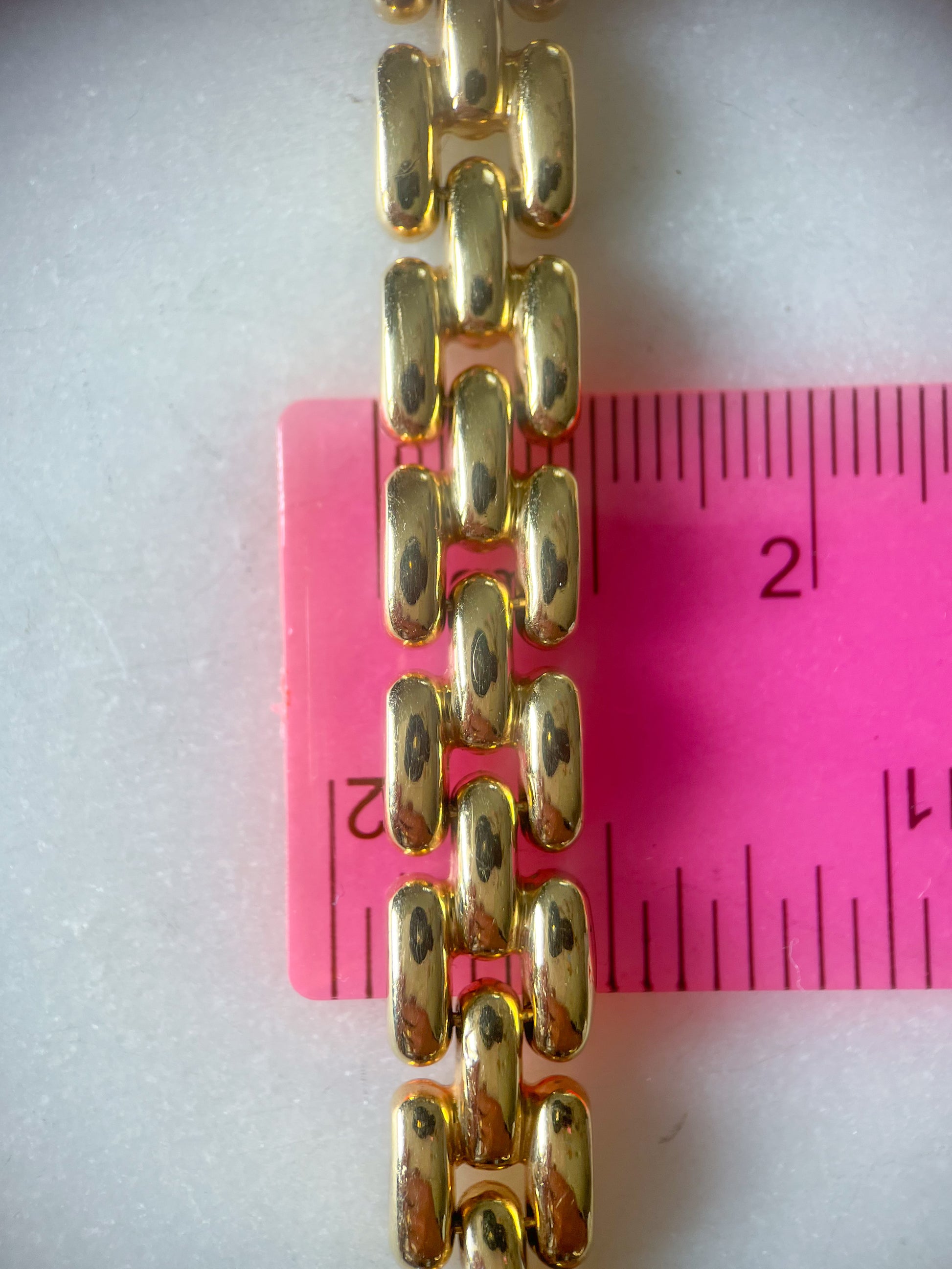 This vintage, 14k yellow gold, panther chain necklace is the perfect accessory. You can literally be wearing a white tee and sweats, but have this beauty on, and you are 'dressed'. This necklace weighs over 34 grams and is marked 14k Italy. The necklace is 16.25 inches and sits on the neck so smoothly. It closes with an open box clasp with one safety.
