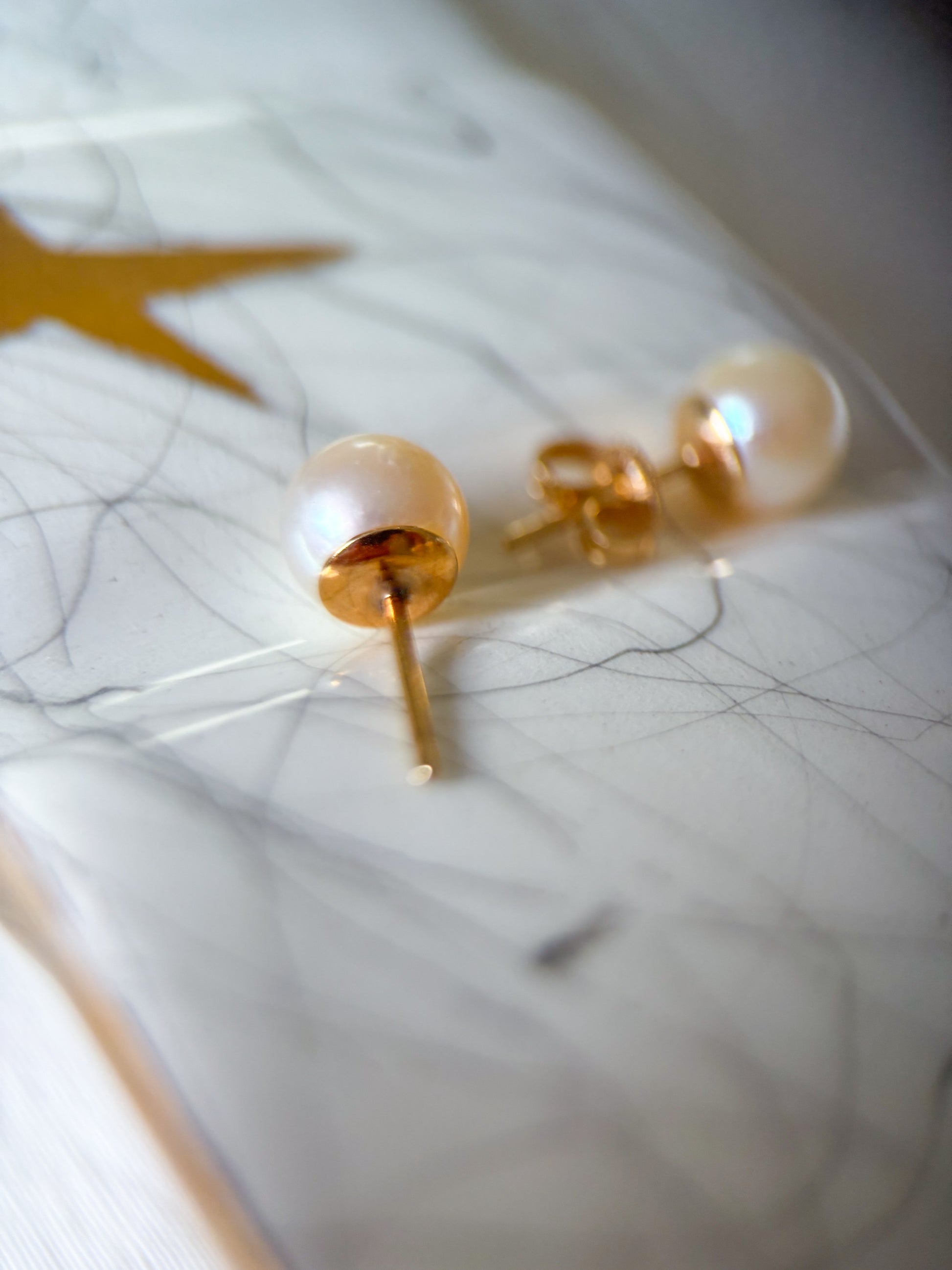 Vintage, 14k yellow gold, natural pearl studs! Perfect, every day pearl earrings.