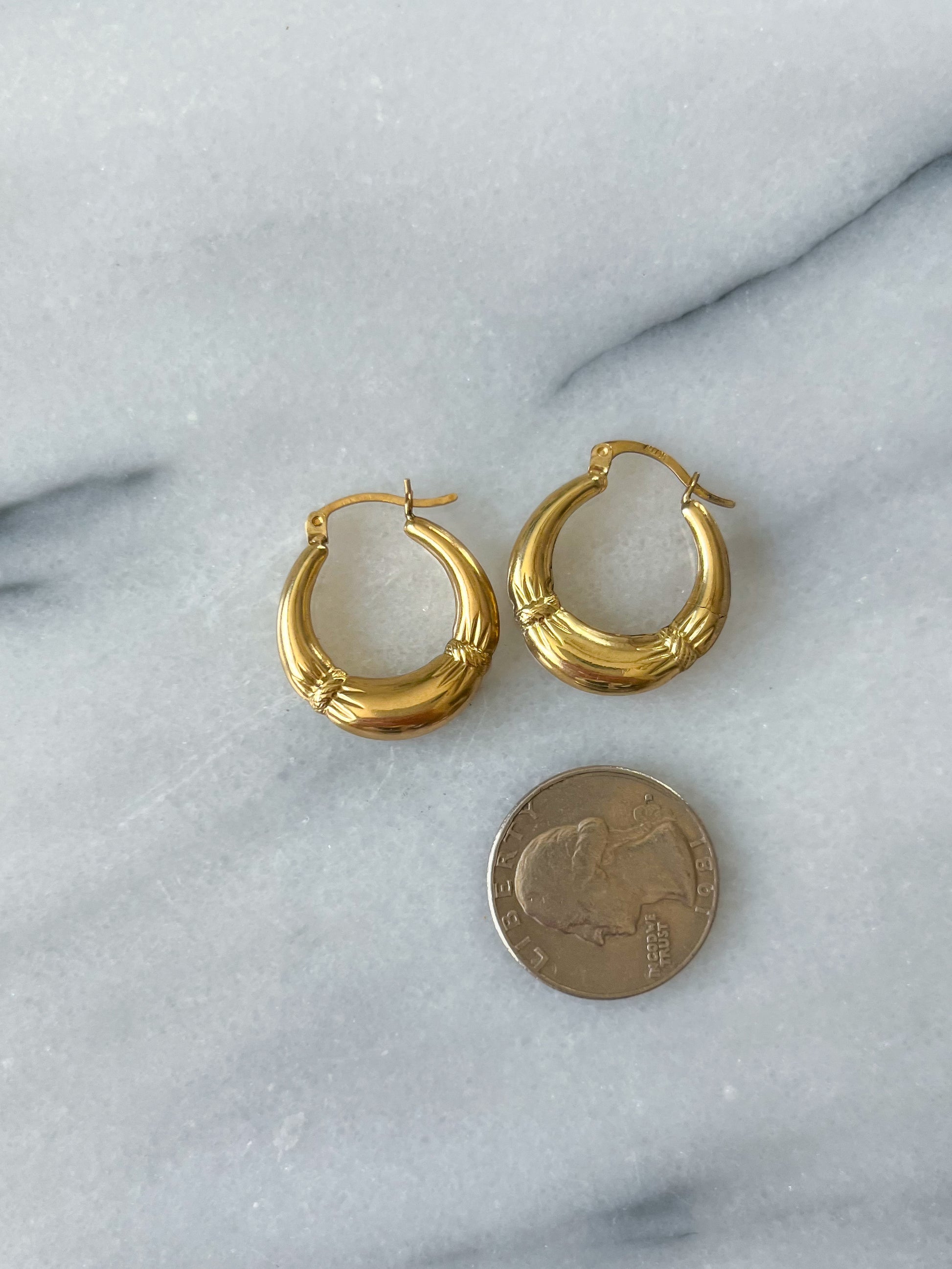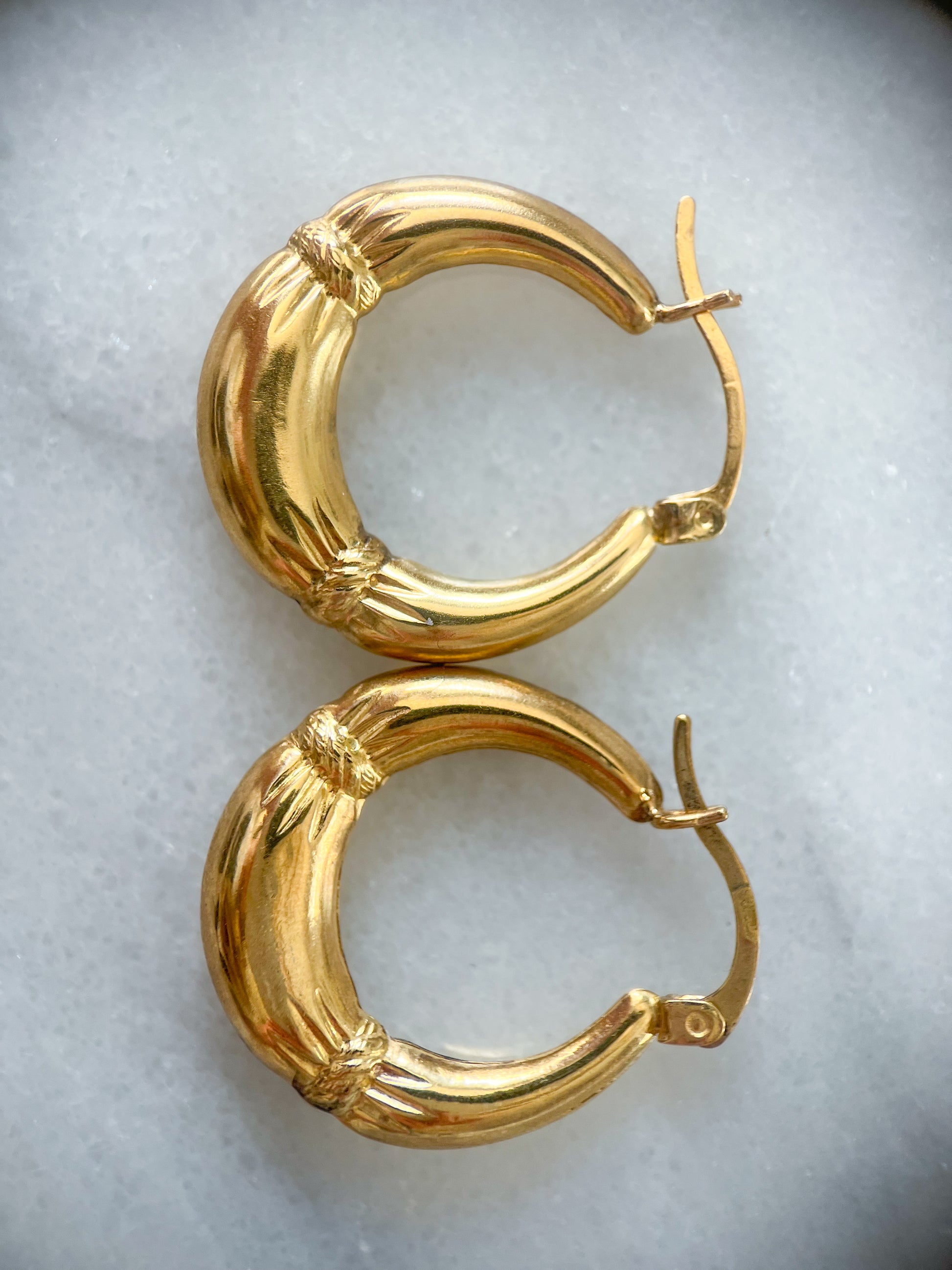 Vintage Puffy 10k Yellow Gold Hoop Earrings