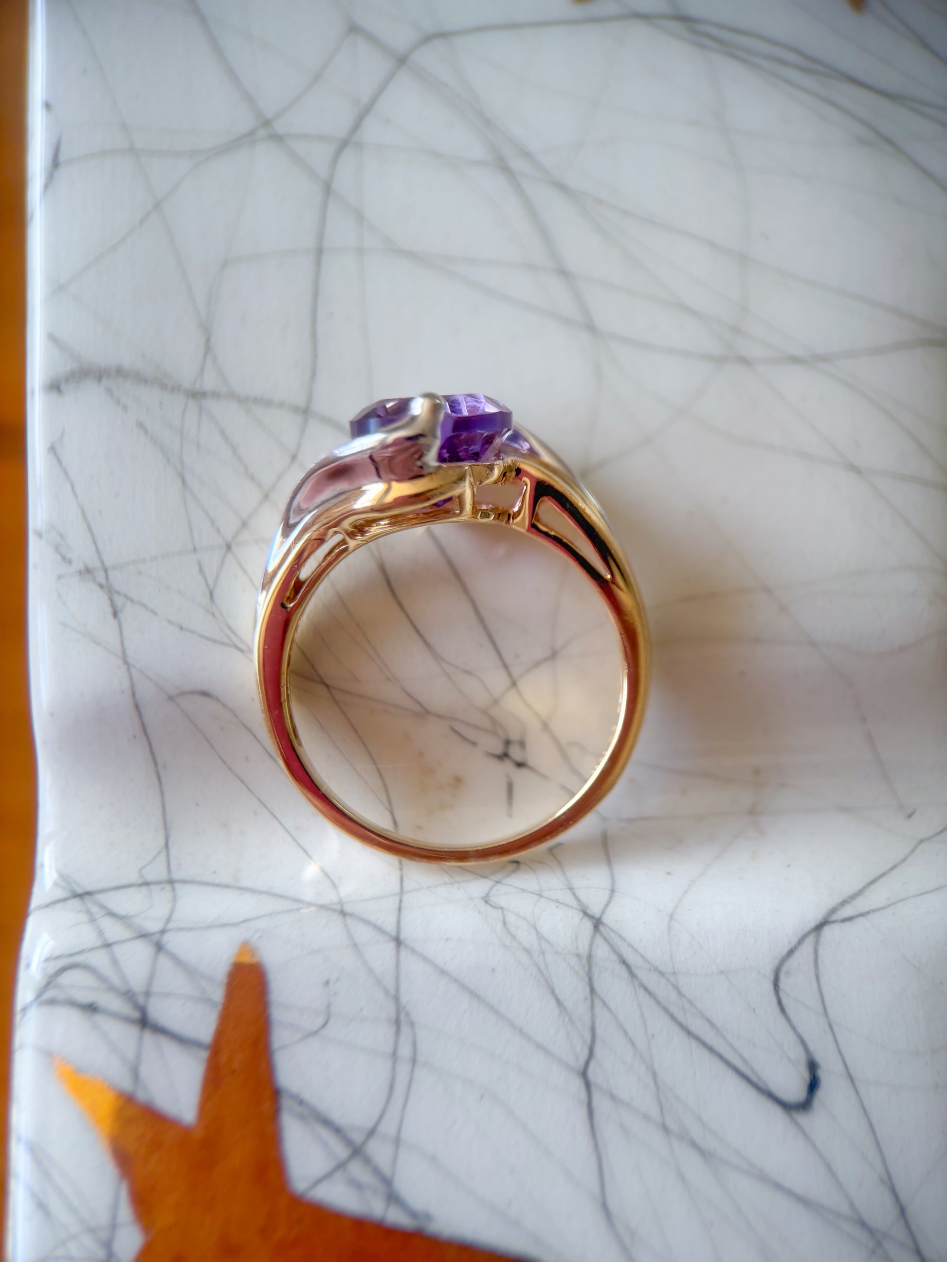Vintage Semi Precious Amethyst 10k Yellow and White Gold Ring