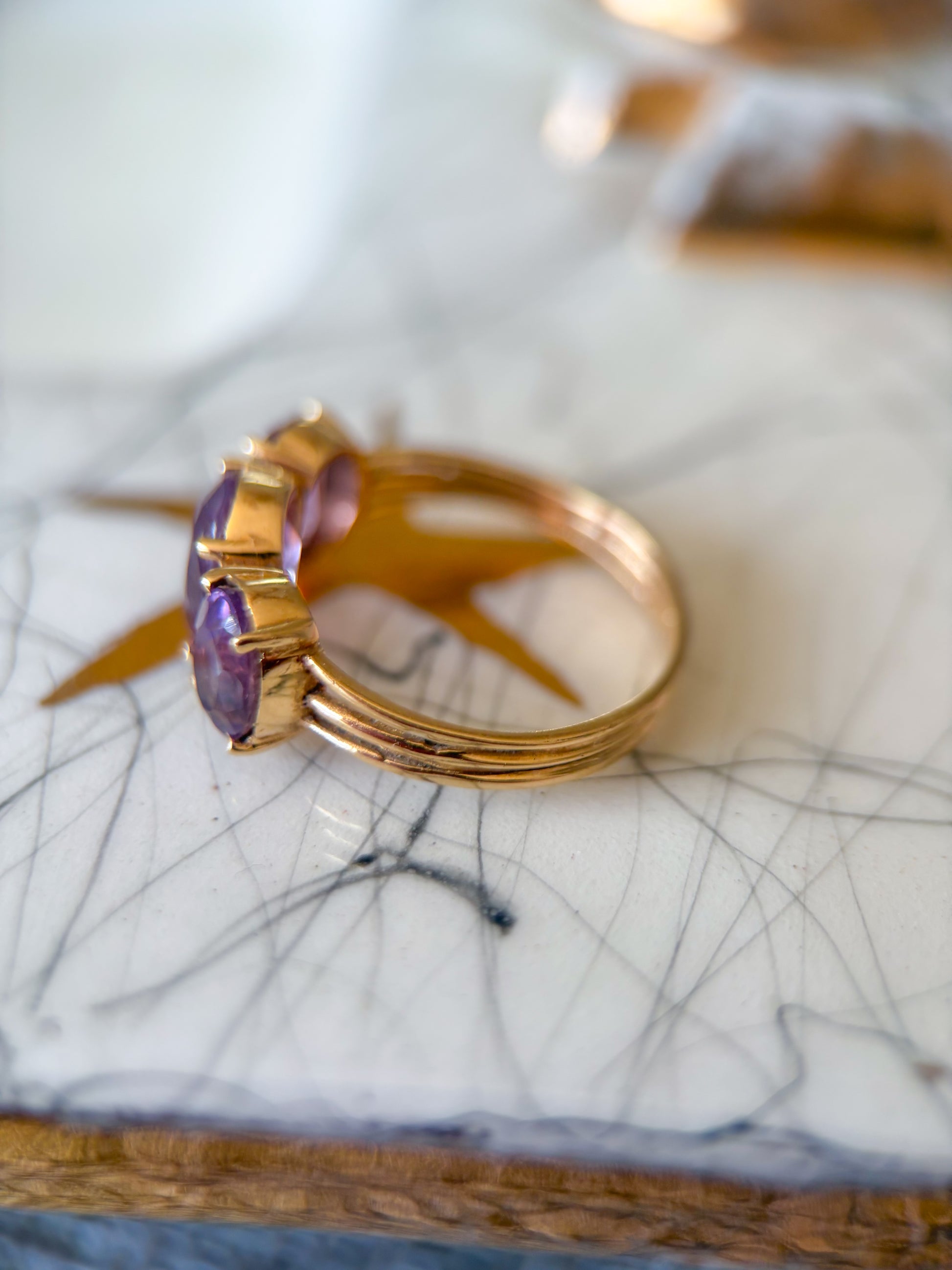 Vintage Amethyst 3 Stone 14k Yellow Gold Ring