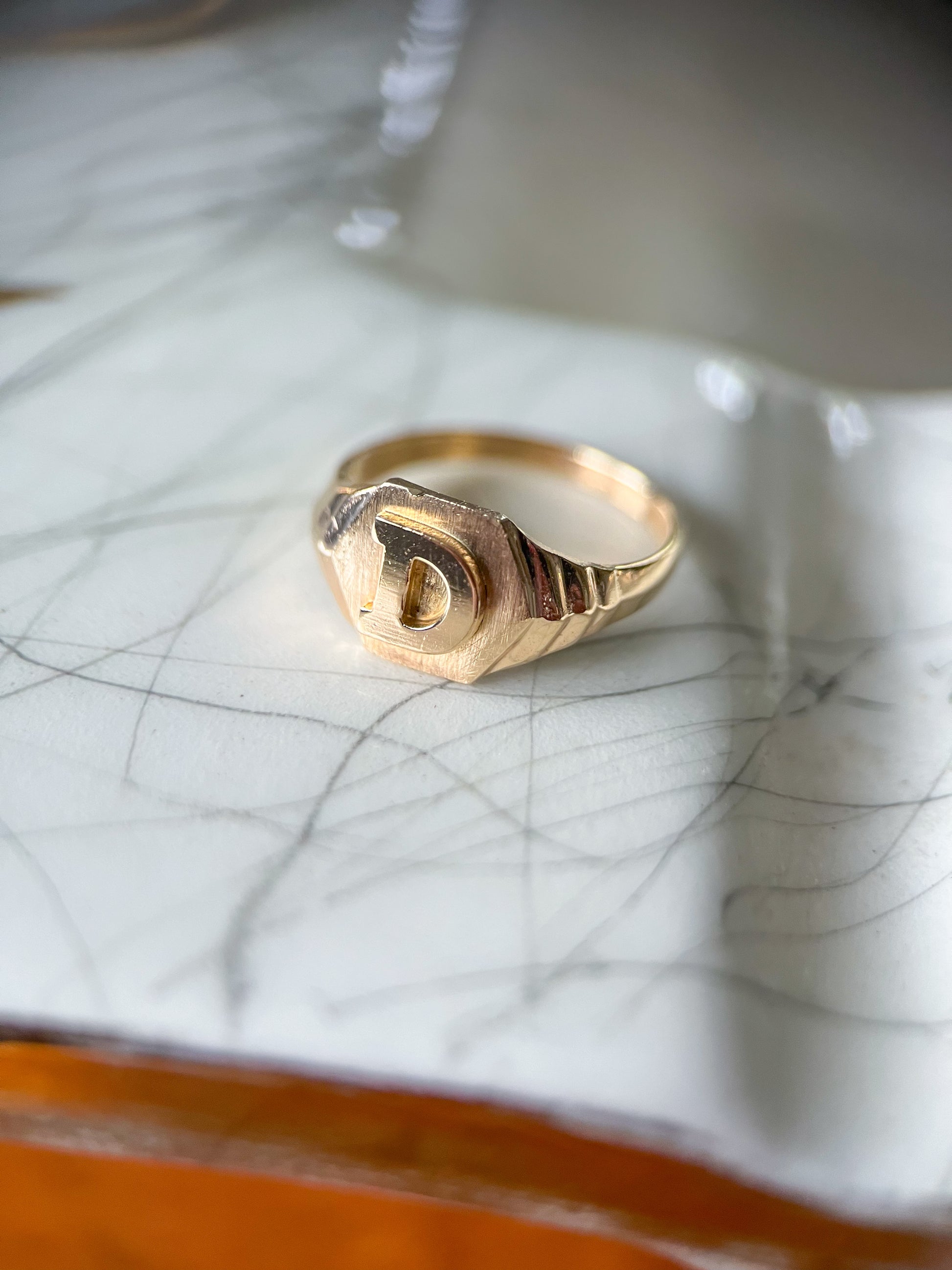 Vintage Signet Pinky Ring Initial "D" 14k Yellow Gold Ring