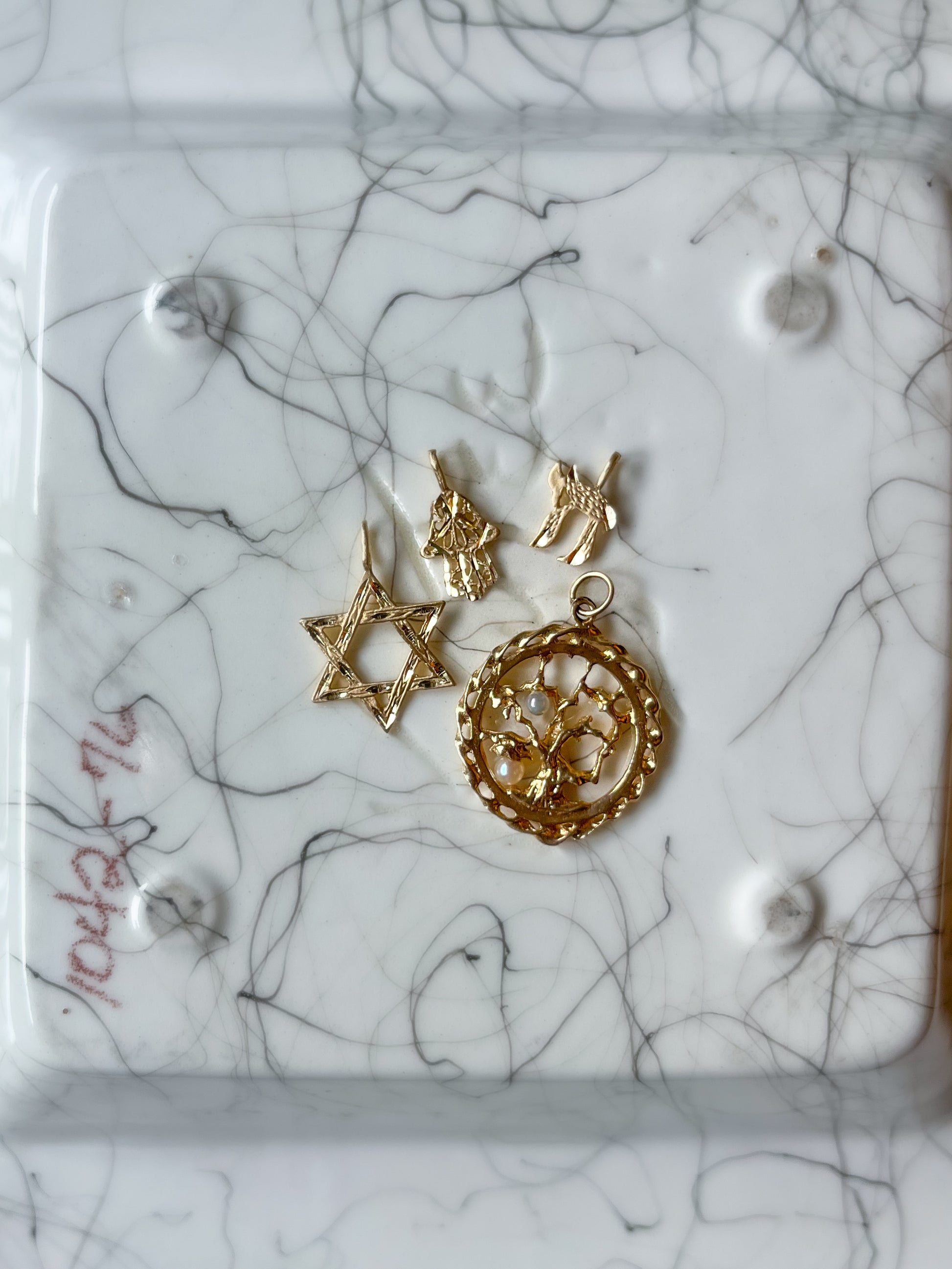 Vintage, 14k yellow gold etched chai. Chain not included.