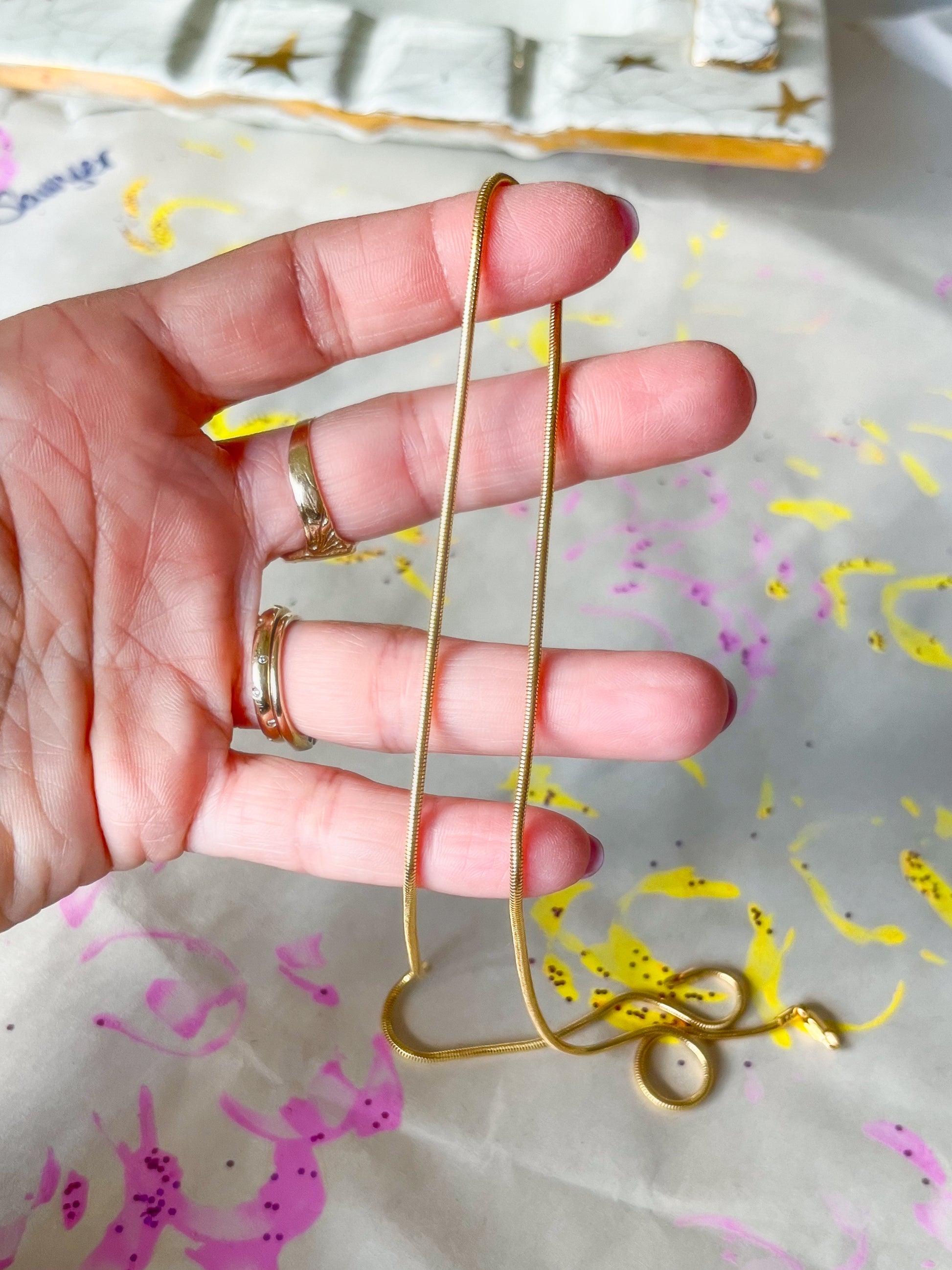 Silky, vintage, 14k yellow gold 20 inch snake chain! This chain is 20 inches long and weighs 8.83 grams.