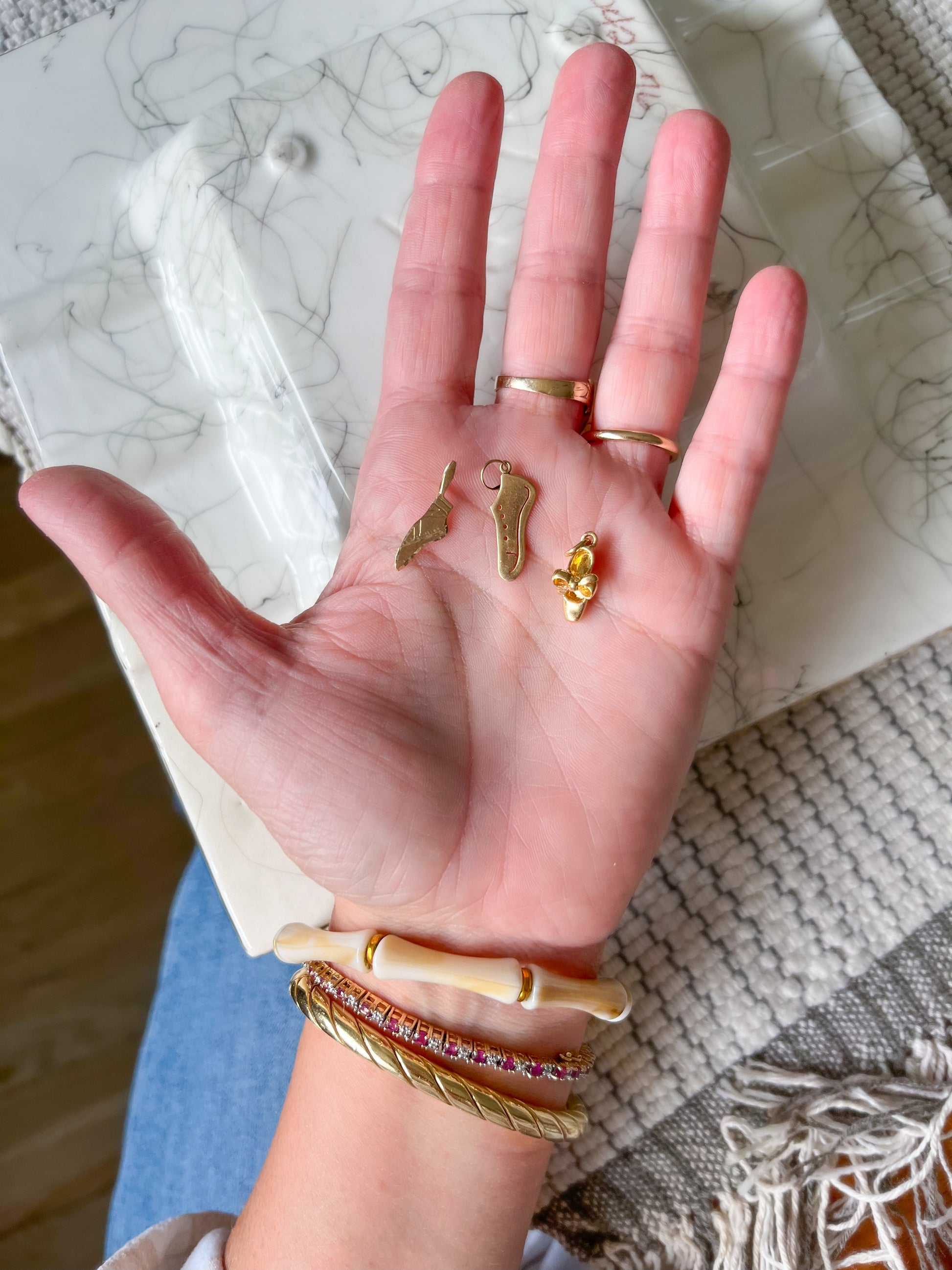 A few awesome shoe charms! All made of 14k yellow gold and are vintage charms. Chains not included.