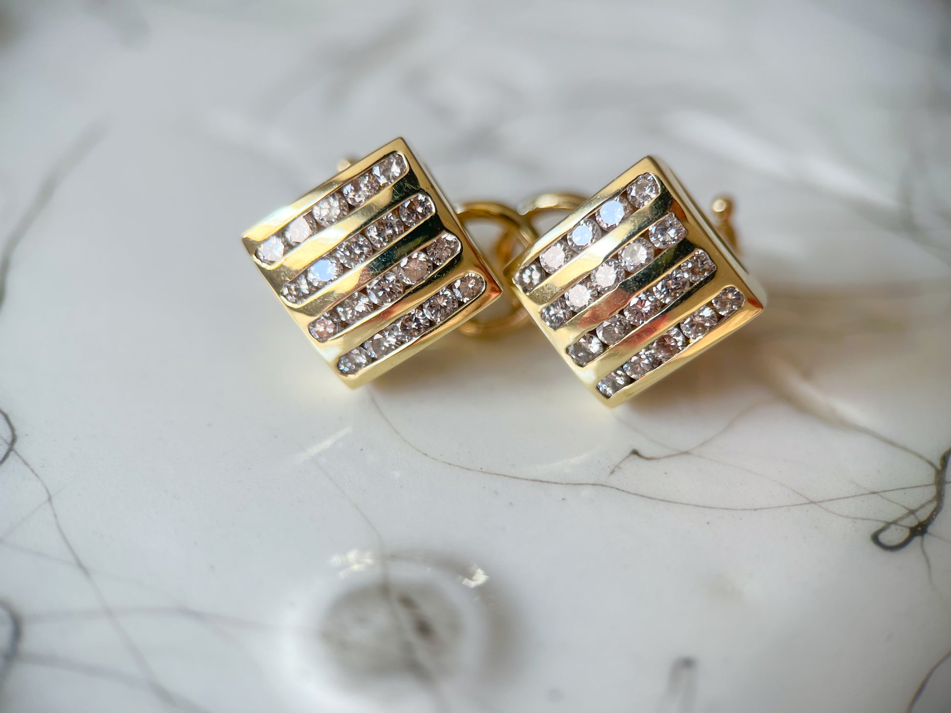 Insane, 14k yellow gold and natural round diamond chunky, square earrings. Just completely obsessed with these!