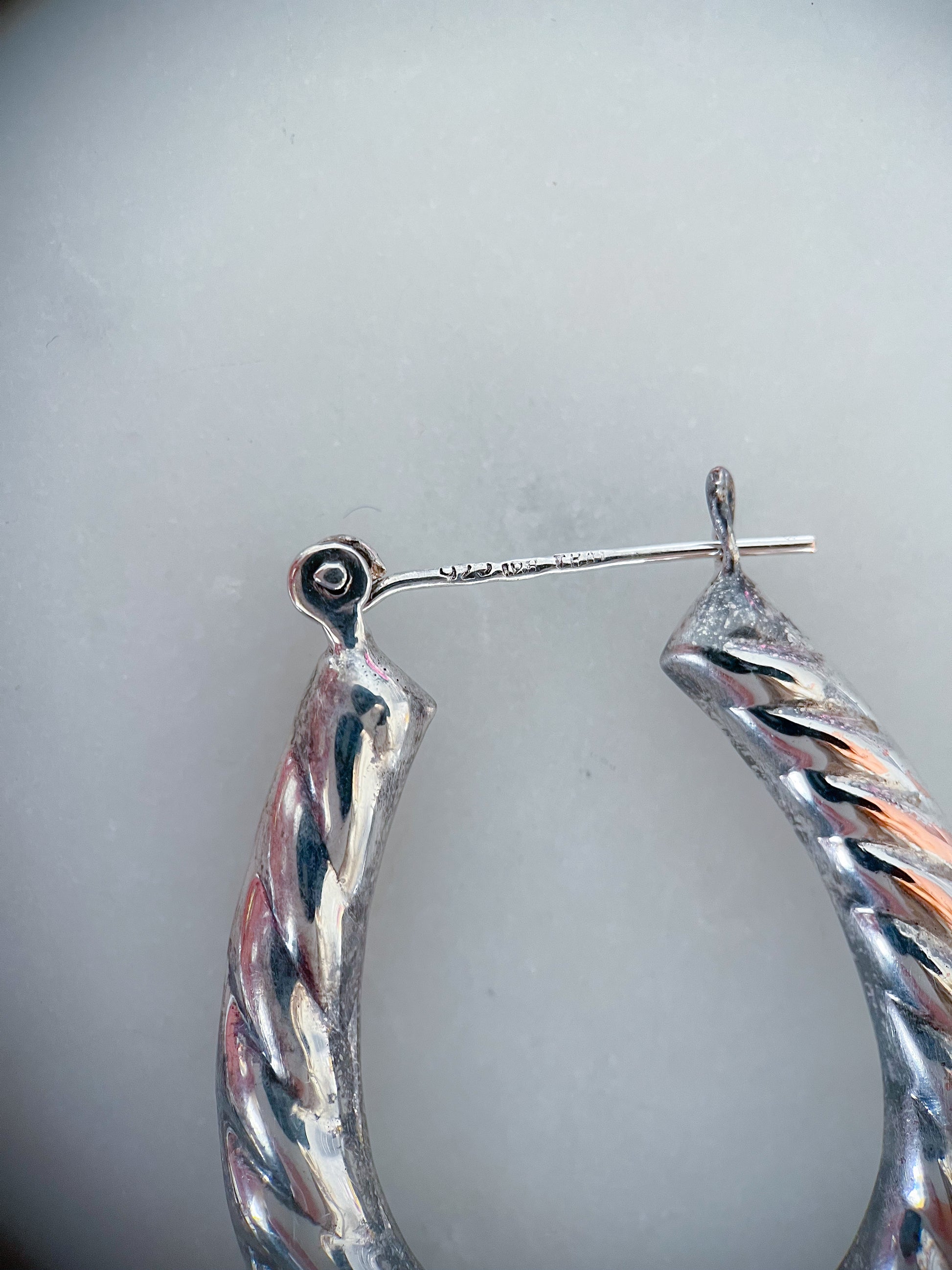 Vintage, sterling silver twist hoops - large and stunning! These are sterling silver earrings from the 70s!