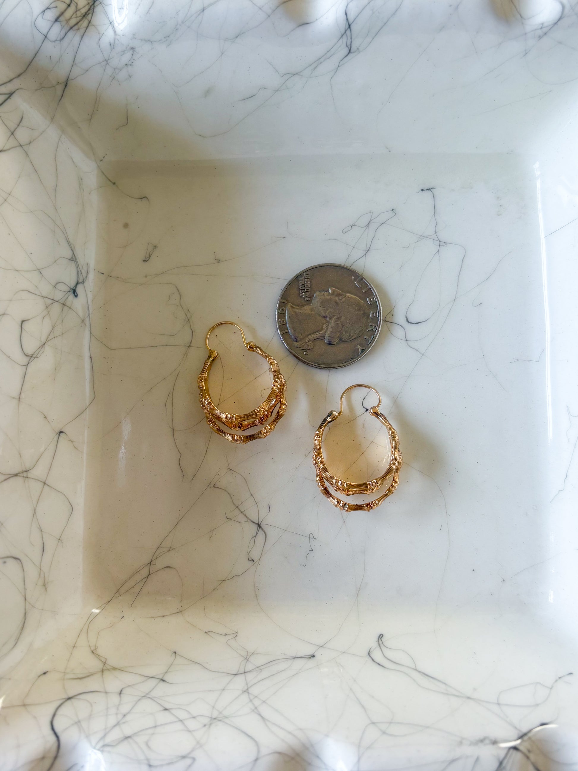 Vintage Three Hoop Bamboo Hoop 14k Yellow Gold Earrings