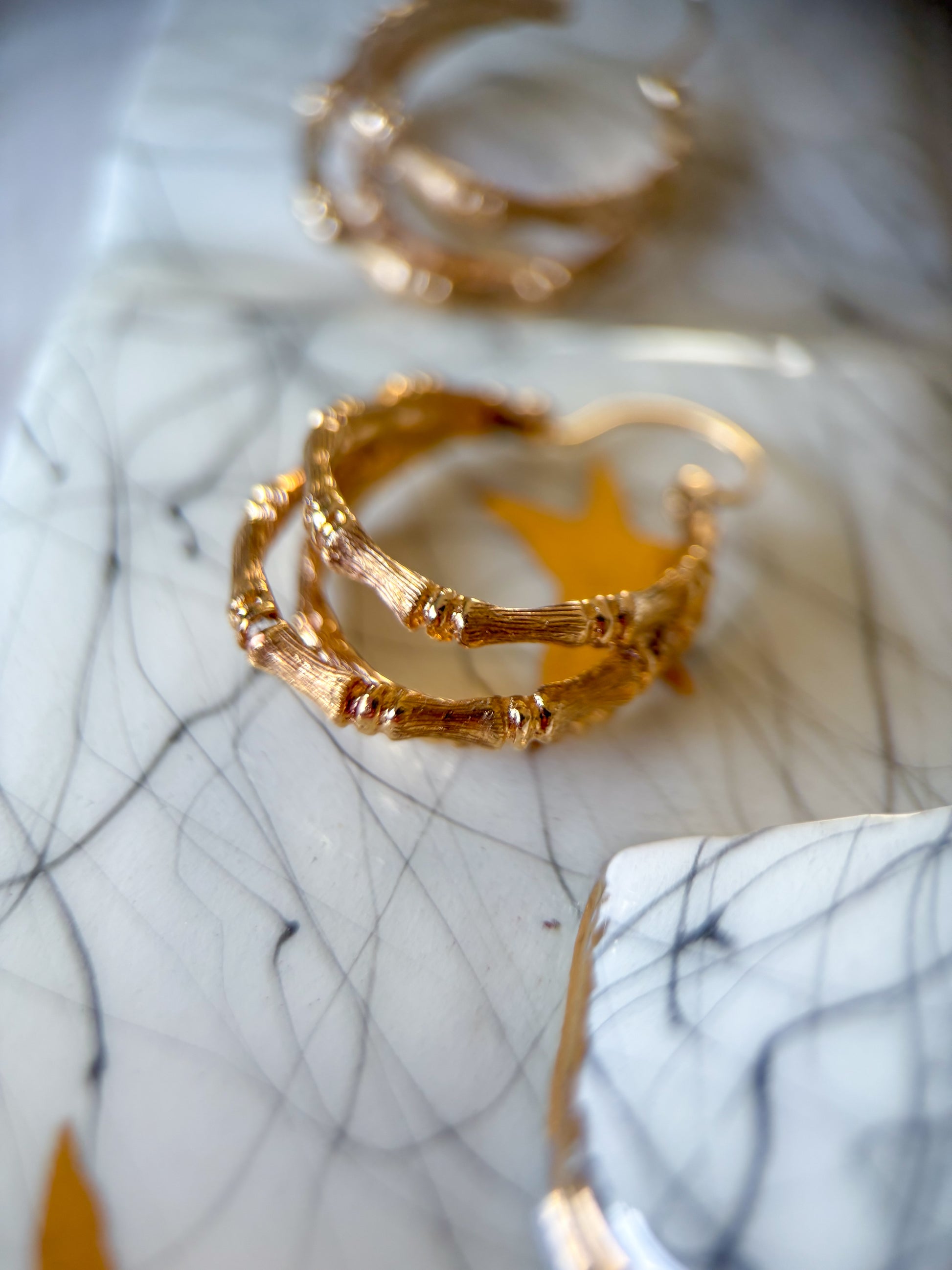 Obsessed with this pair of 14k yellow gold 3 hoop bamboo hoops!