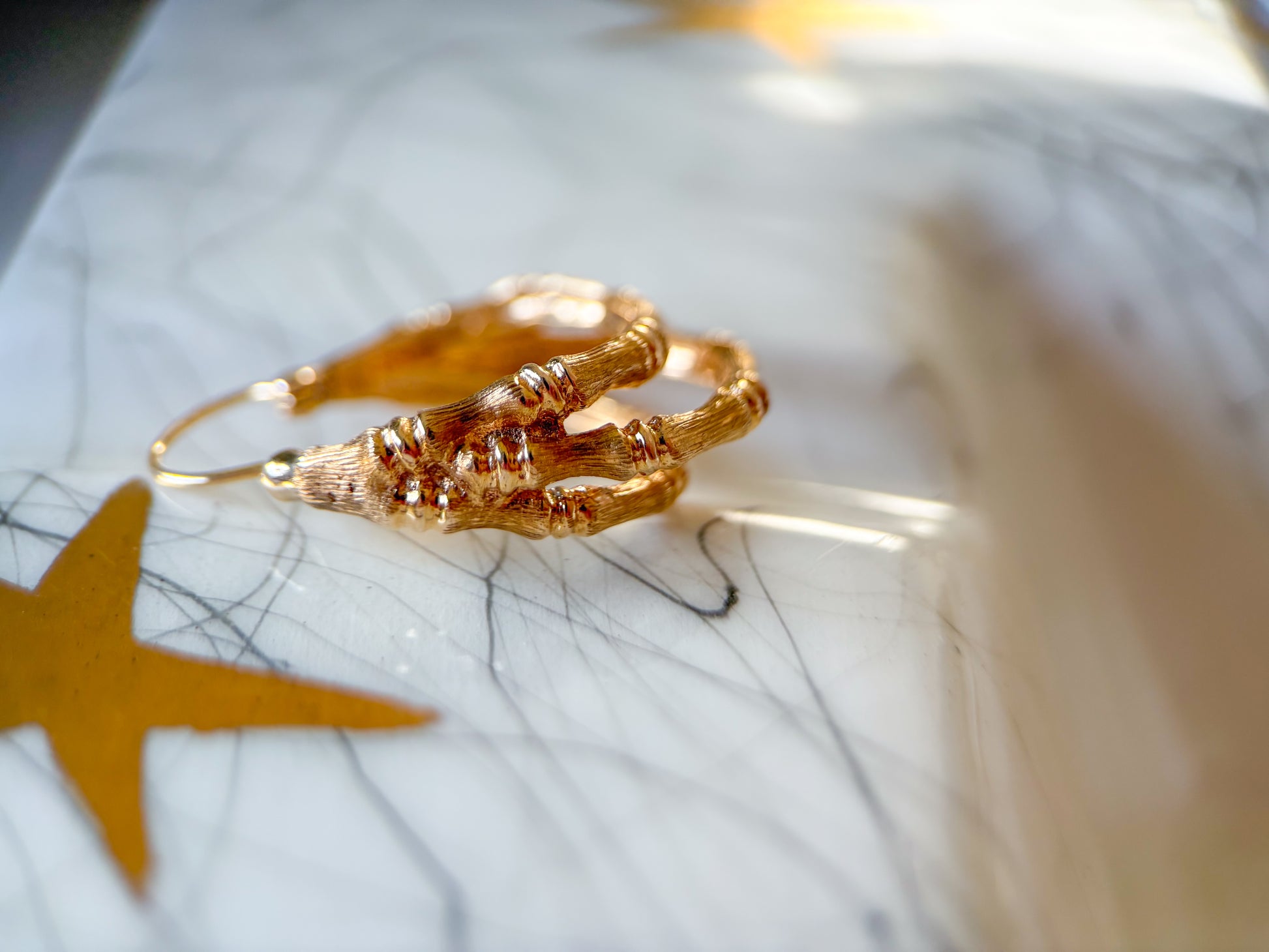 14k, 7.76 g, 30 x 20 x 10, each bamboo hoop: 3 mm wide