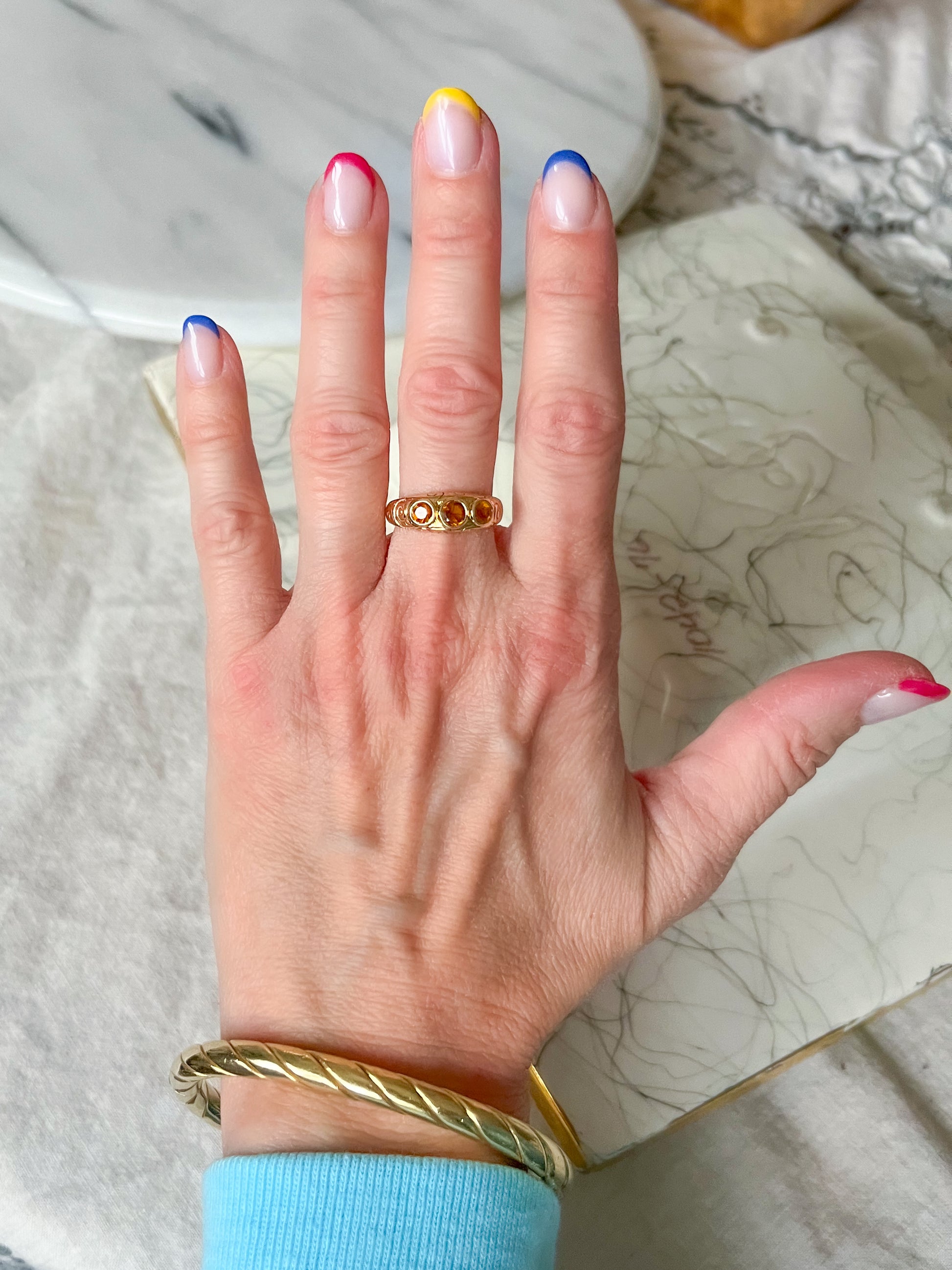 Vintage Three Stone Natural Citrine 10k Yellow Gold Ring