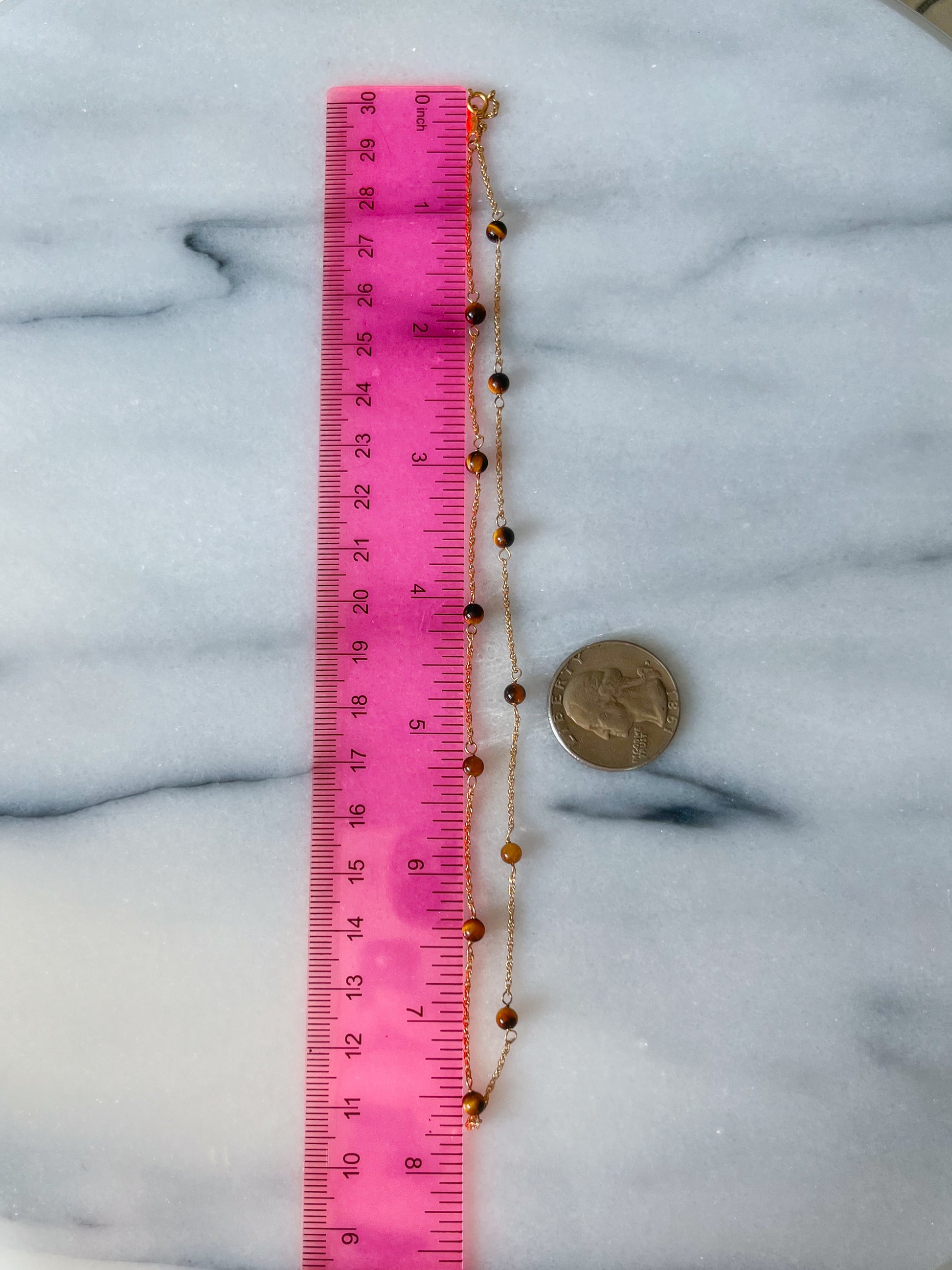 A simple, beautiful and vintage chain. This tigers eye beaded chain weighs over 2.36g and is 16 inches long.