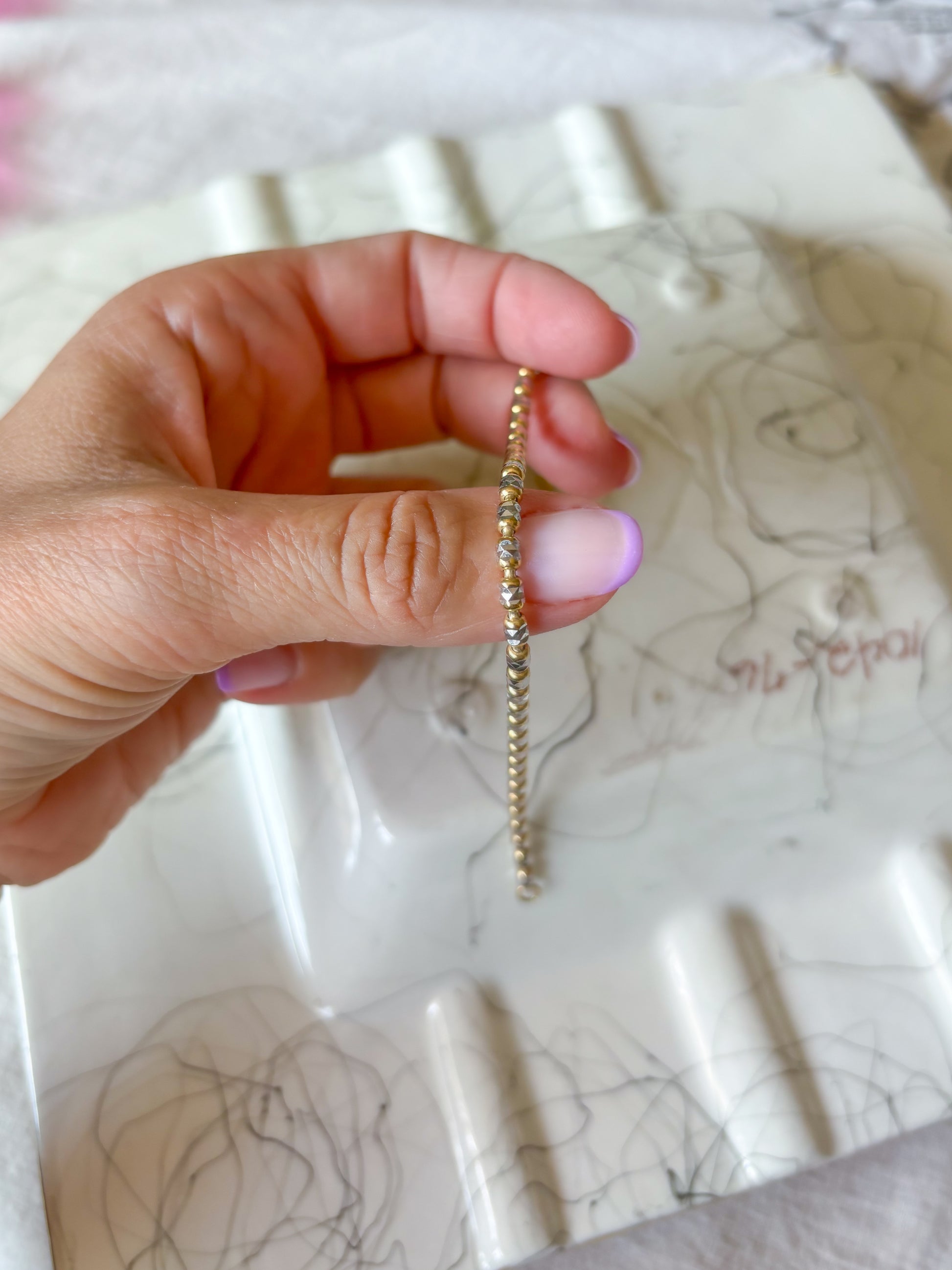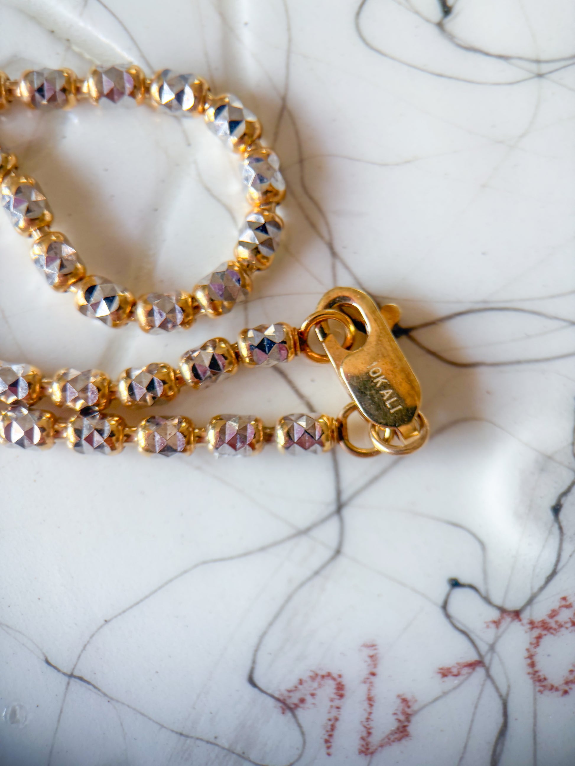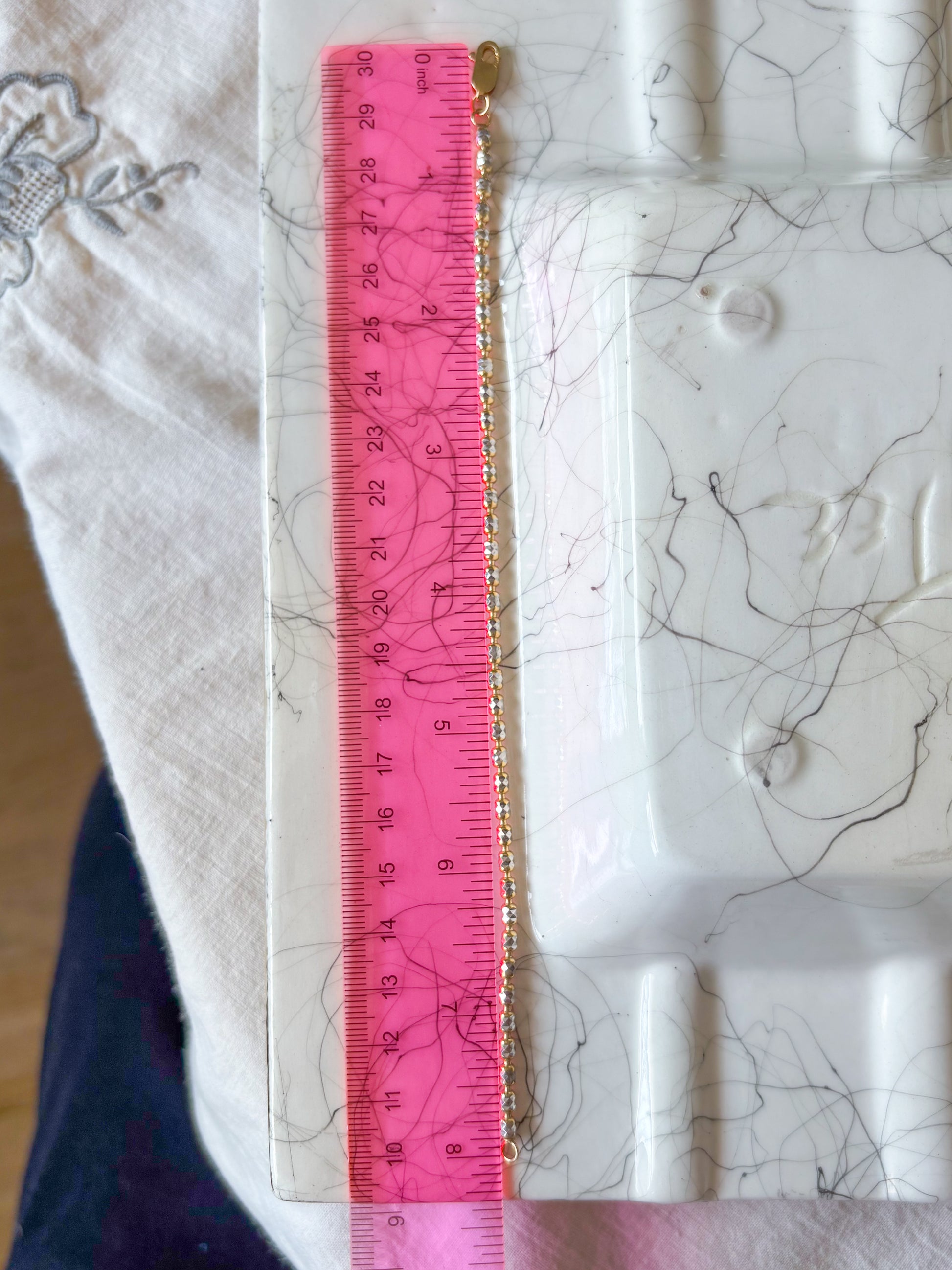 I love this 10k two toned, white and yellow gold bracelet. It is 8 inches long and over 5 grams.